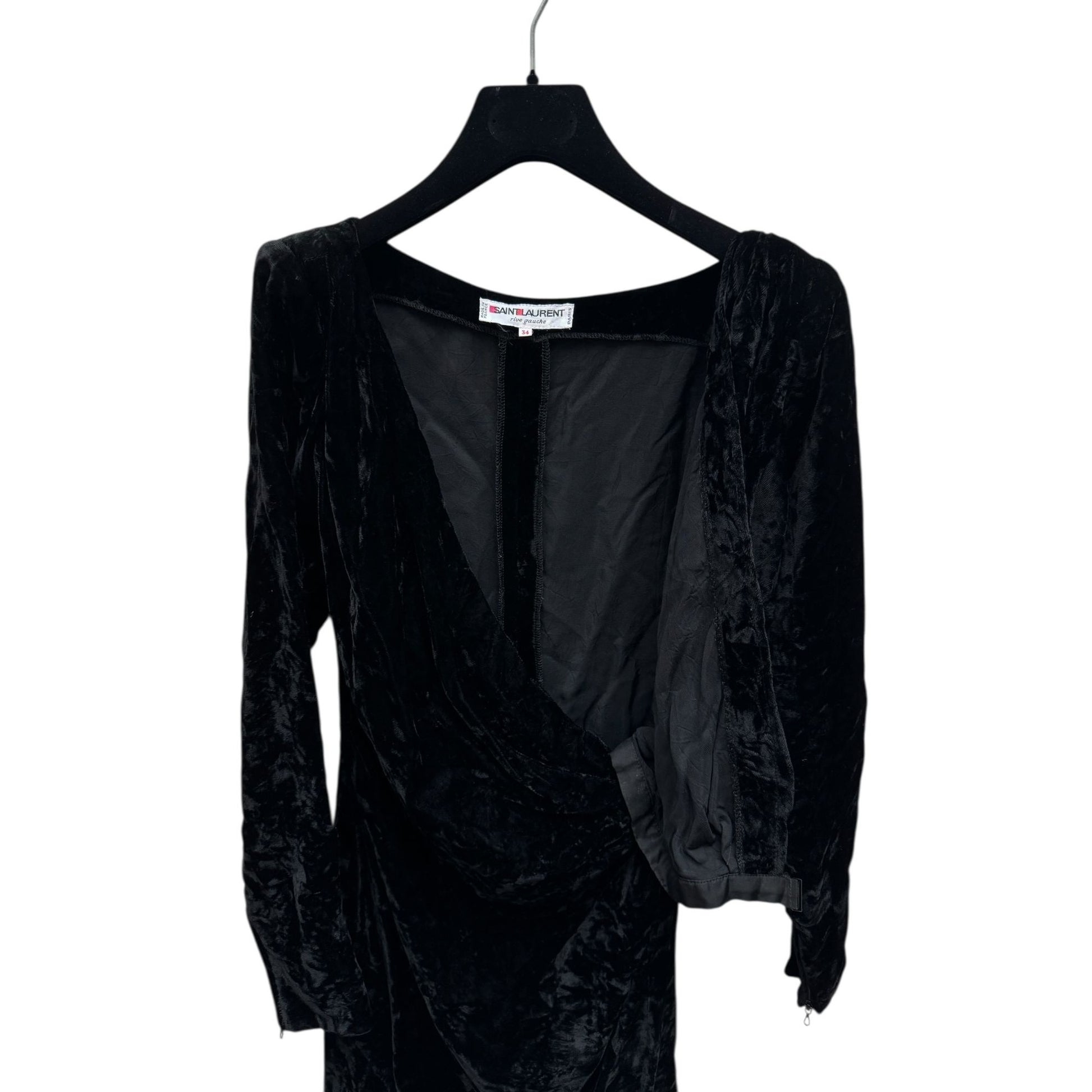 Elegant and timeless Yves Saint Laurent dress from the 1970s, crafted in rich black velvet with a beautifully structured silhouette. This piece embodies the refined glamour of YSL’s iconic 1970s era, combining understated luxury with sharp tailoring.