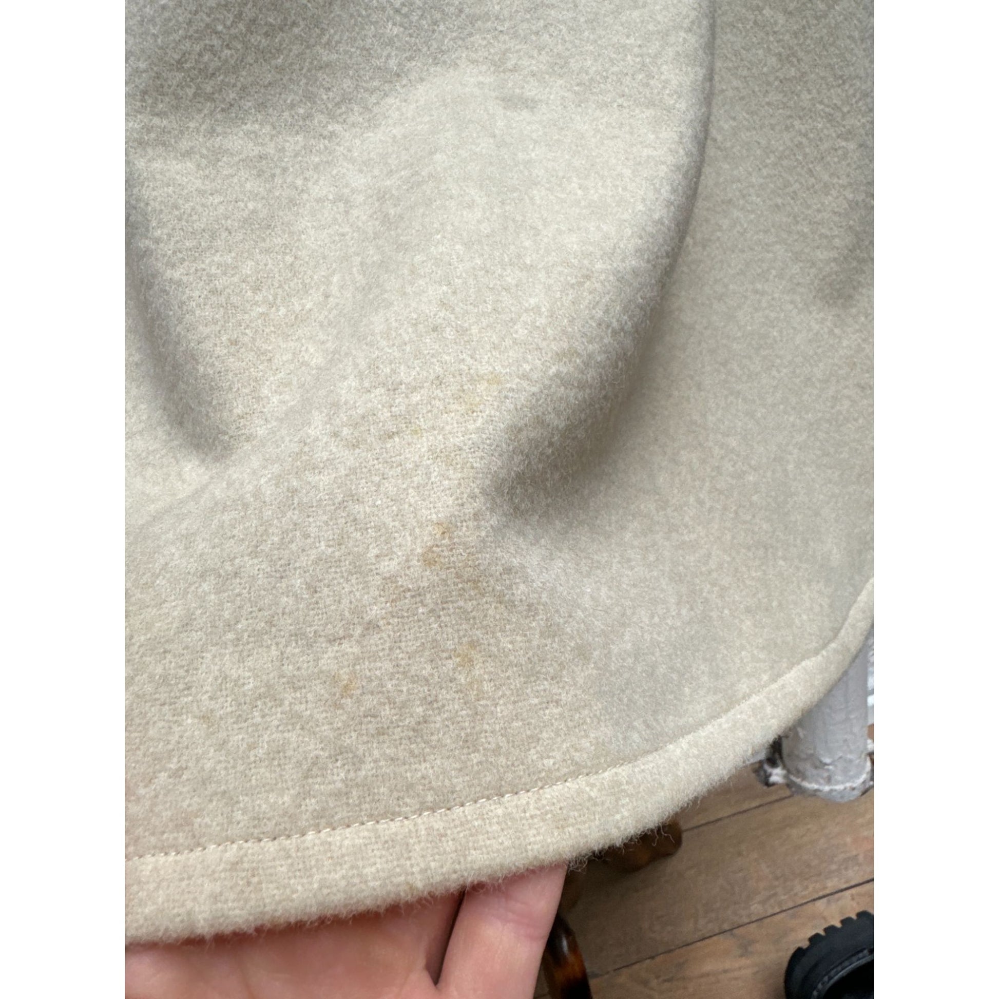 The wool has a cozy, slightly textured finish, making it both warm and lightweight — perfect layered over knitwear or tailoring. A true vintage statement piece that balances drama and simplicity.