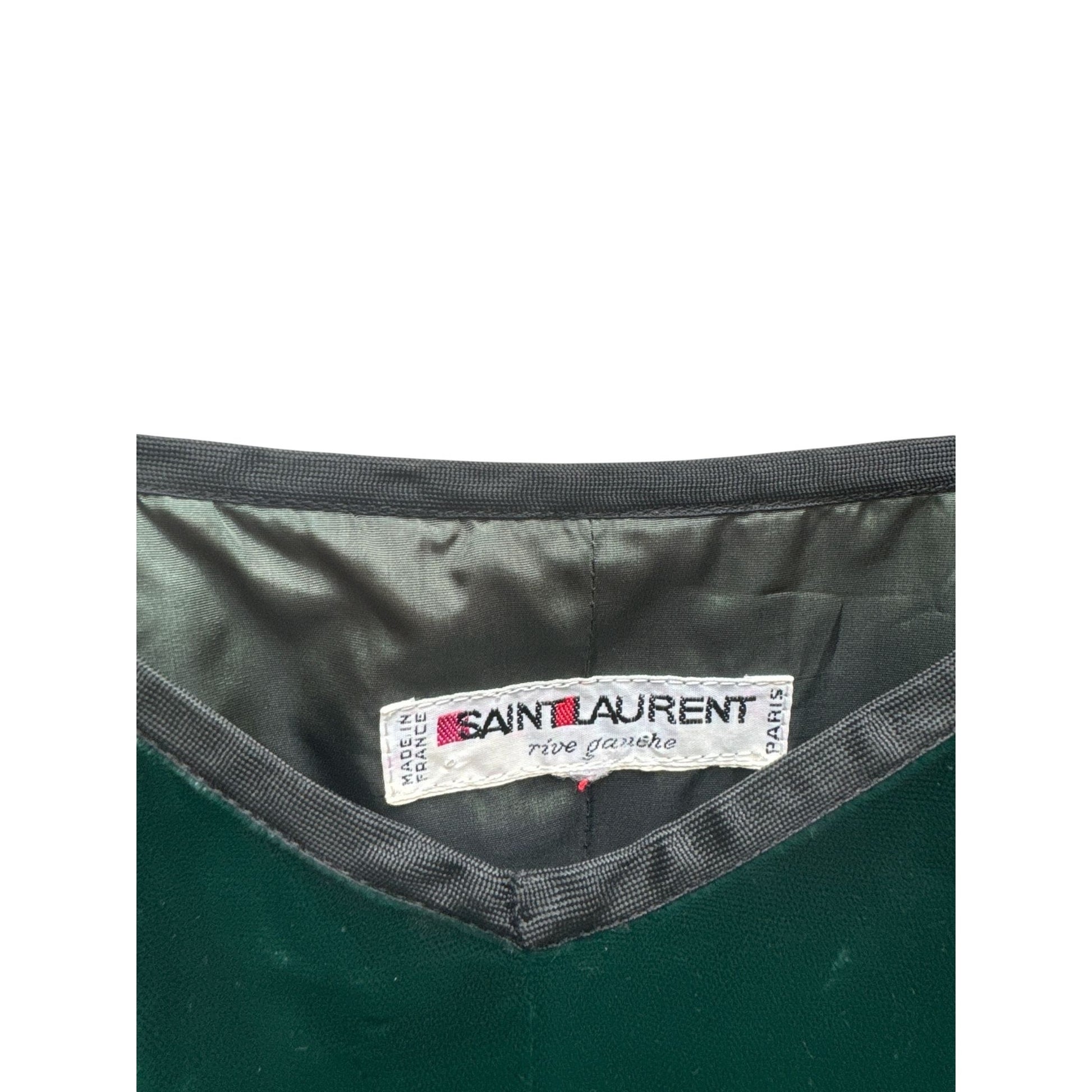 This rare vintage Yves Saint Laurent Rive Gauche dress from the 1970s is a stunning archival piece, crafted in deep emerald green velvet that captures the light beautifully.