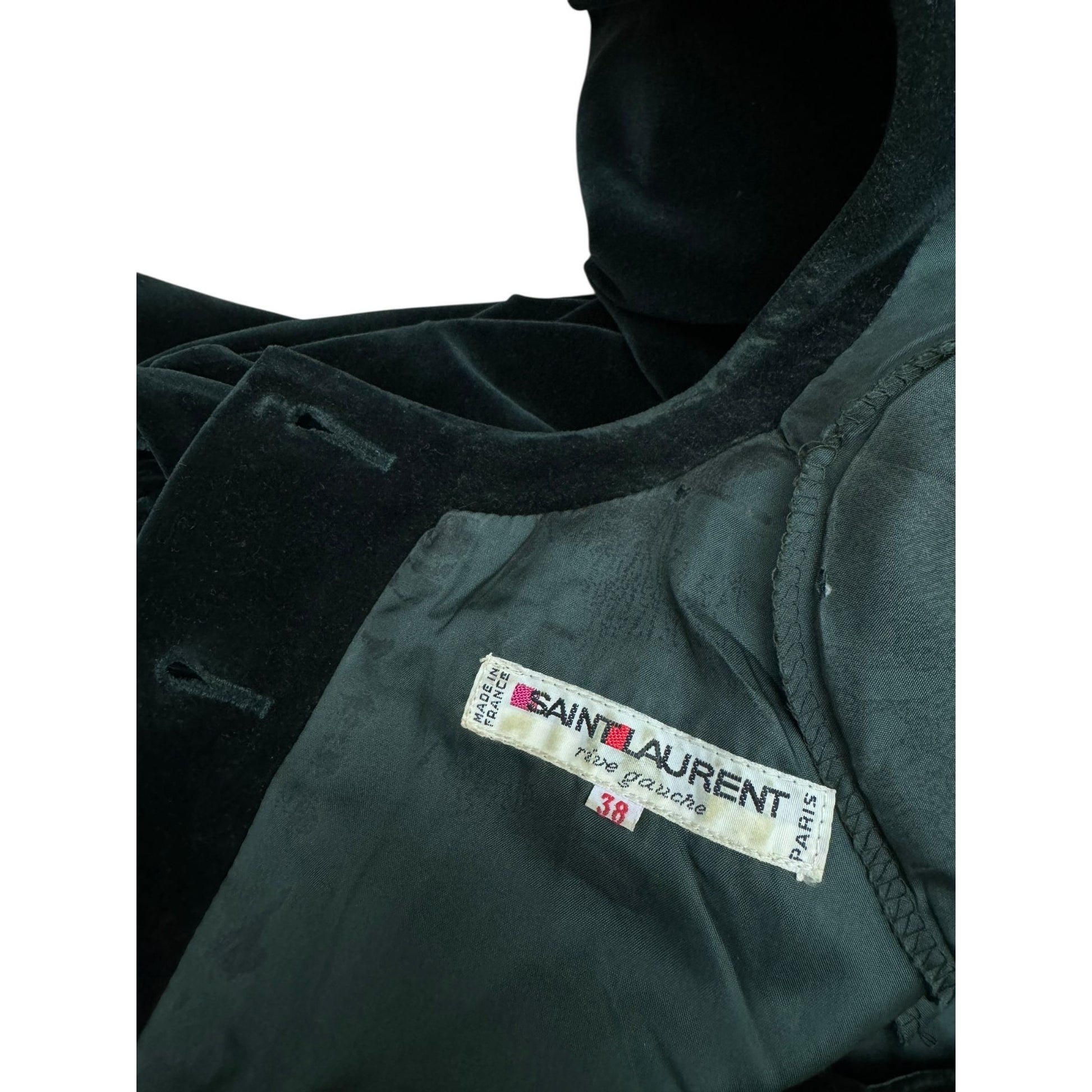 Good overall condition. Please note slight signs of wear behind the back button closure, as well as minor signs of use on the interior lining, consistent with gentle wear and age. These details do not affect the overall look when worn.