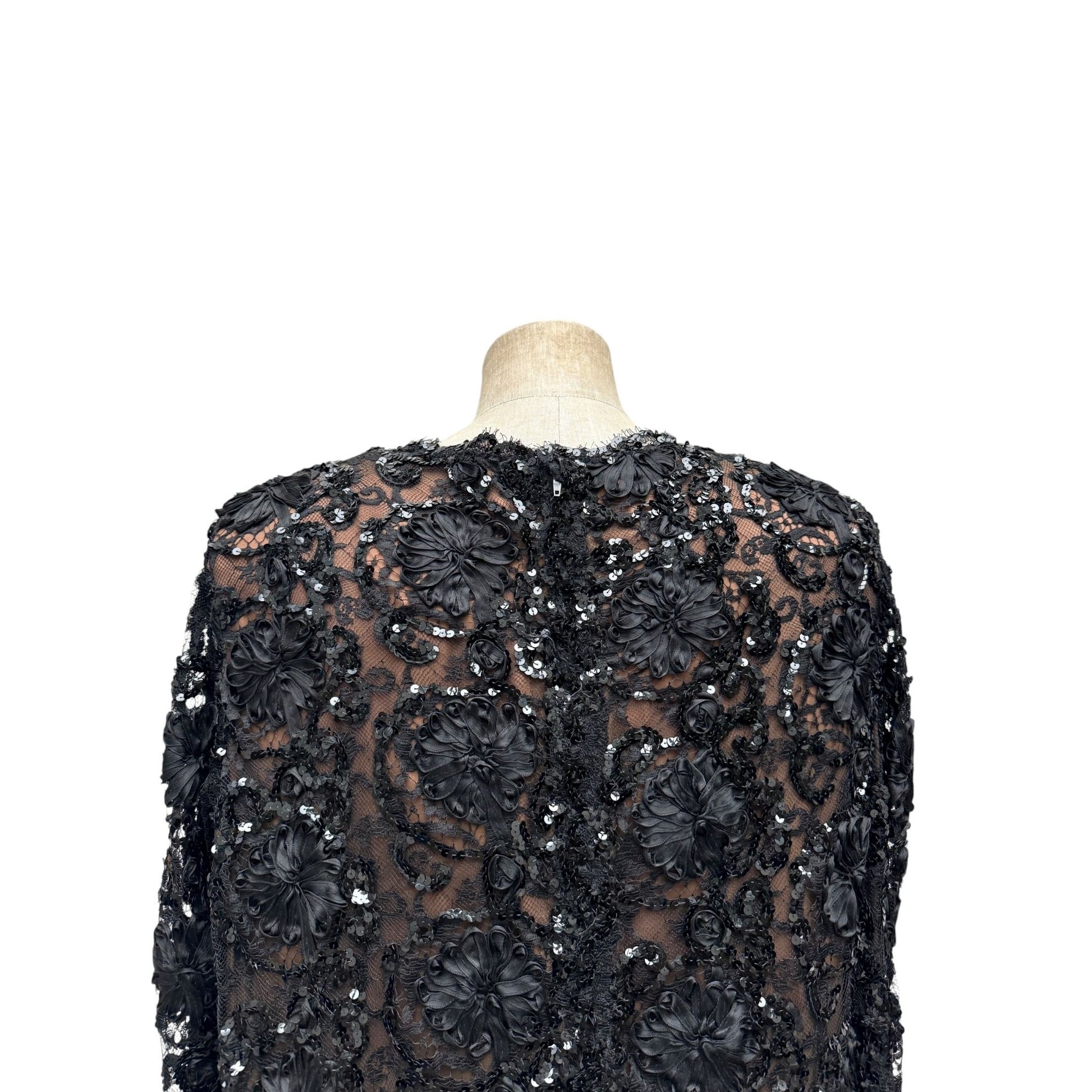 1980s Haute Couture Black Sequined Dress
