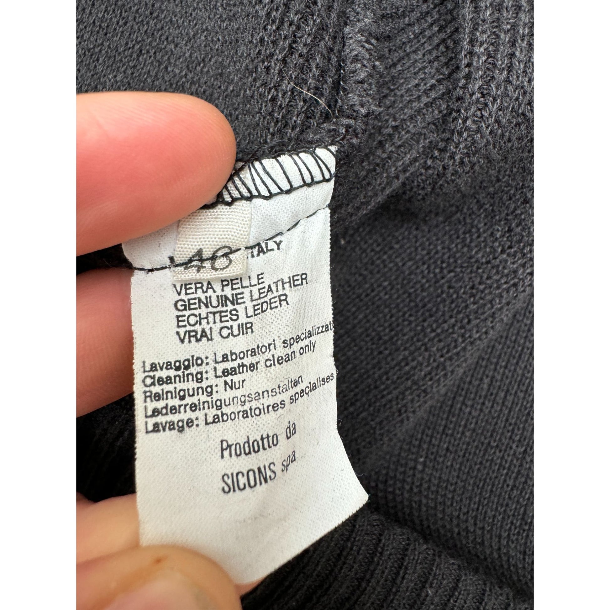A striking vintage piece from Jean Paul Gaultier’s 1990s collections, this cropped jacket perfectly balances structure and texture. Crafted in Italy, it features a unique combination of supple black suede with contrasting navy knitted cotton panels. The zip-front closure and ribbed hem add a contemporary edge, while the cropped silhouette enhances its bold, fashion-forward cut.