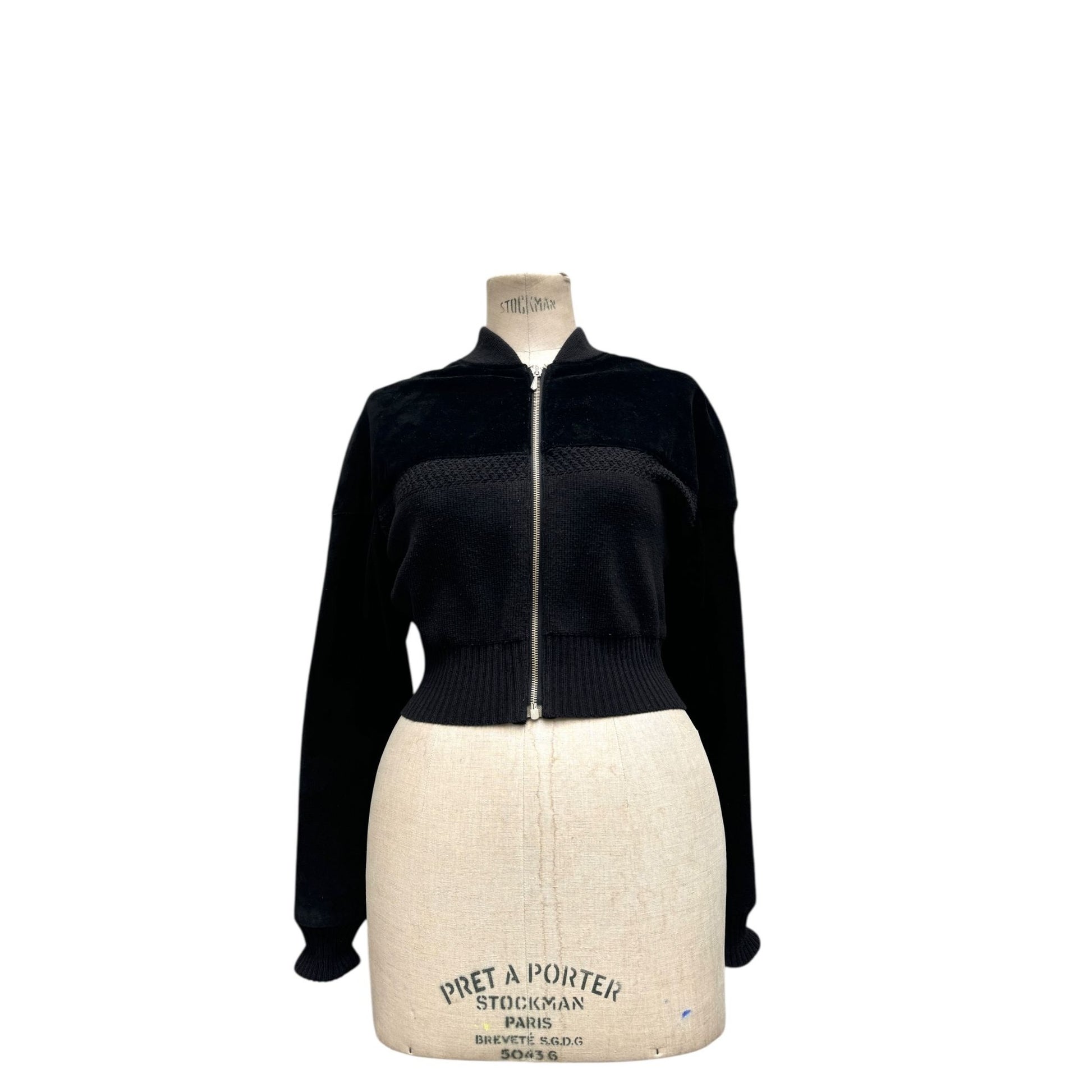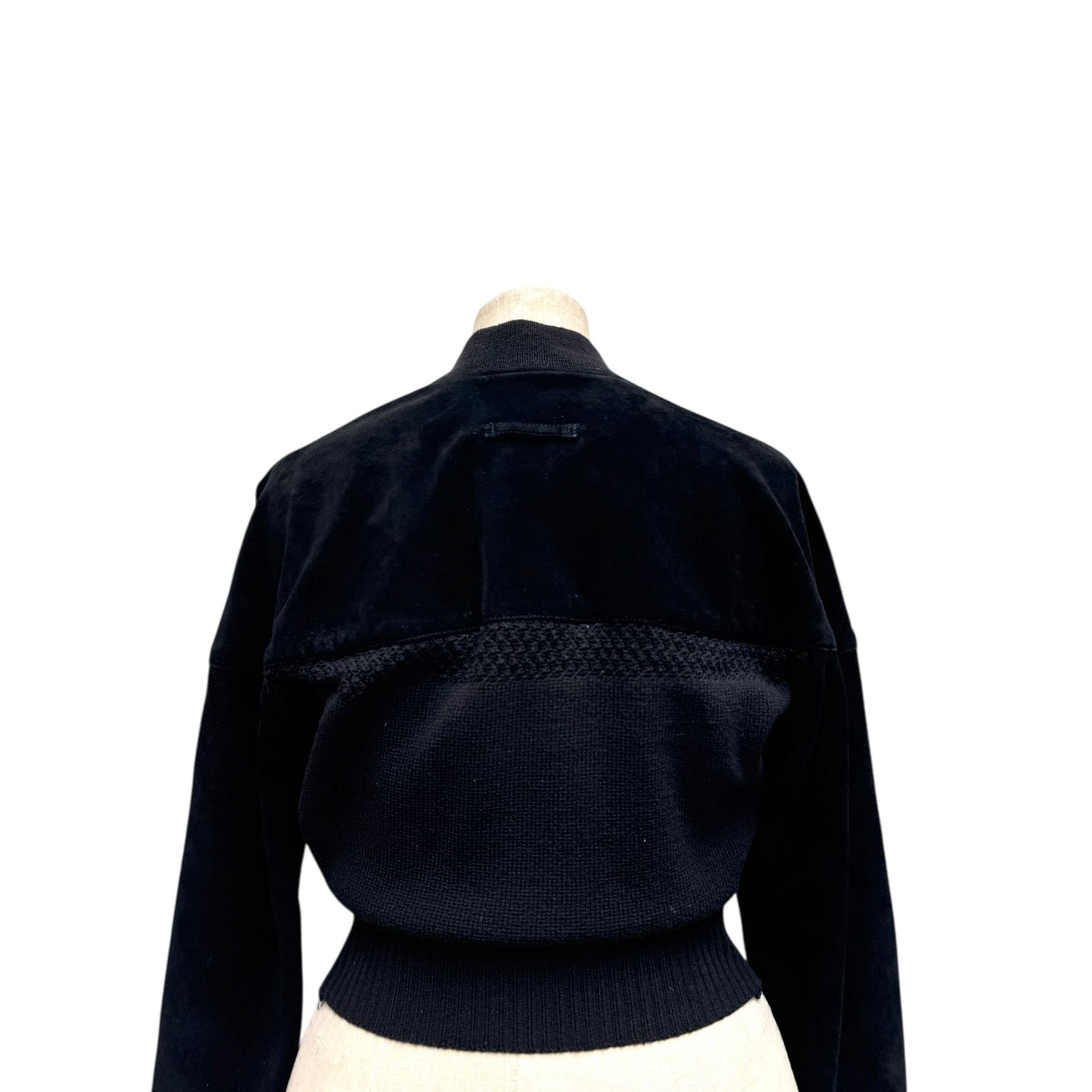 1990s Black Suede & Navy Knitted Cropped Jacket