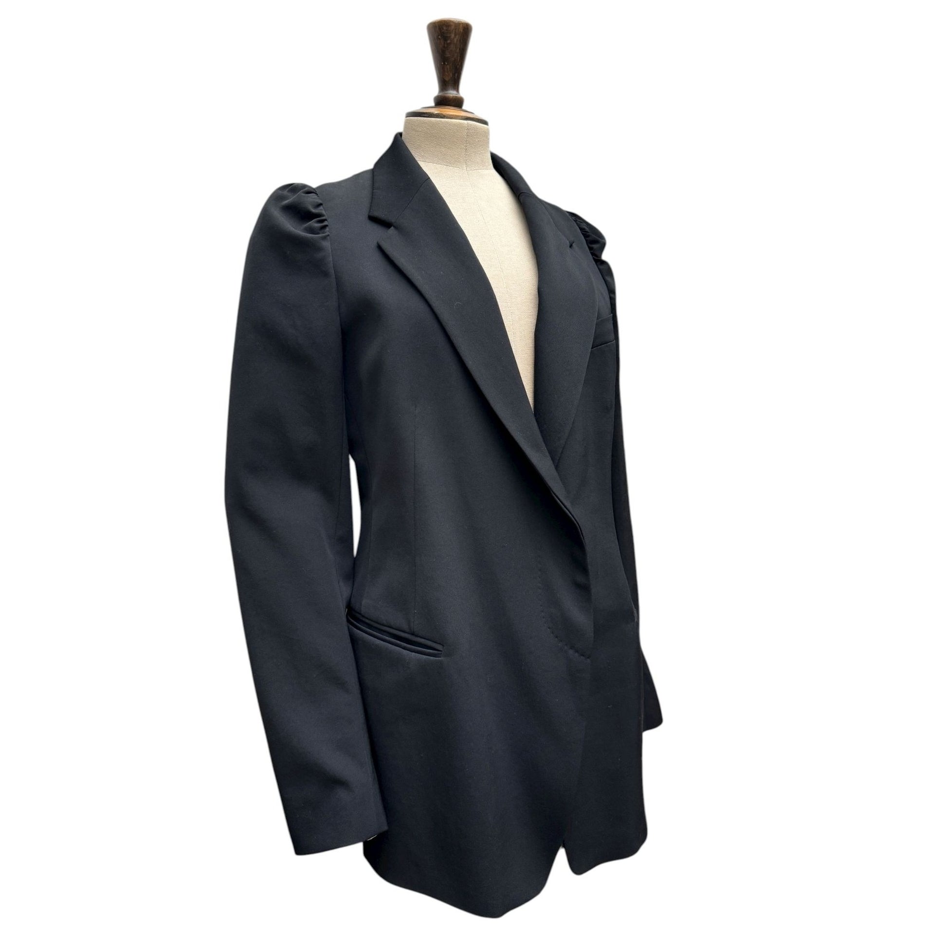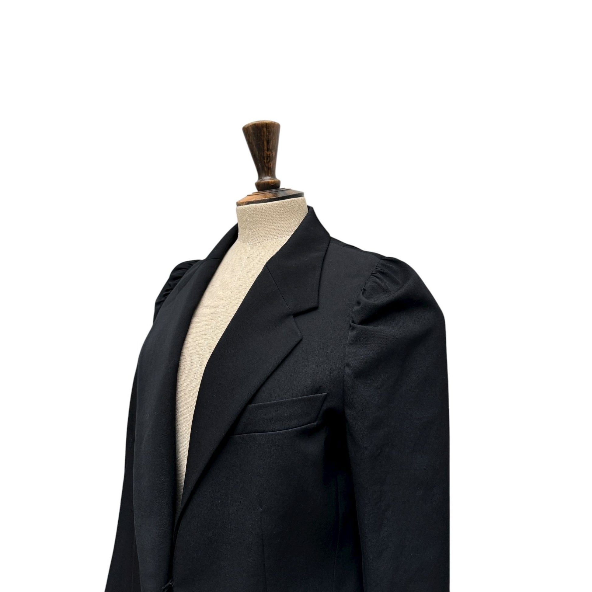 Iconic Dries Van Noten black wool blazer from the 1990s, crafted in Belgium. This piece showcases “cigarette” shoulder — a sharp, architectural silhouette that was largely inspired by Martin Margiela’s first collections.