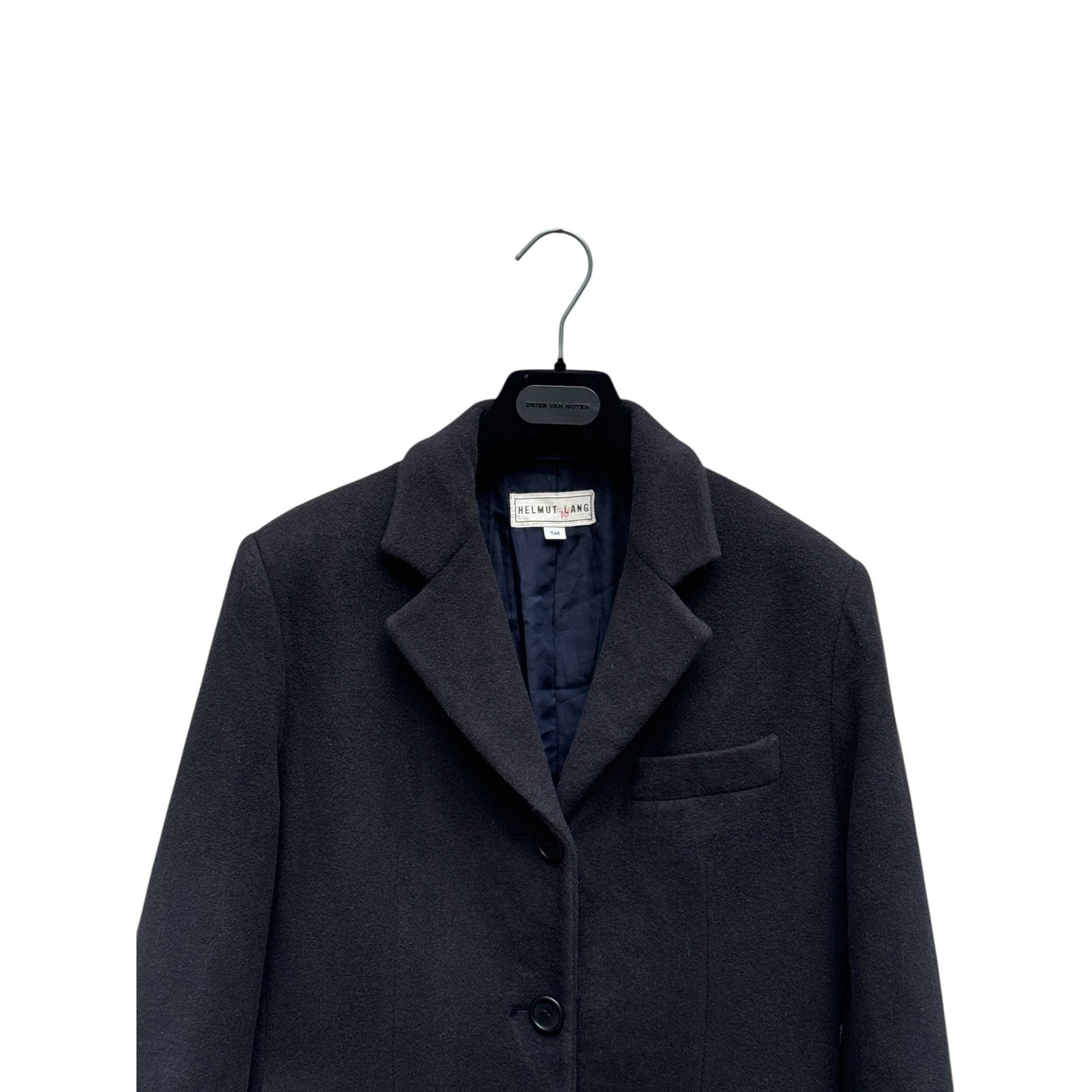 • Minimalist Helmut Lang tailoring with a structured silhouette