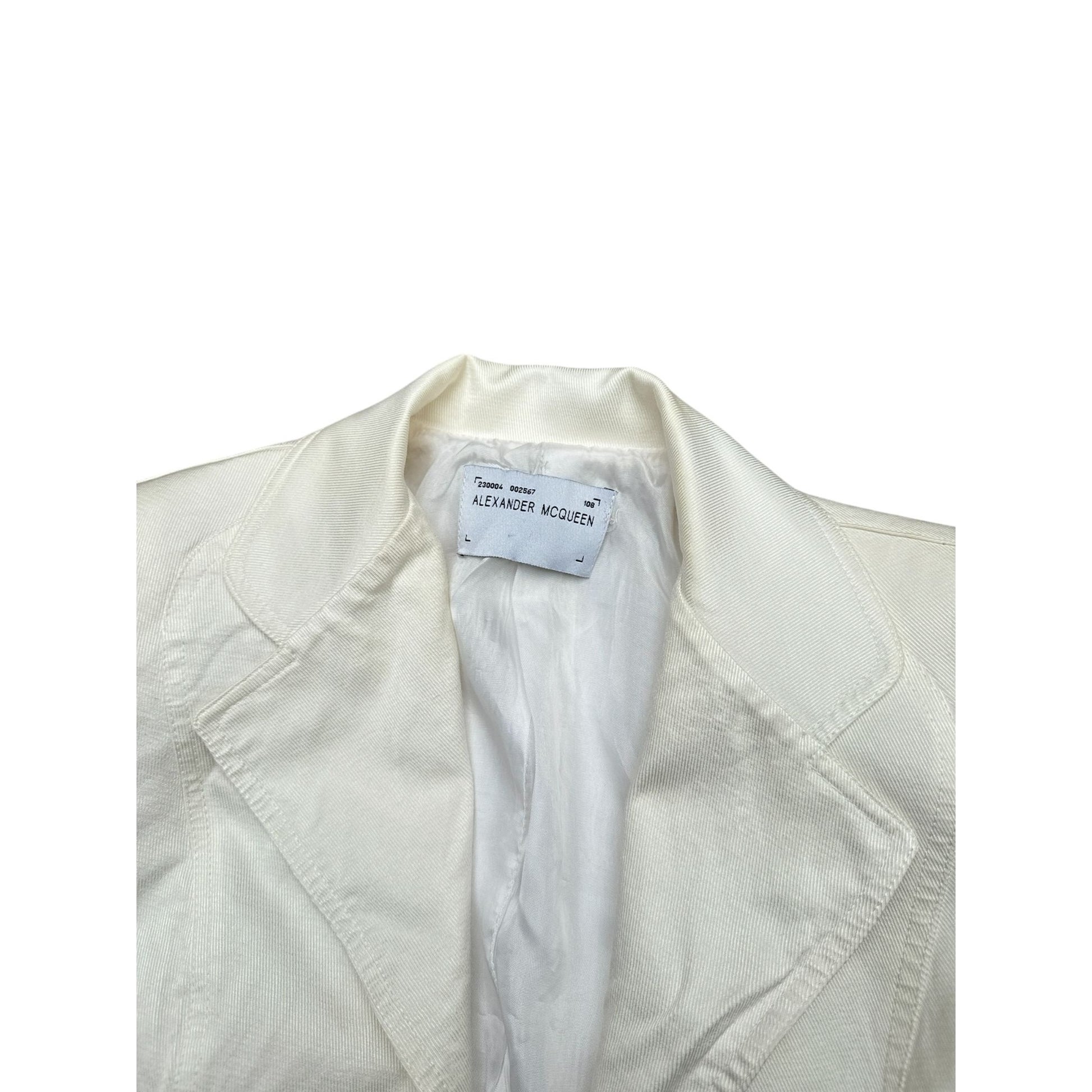 A refined piece from the 1990s Alexander McQueen archives, this white blazer showcases the brand’s mastery of tailored silhouettes with a feminine edge.
