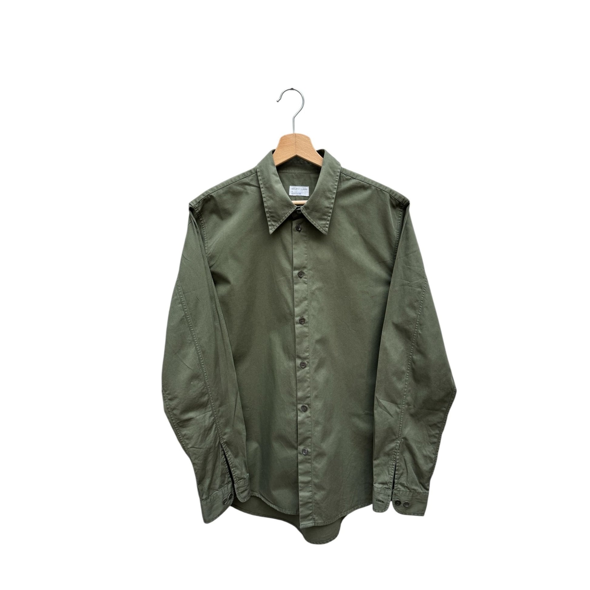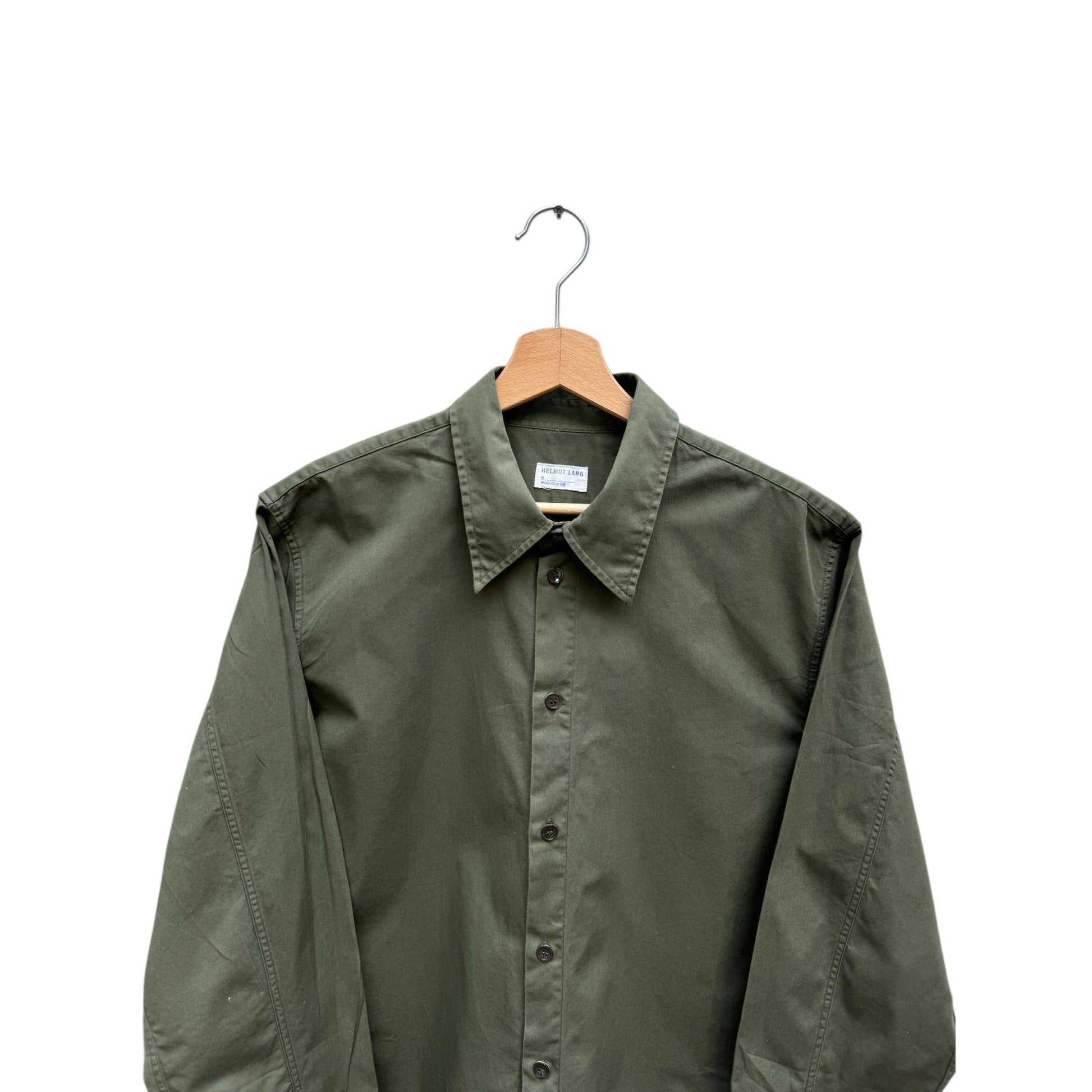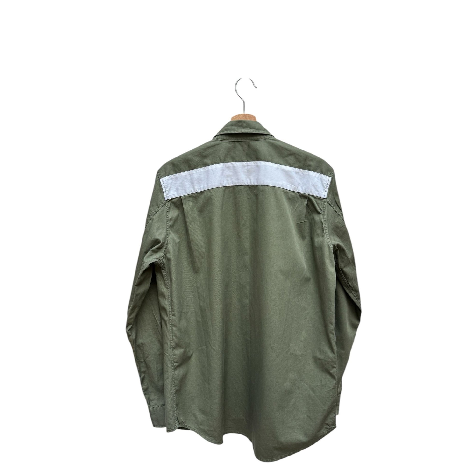 From Helmut Lang’s influential 1998 collection, this khaki military shirt reflects the designer’s signature utilitarian minimalism. Crafted from 100% cotton with a structured, clean silhouette, it features a distinctive white reflective back band, nodding to Lang’s frequent use of high-visibility and industrial elements in his late '90s designs.