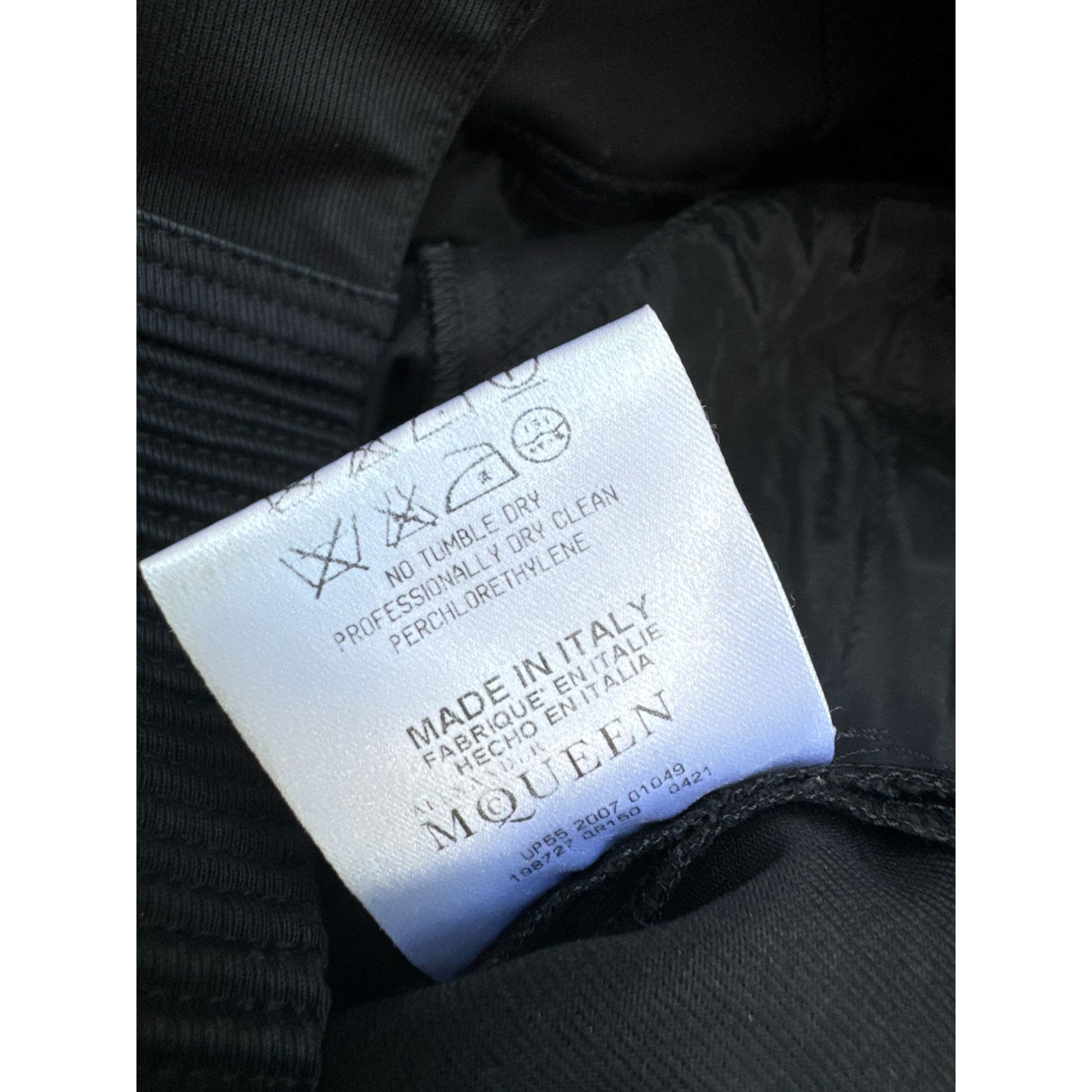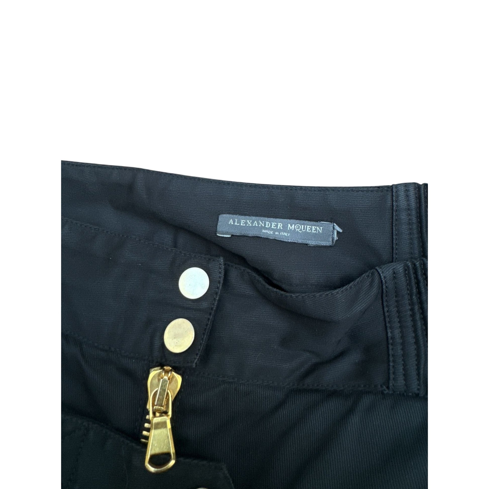 Elevate your wardrobe with these 2007 Alexander McQueen black trousers, a striking combination of sleek tailoring and edgy detailing.