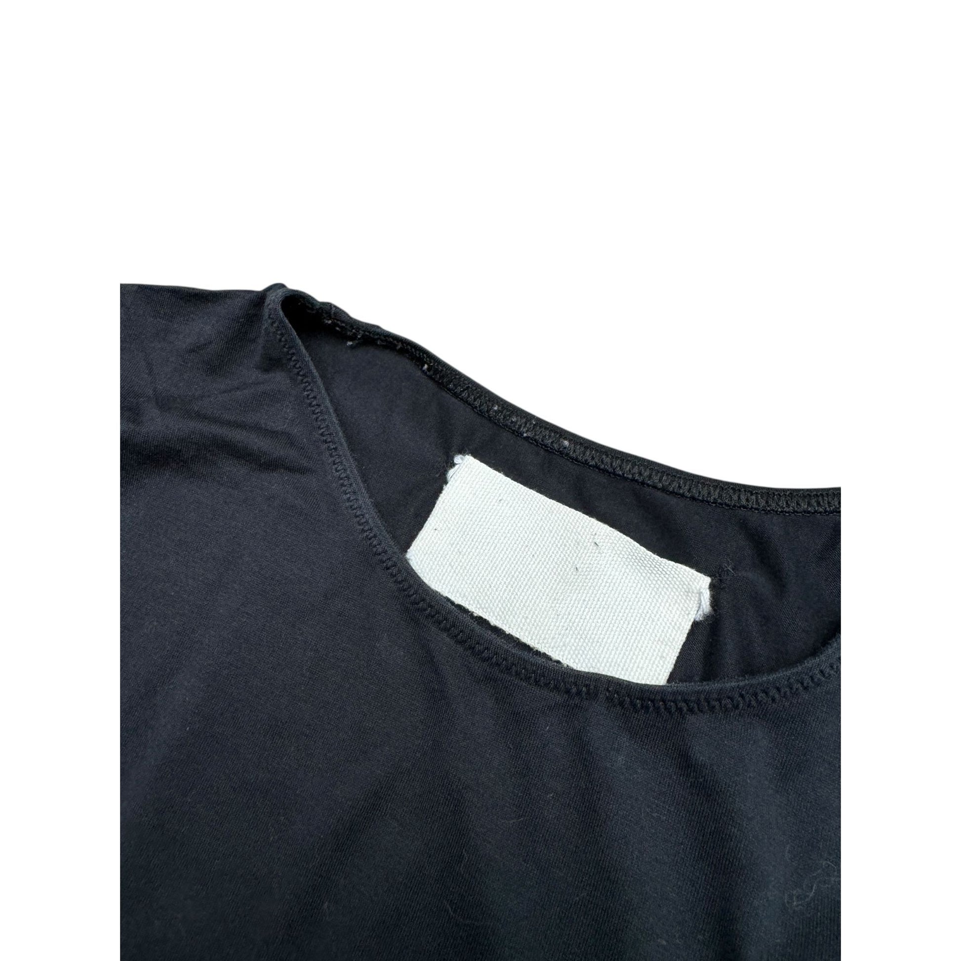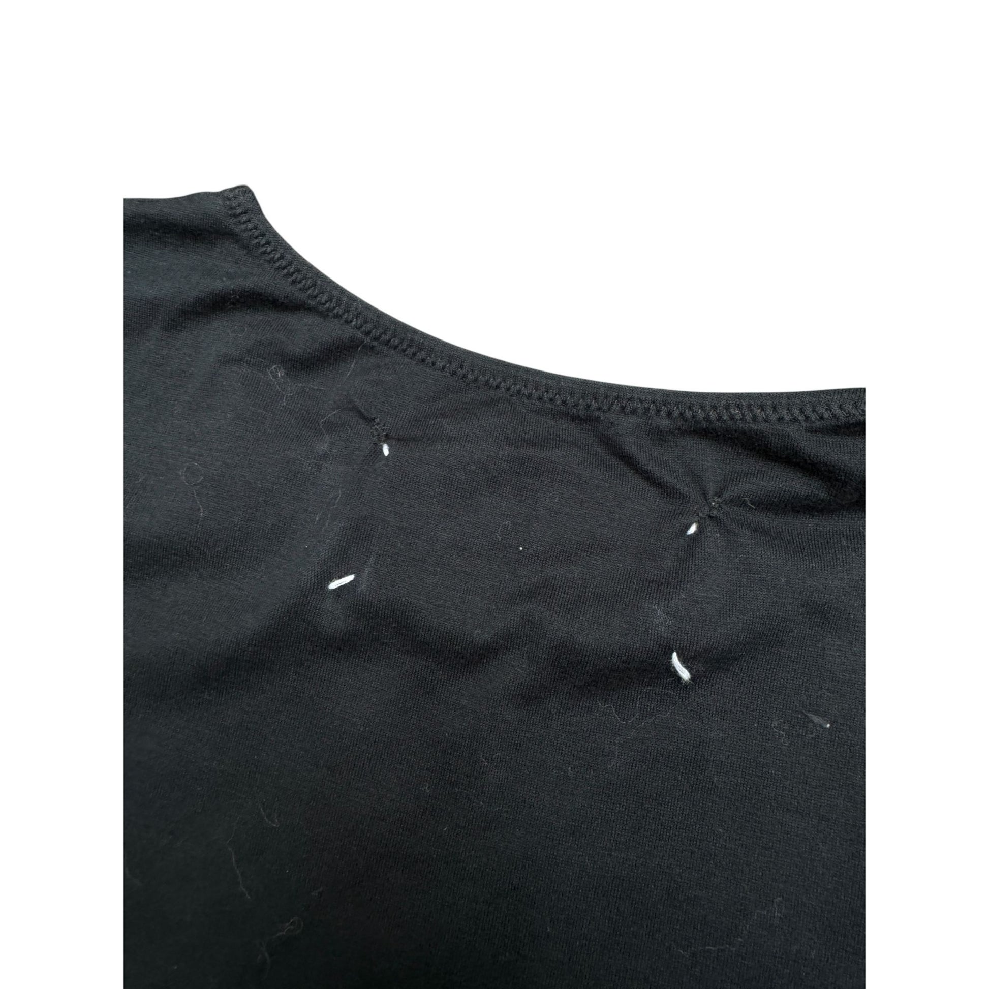 Iconic early-2000s Martin Margiela bodysuit in classic black, showcasing the house’s minimalist and deconstructed aesthetic. Crafted from a soft cotton-elastane blend, this piece offers a smooth, lightweight feel with comfortable stretch, allowing it to contour naturally to the body.