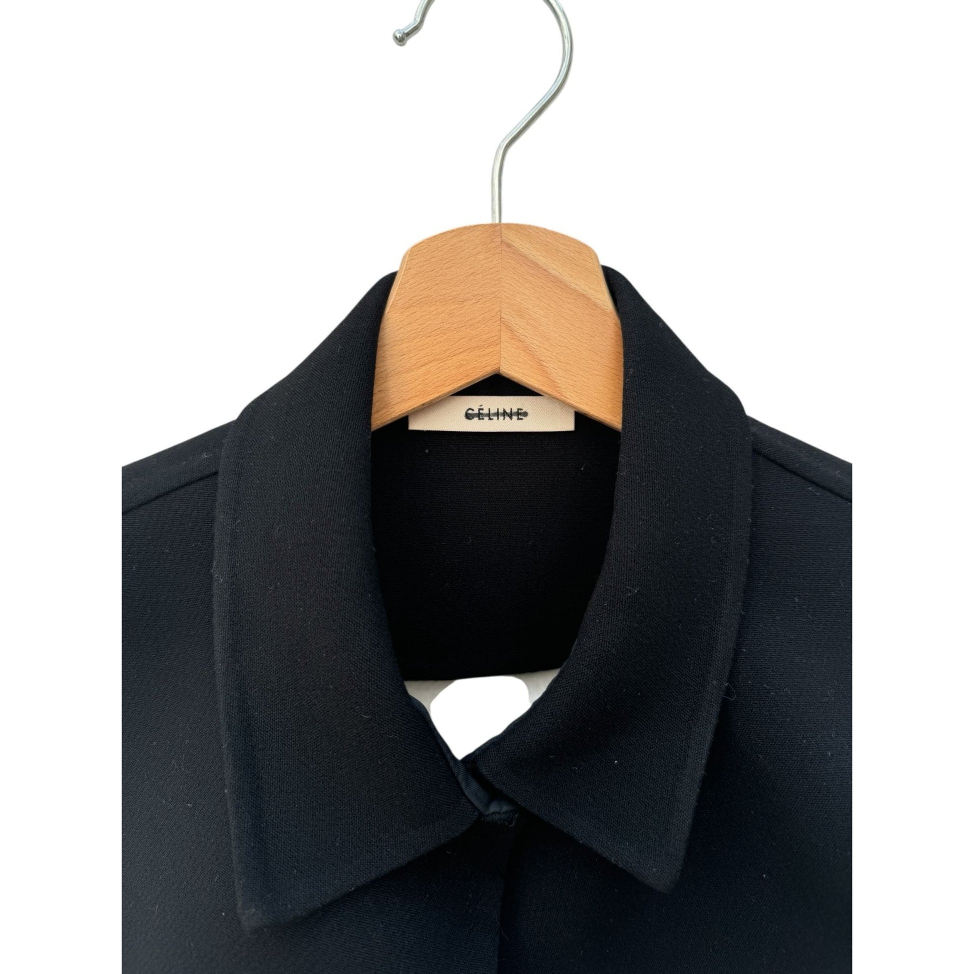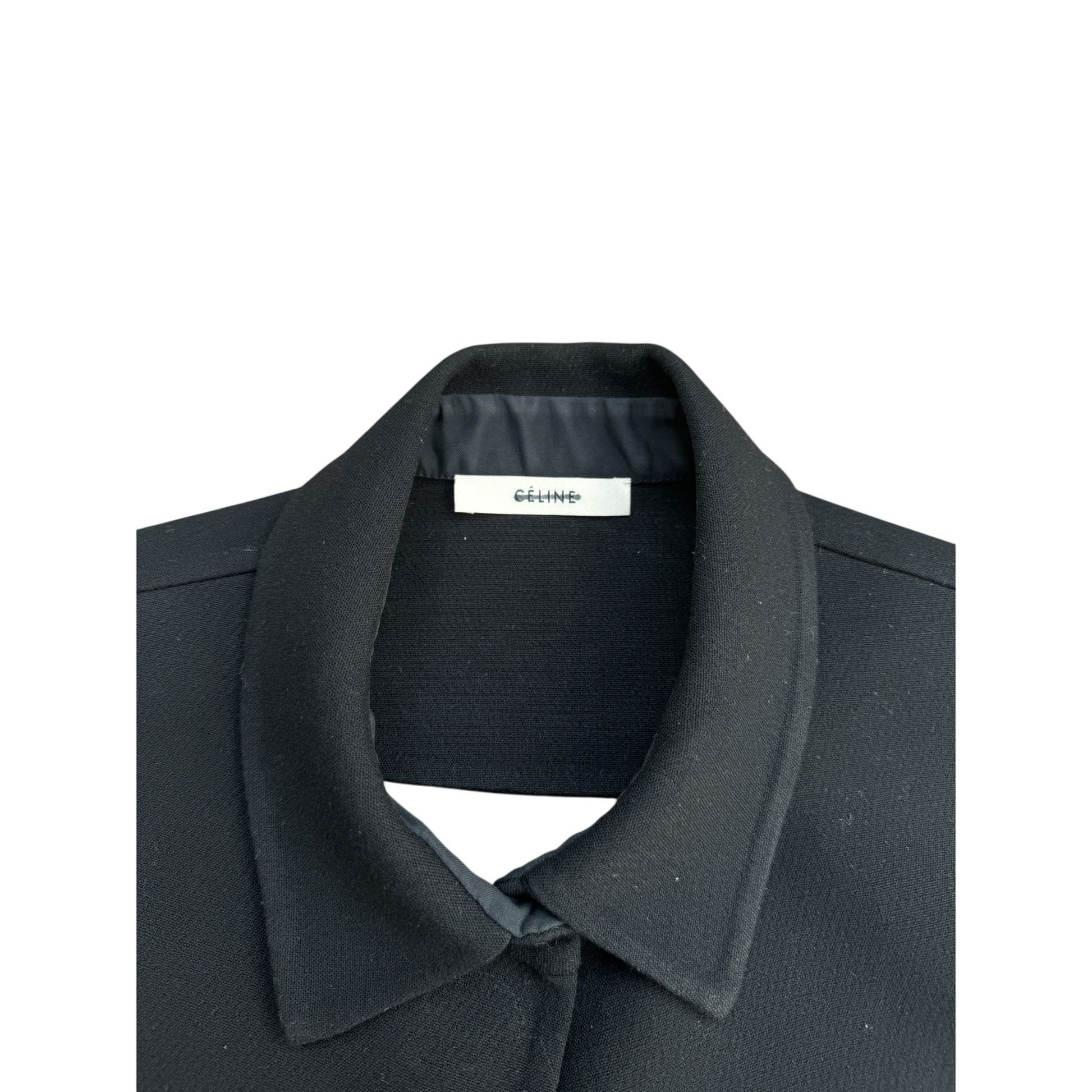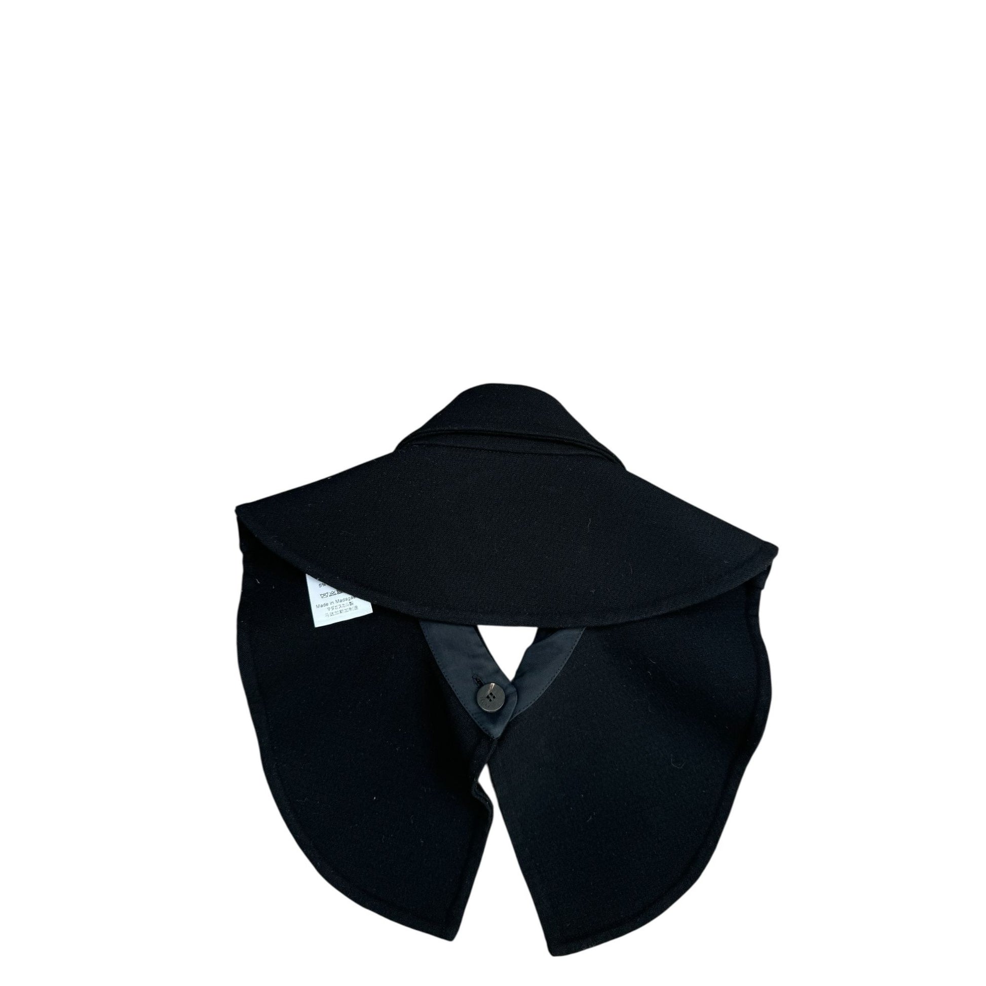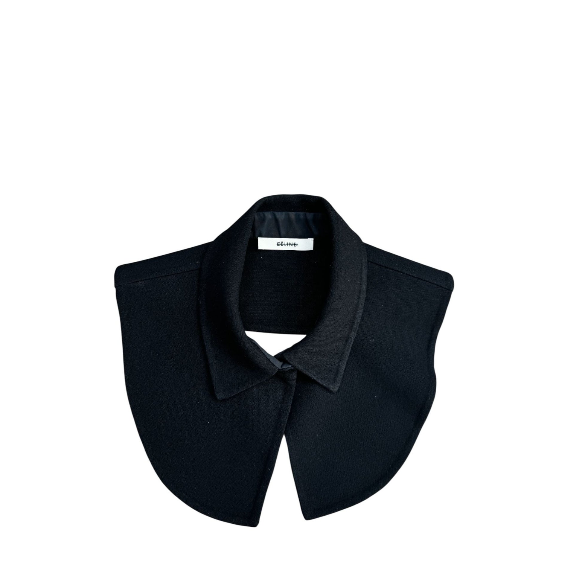 Minimalist yet bold, this Celine detachable collar from the Phoebe Philo era embodies the brand’s signature balance of sharp tailoring and understated elegance. Designed to elevate any look, it features a clean black structured cut with a pointed collar shape, fastening seamlessly at the front.