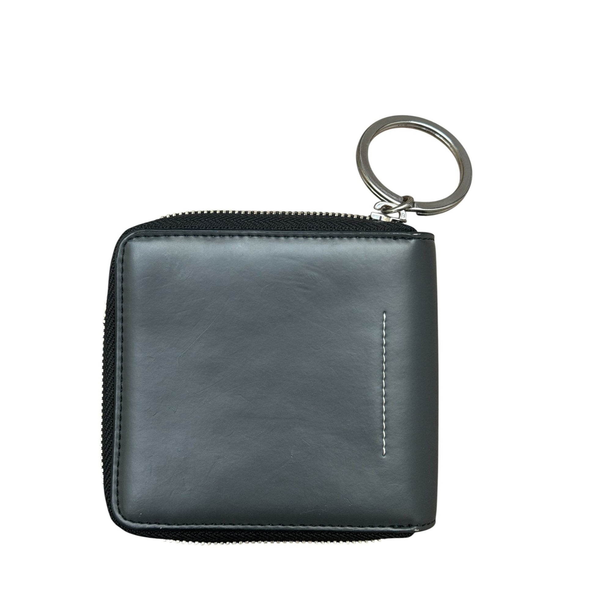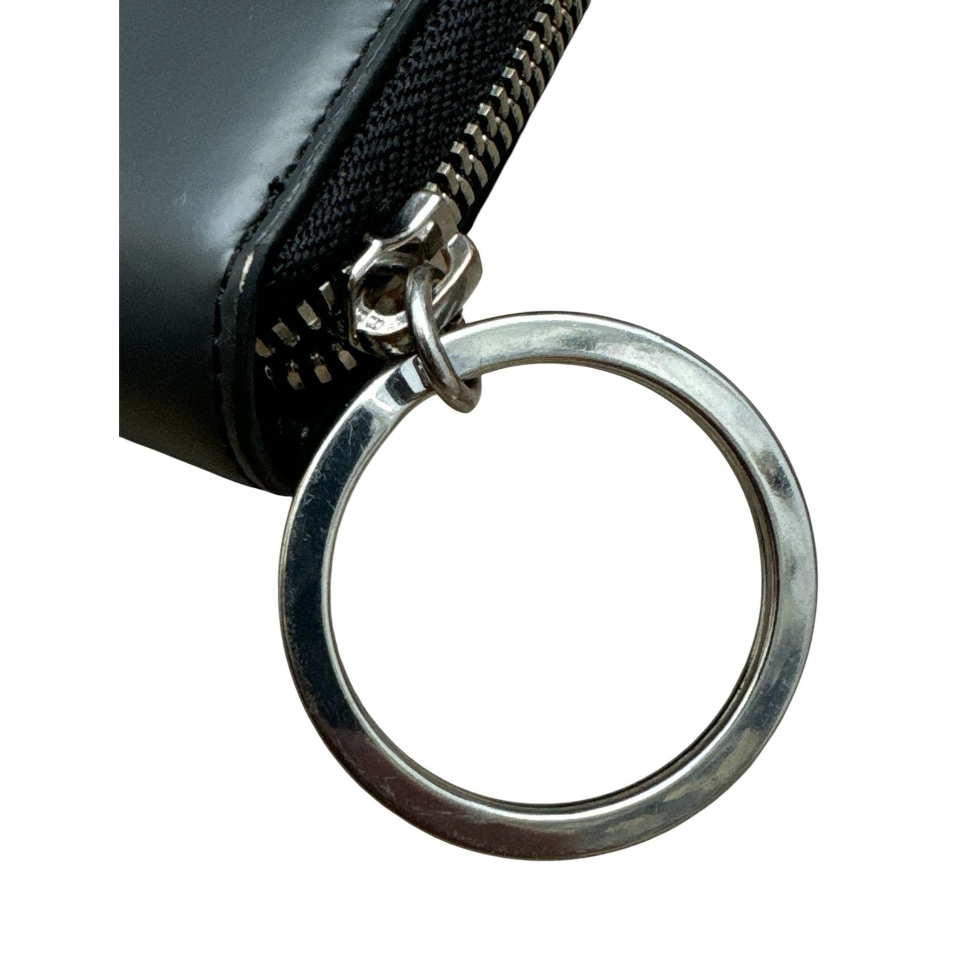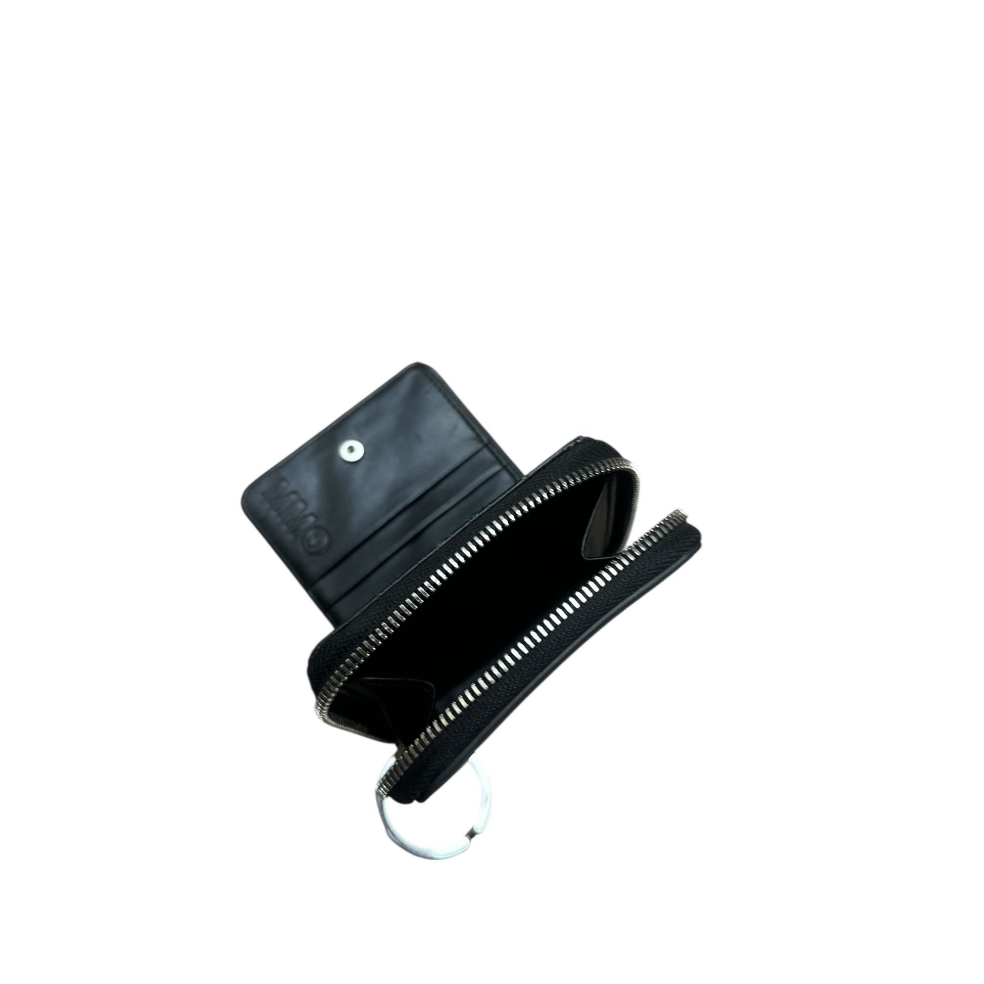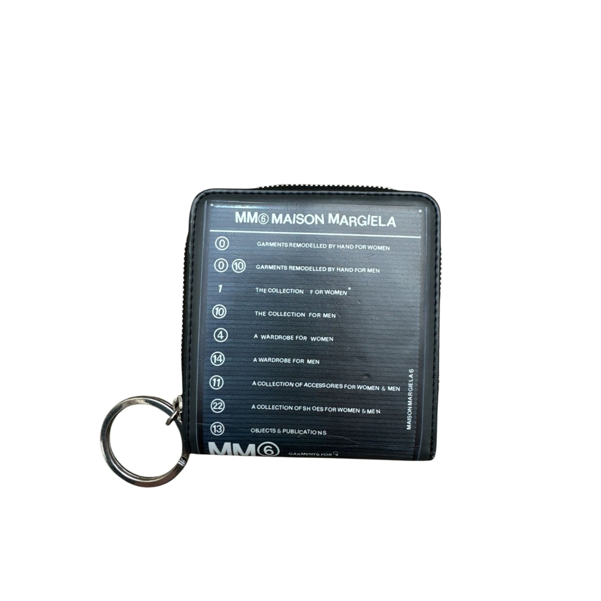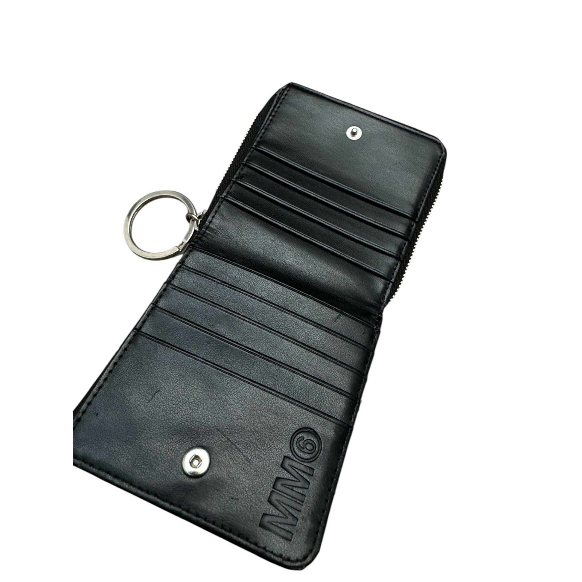 The exterior showcases the iconic Margiela numerical code graphic printed in white, a nod to the house’s conceptual branding approach. The design is completed with a sturdy silver-tone key ring, allowing you to attach keys or secure the wallet to your bag for easy access.