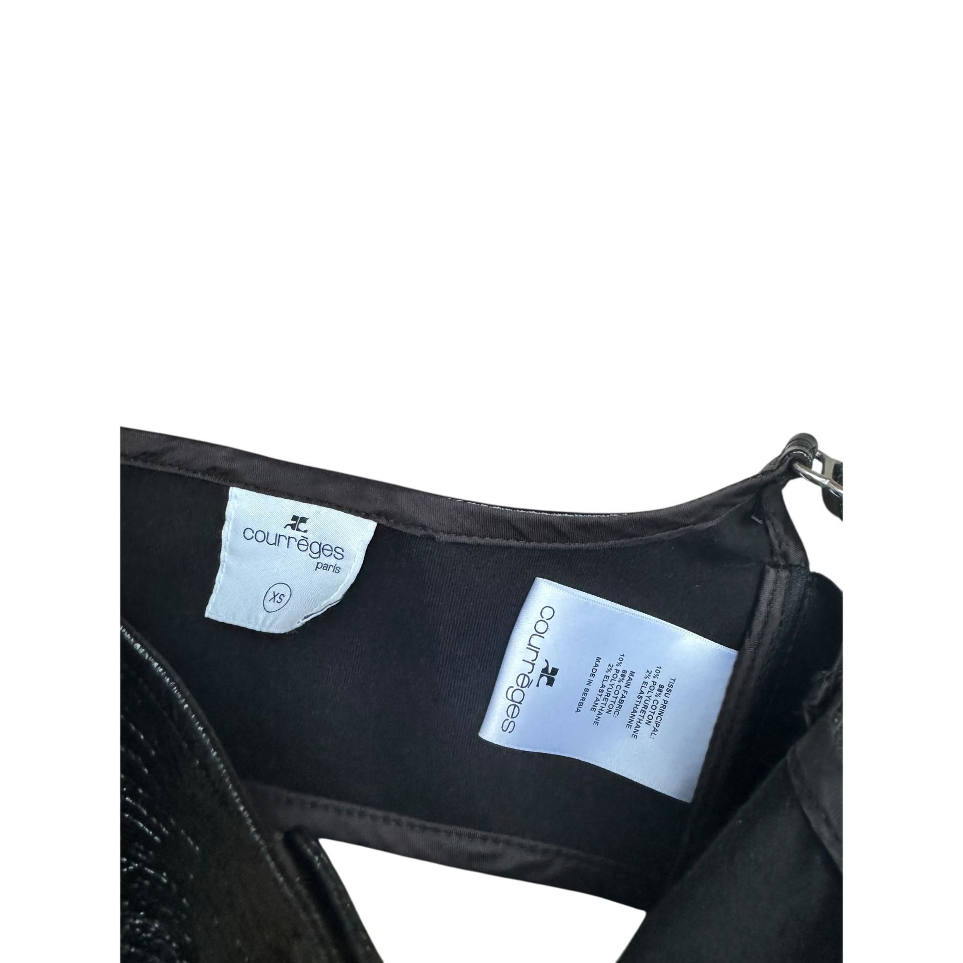 Striking and unmistakably Courrèges, this futuristic black vinyl bra top perfectly captures the brand’s iconic space-age aesthetic. Crafted in a high-shine coated finish, it features a clean, sculptural silhouette and a minimalist front panel adorned with the tonal Courrèges logo.