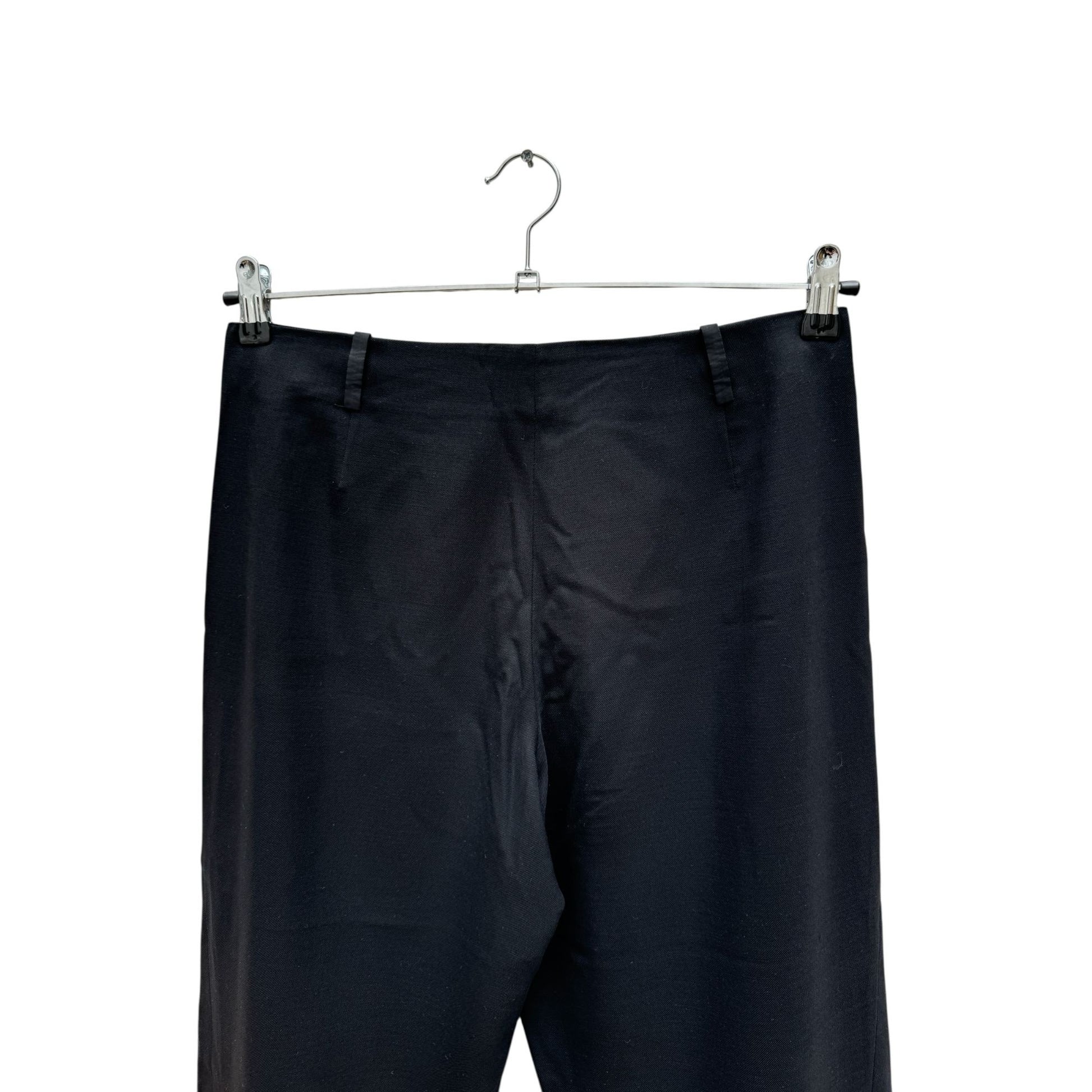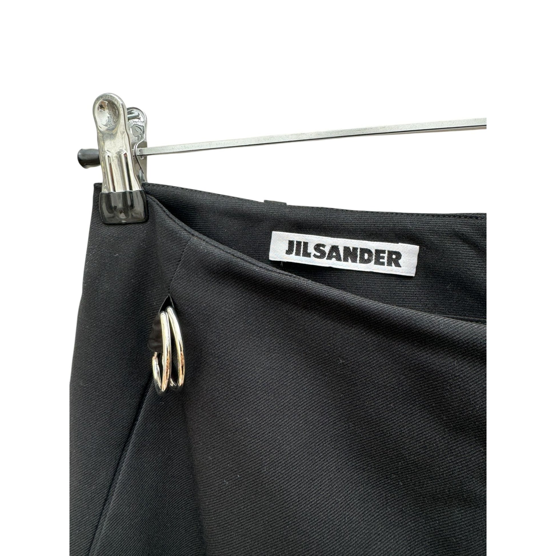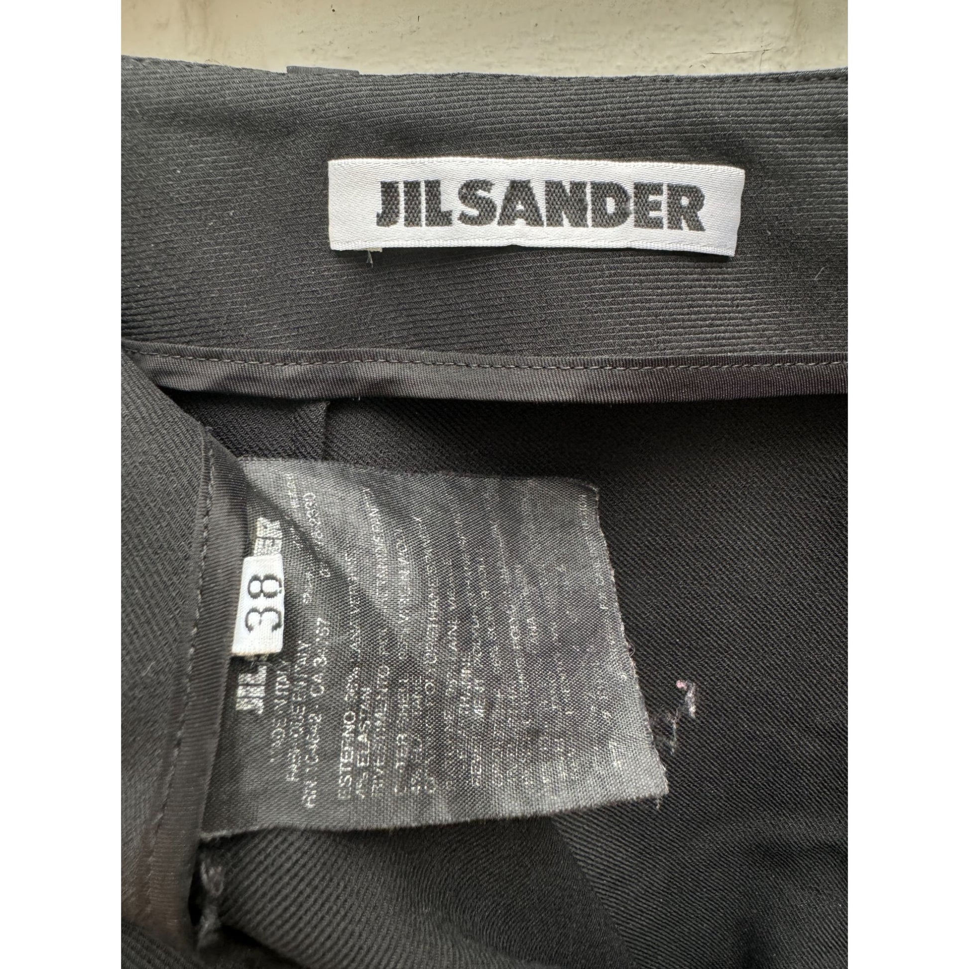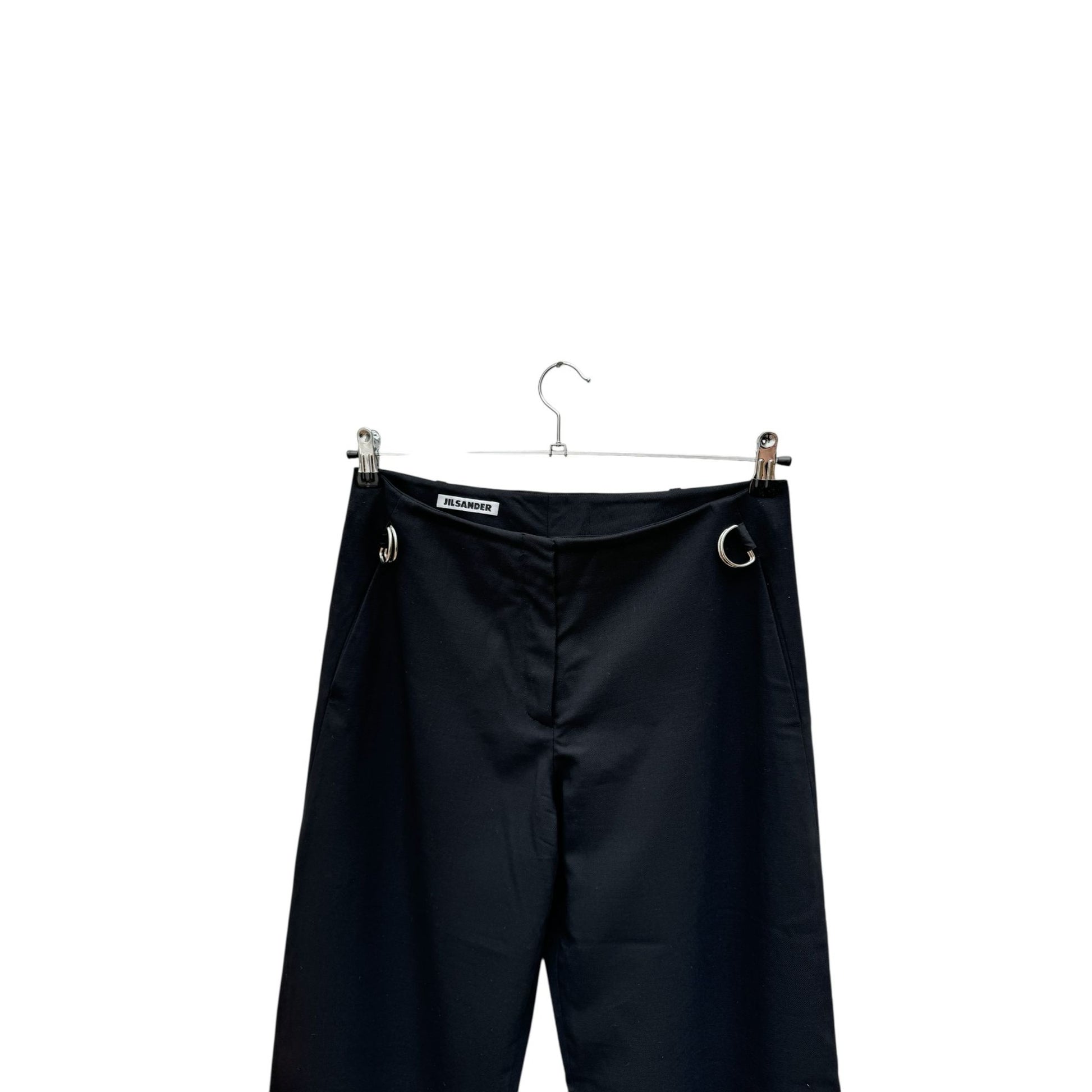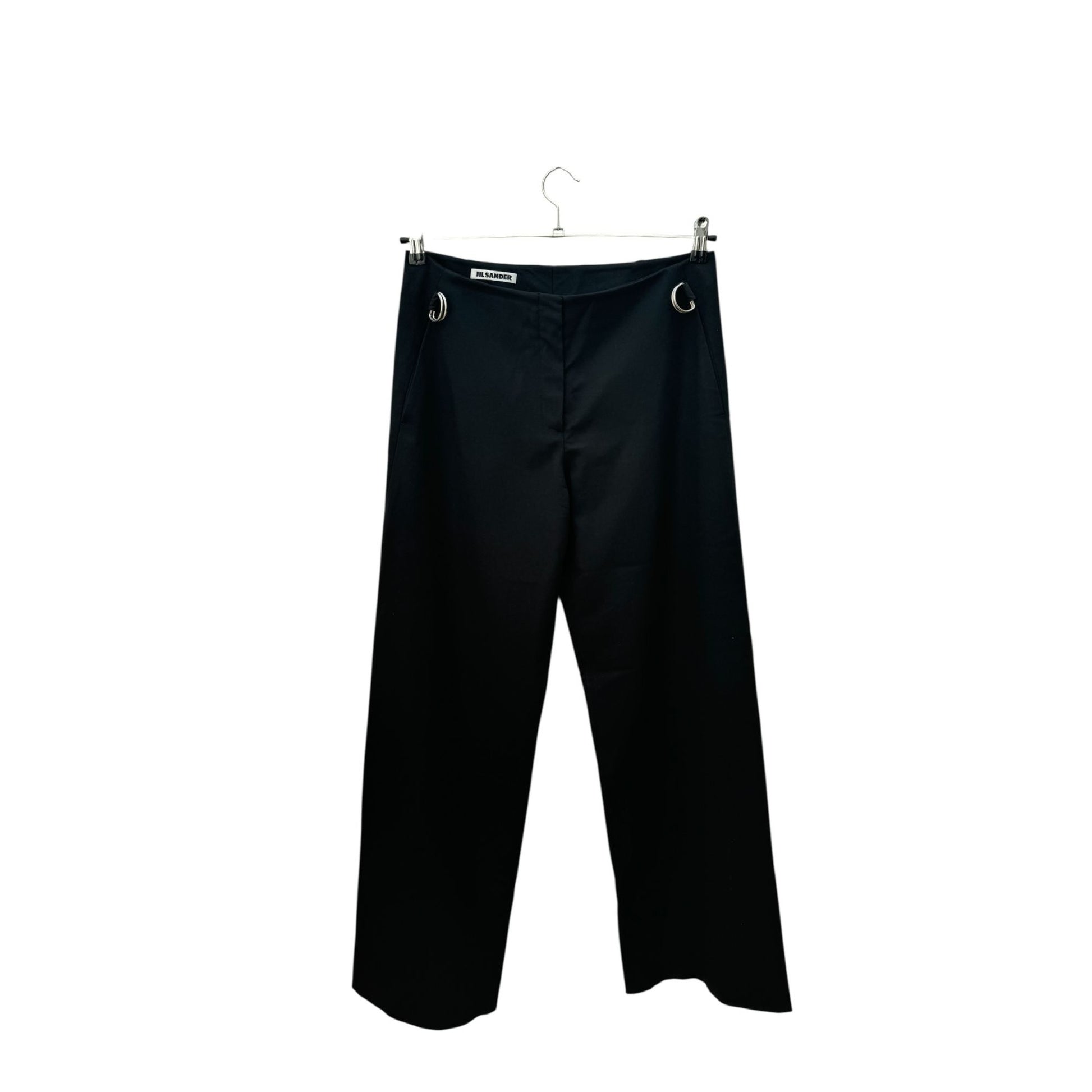 An elevated take on tailoring, these Jil Sander black wool pants embody the label’s signature minimalist refinement with a subtle avant-garde edge. Crafted in Italy from a luxurious blend of 96% wool and 4% elastane, the trousers offer both structure and comfort, falling in a clean, wide-leg silhouette that elongates the figure.