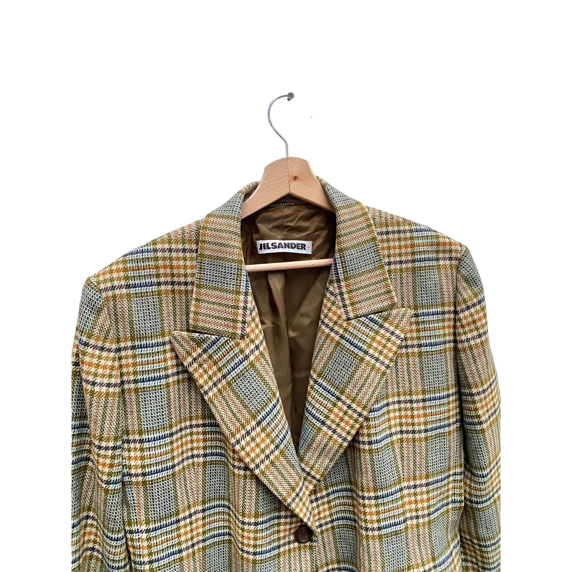 Brown Beige Checkered Plaid Blazer Jacket Wool Cashmere Unisex