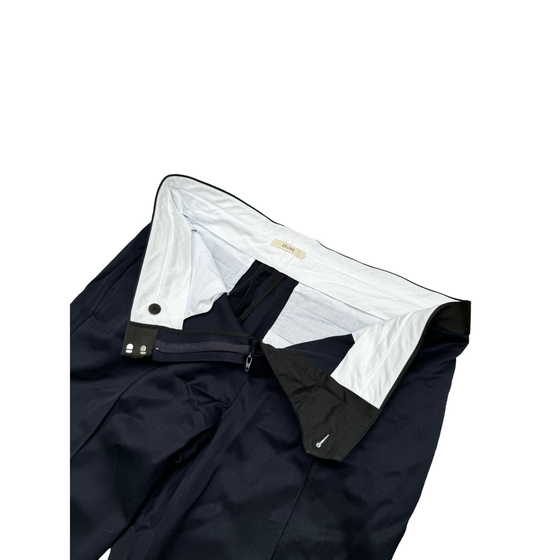 By Phoebe Philo Navy Tuxedo Pants Contrast Silk Blend Waistband