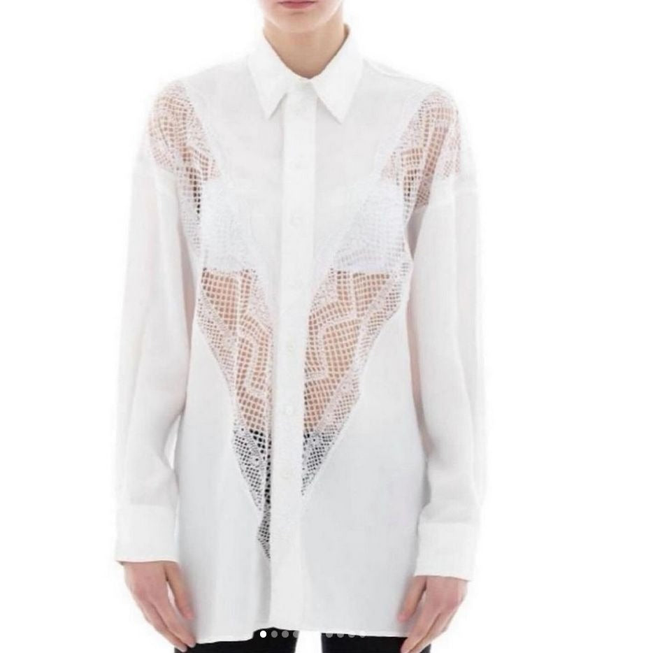 White button down shirt with lace details