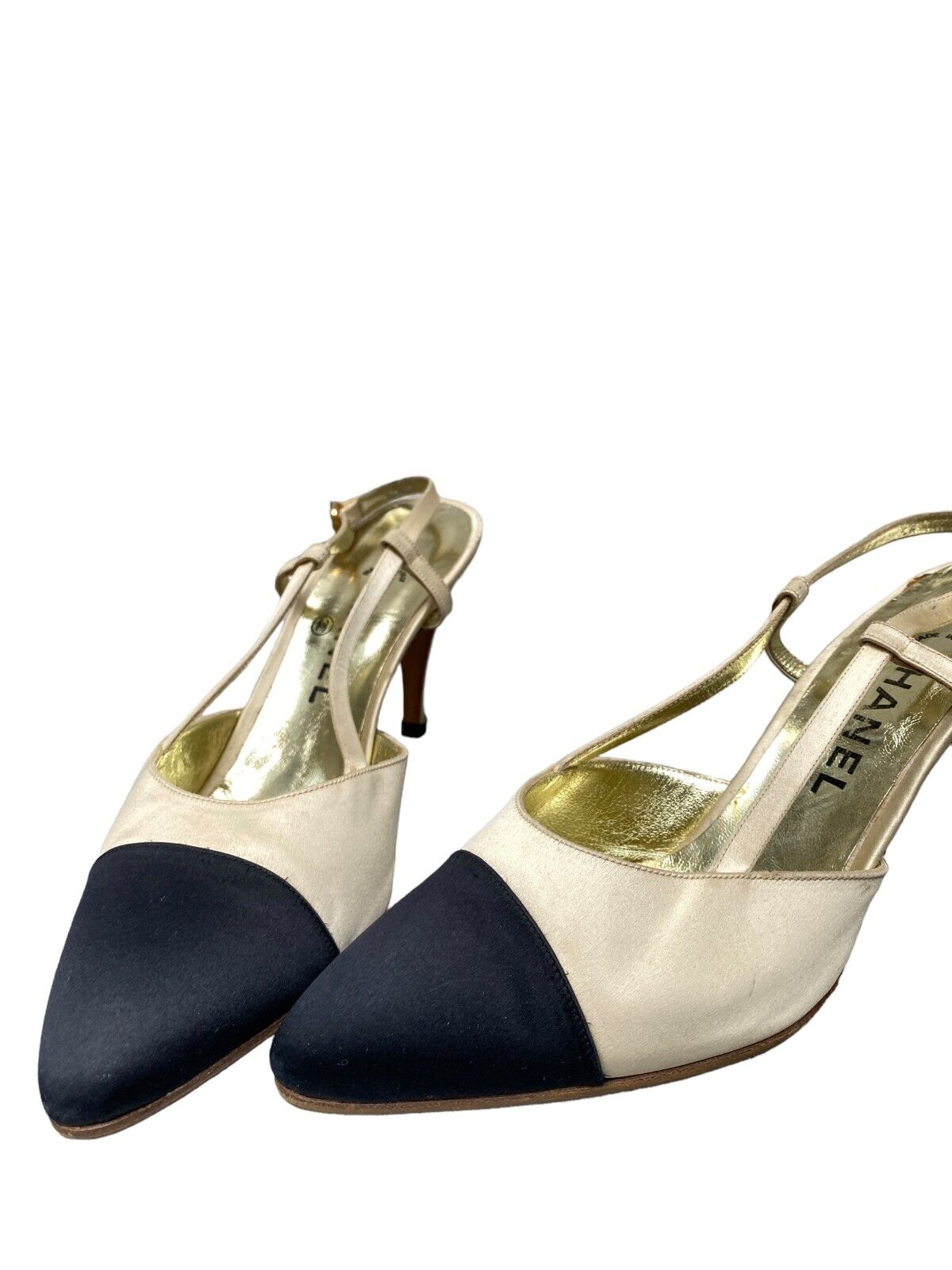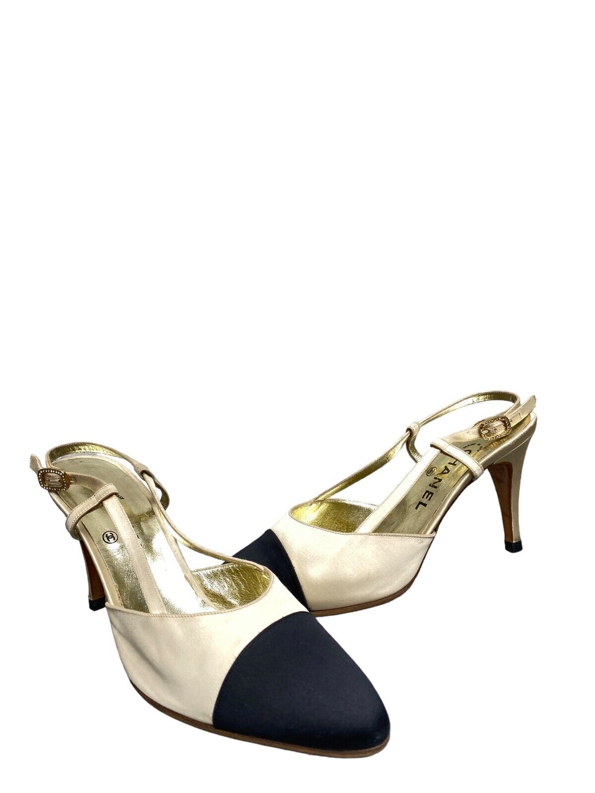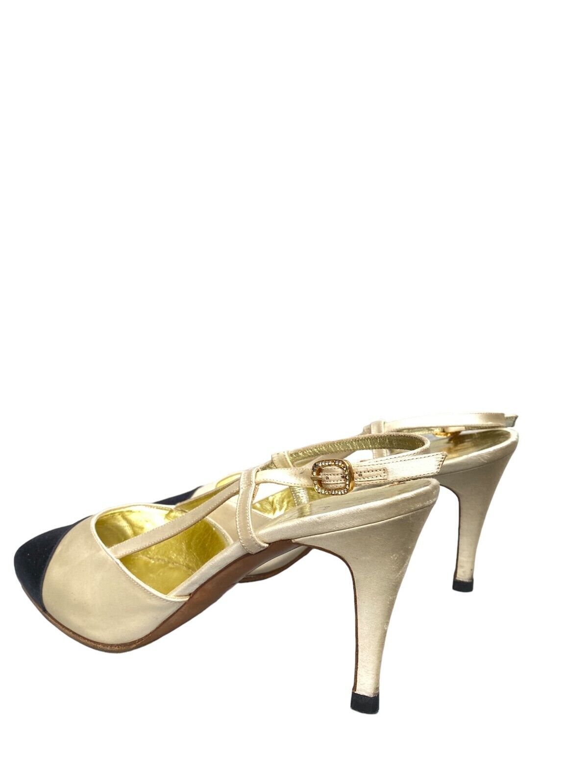 Ivory Black Slingback Pumps Heels Shoes Size 39 1/2 US 9,5