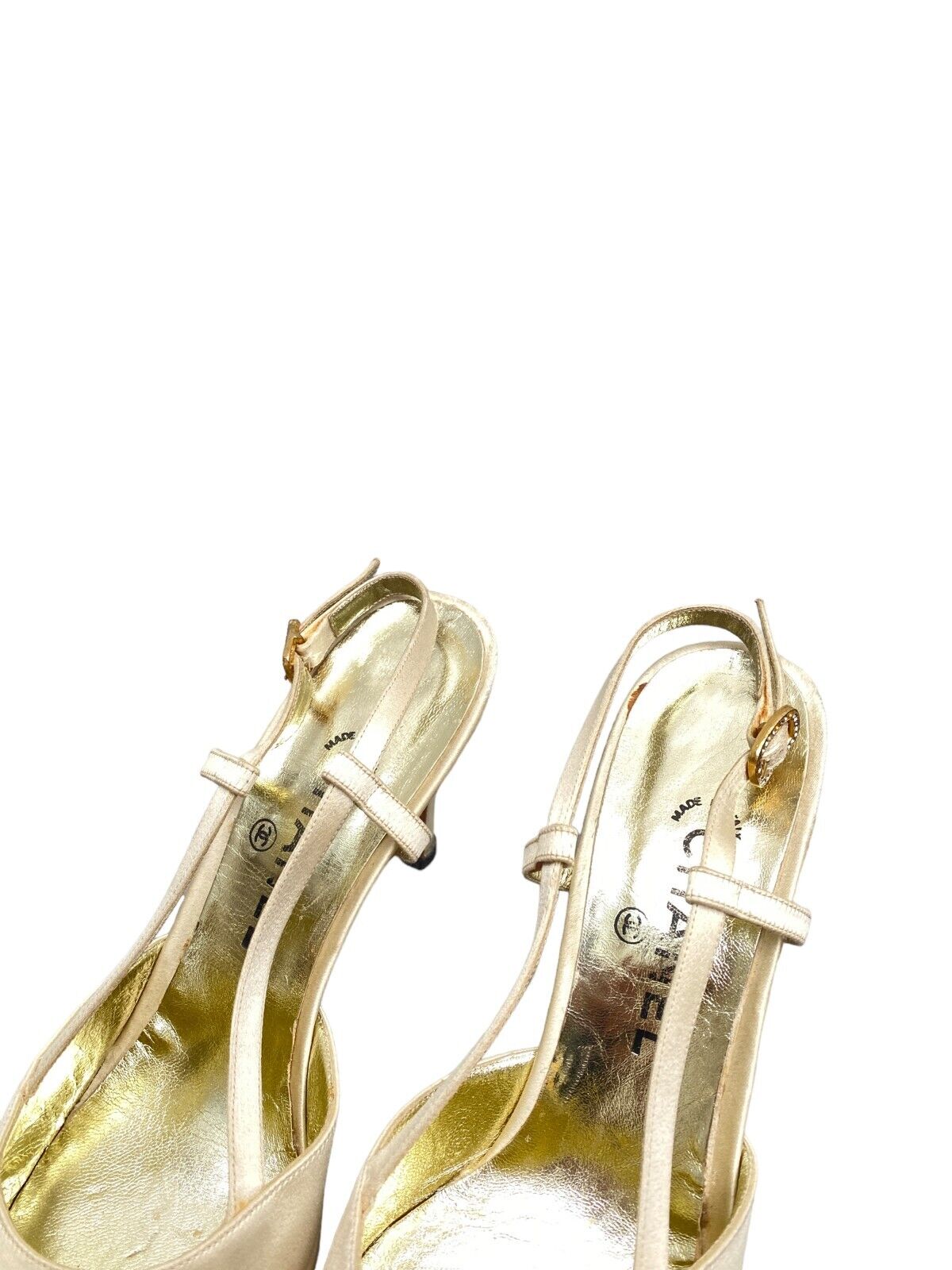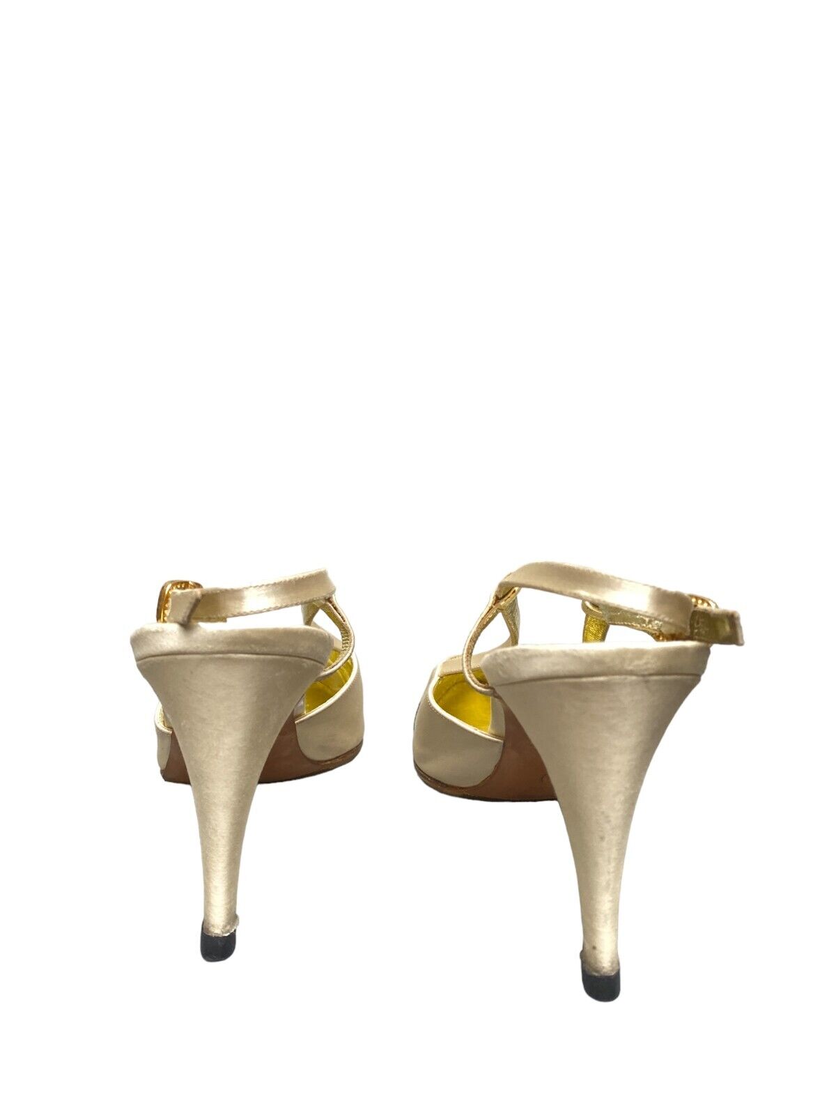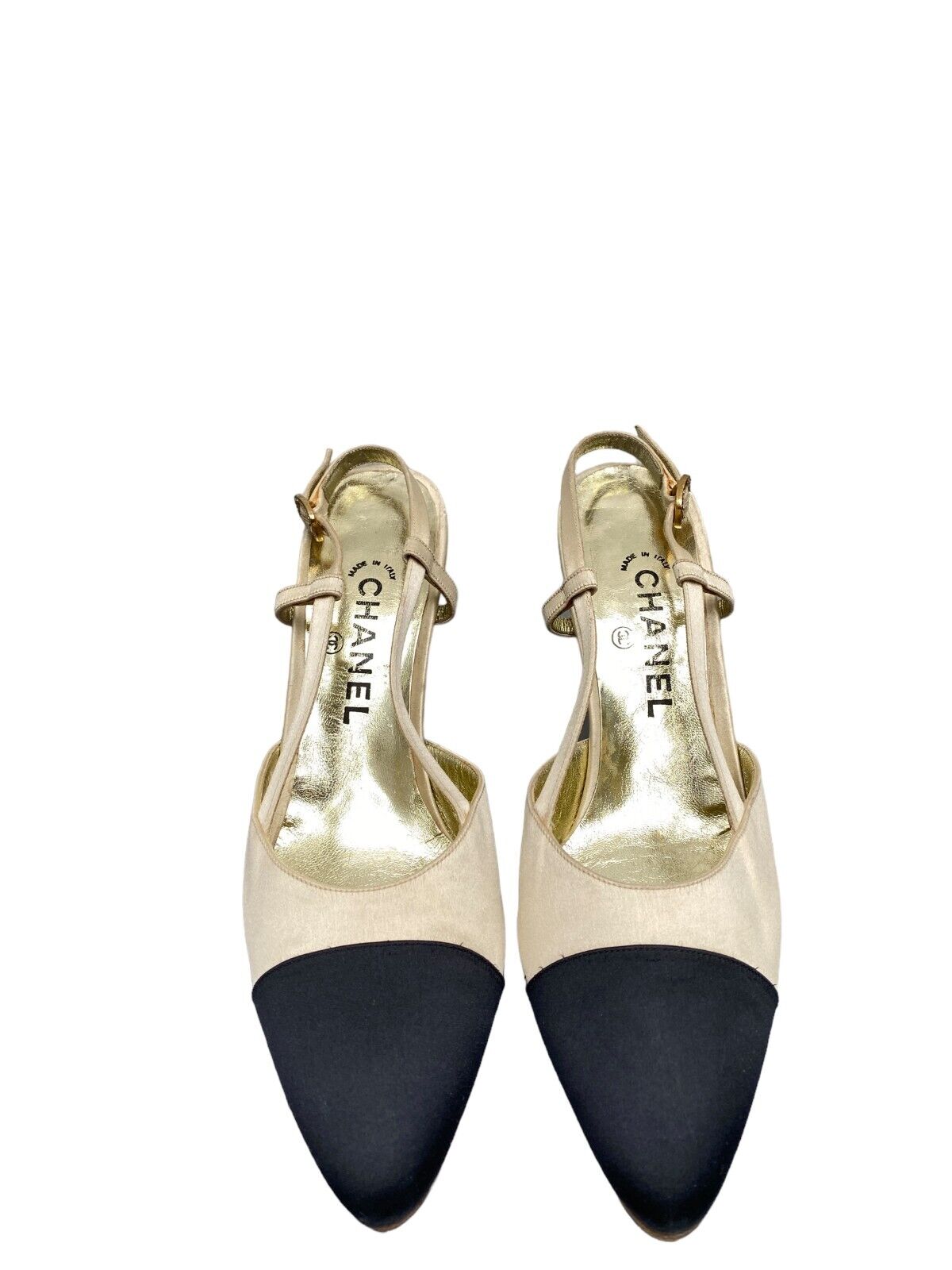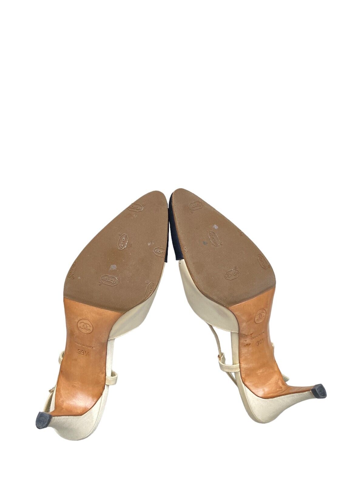 Ivory Black Slingback Pumps Heels Shoes Size 39 1/2 US 9,5