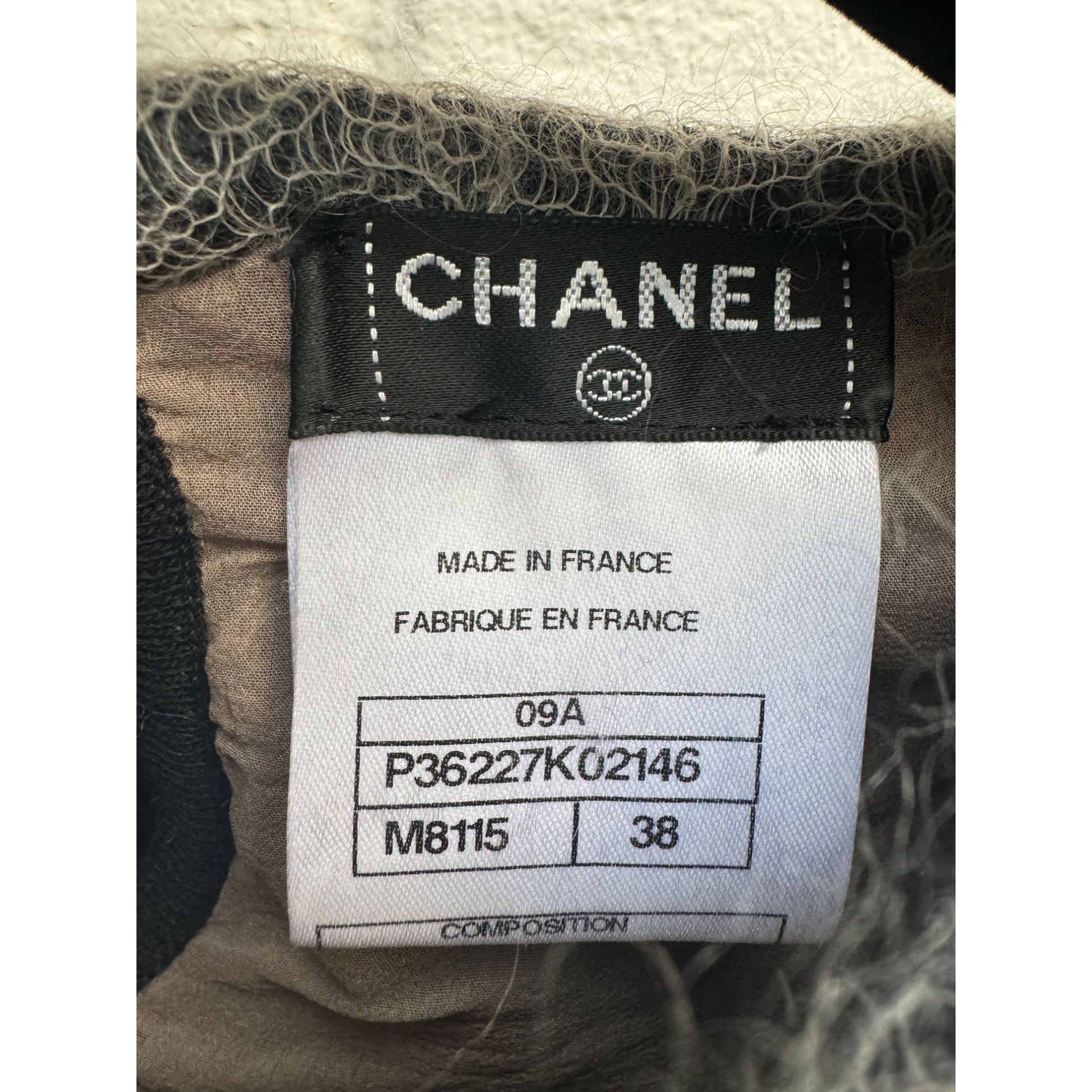 This striking Chanel dress from the Fall/Winter 2009 runway collection is a collector’s piece that perfectly captures the house’s blend of heritage and modern artistry. Crafted in France from a luxurious blend of 48% wool, 34% mohair, and 18% nylon, the knit fabric offers both warmth and gentle stretch, ensuring comfort along with a flattering fit.