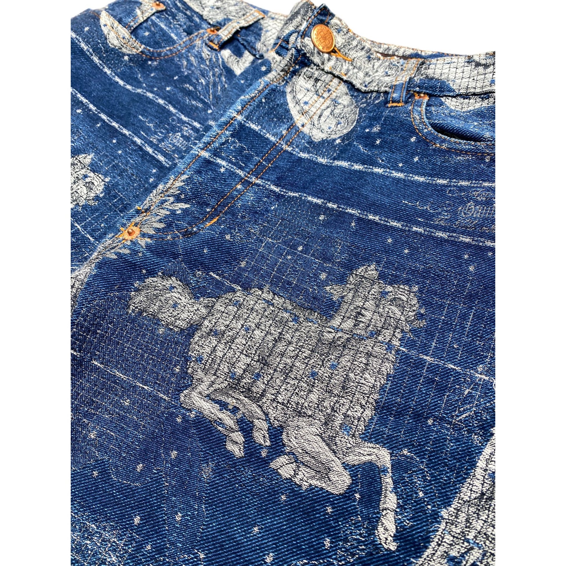 FW 1994 Le Grand Voyage Vintage Blue denim jeans Pegasus Print all over