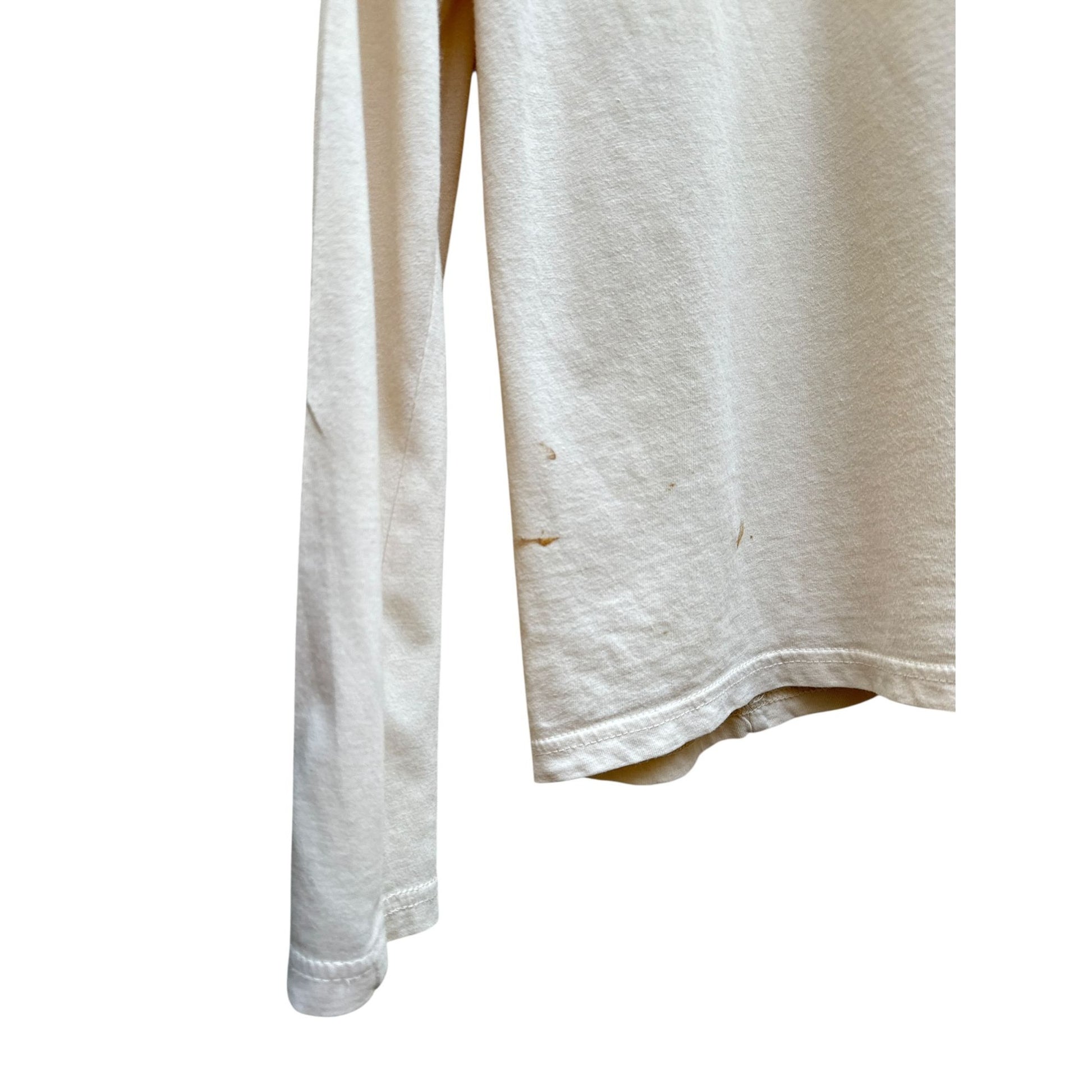 A rare archive piece from Helmut Lang’s Fall/Winter 1998 collection, this beige long-sleeved T-shirt embodies the minimalist yet conceptual spirit of the Austrian designer. Crafted from 100% soft cotton, it delivers both comfort and versatility, making it a perfect layering piece or a standalone staple for a pared-back look.