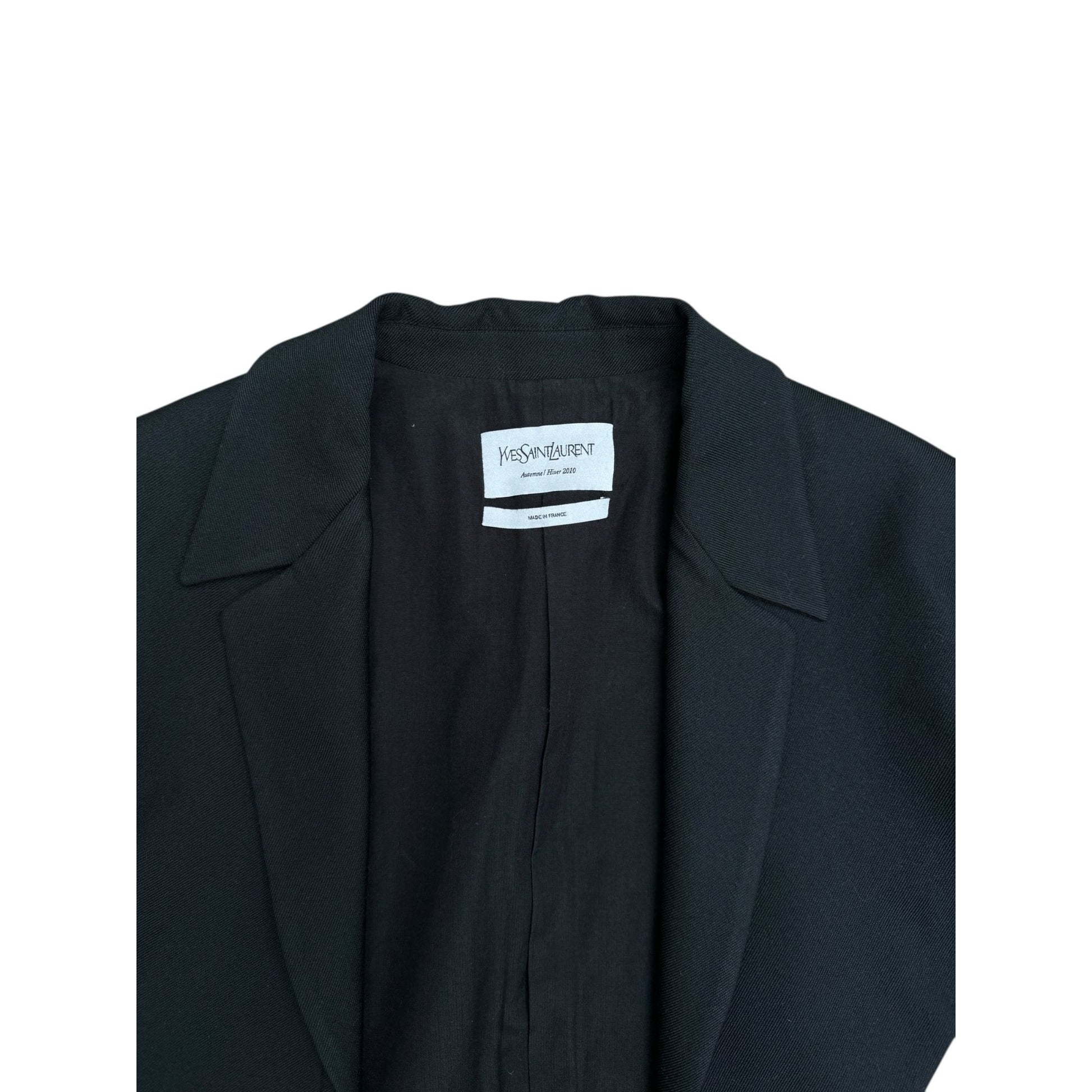 Elegant and architectural Yves Saint Laurent blazer from the FW 2010 collection, crafted in a luxurious wool and silk blend.