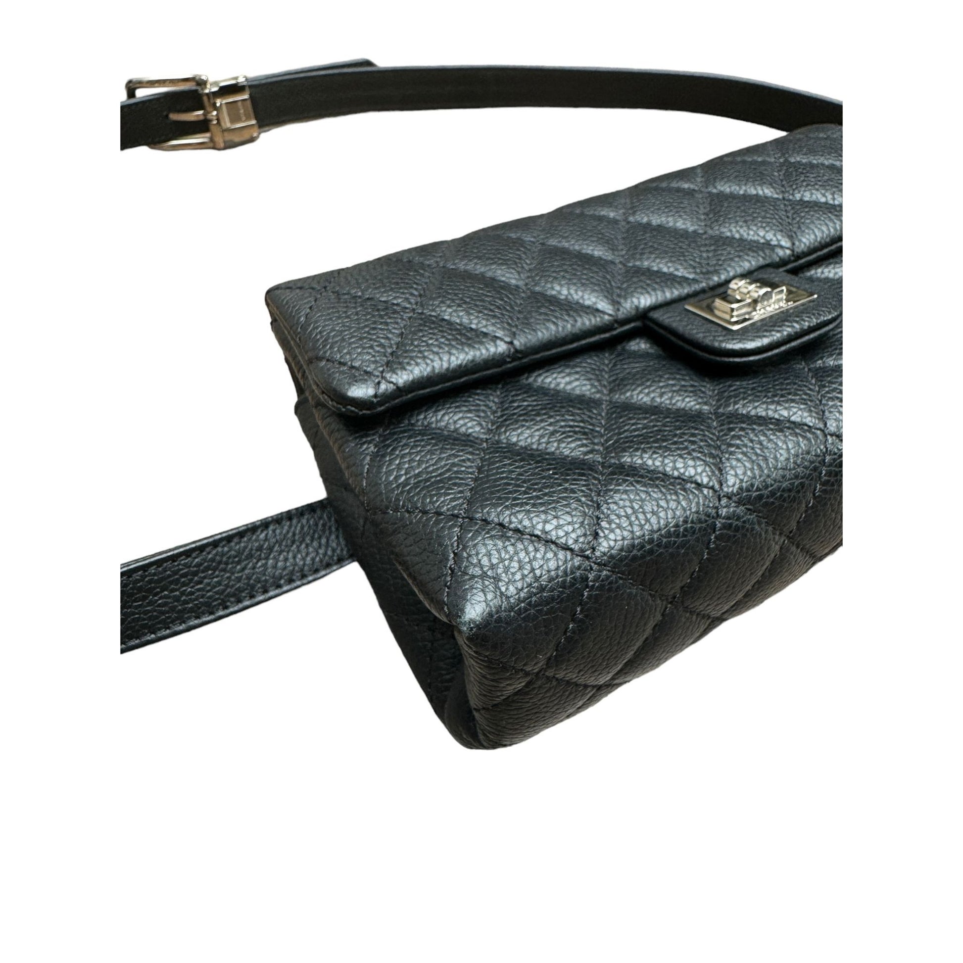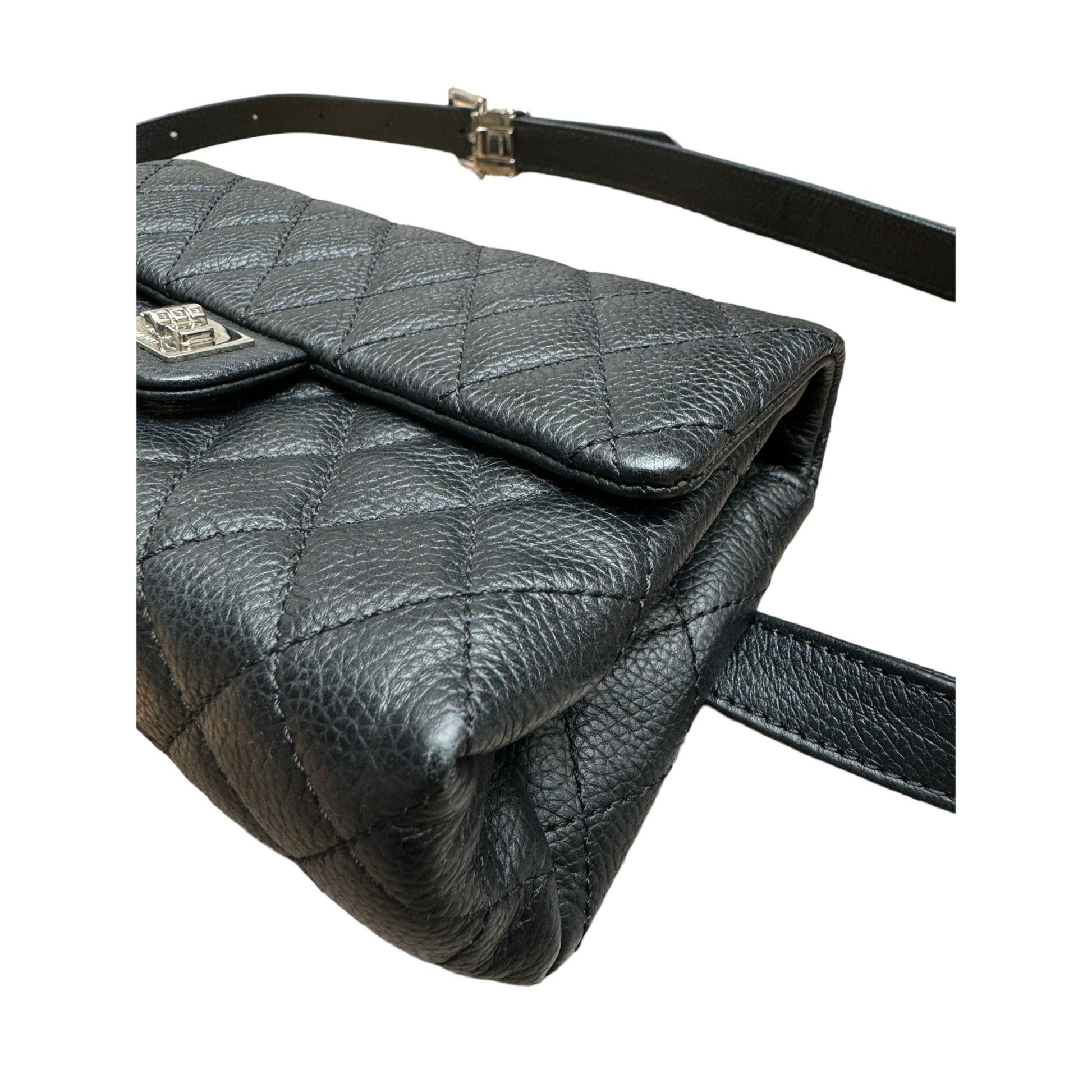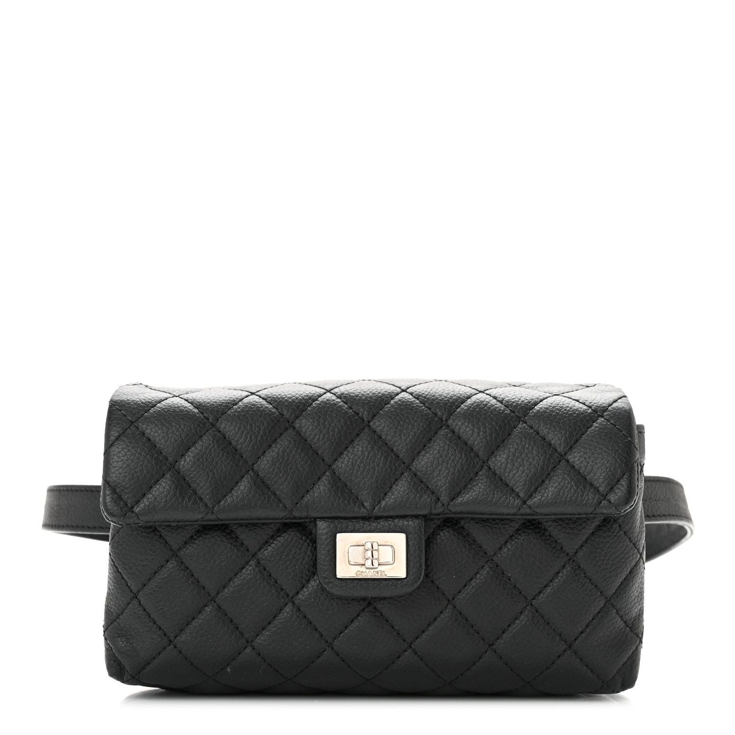 Grained Calfskin Quilted 2.55 Flap Belt Bag Clutch in Black