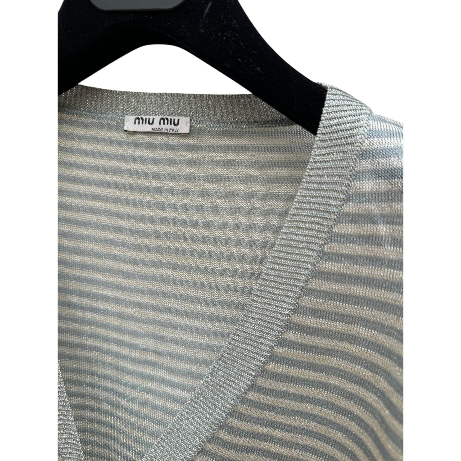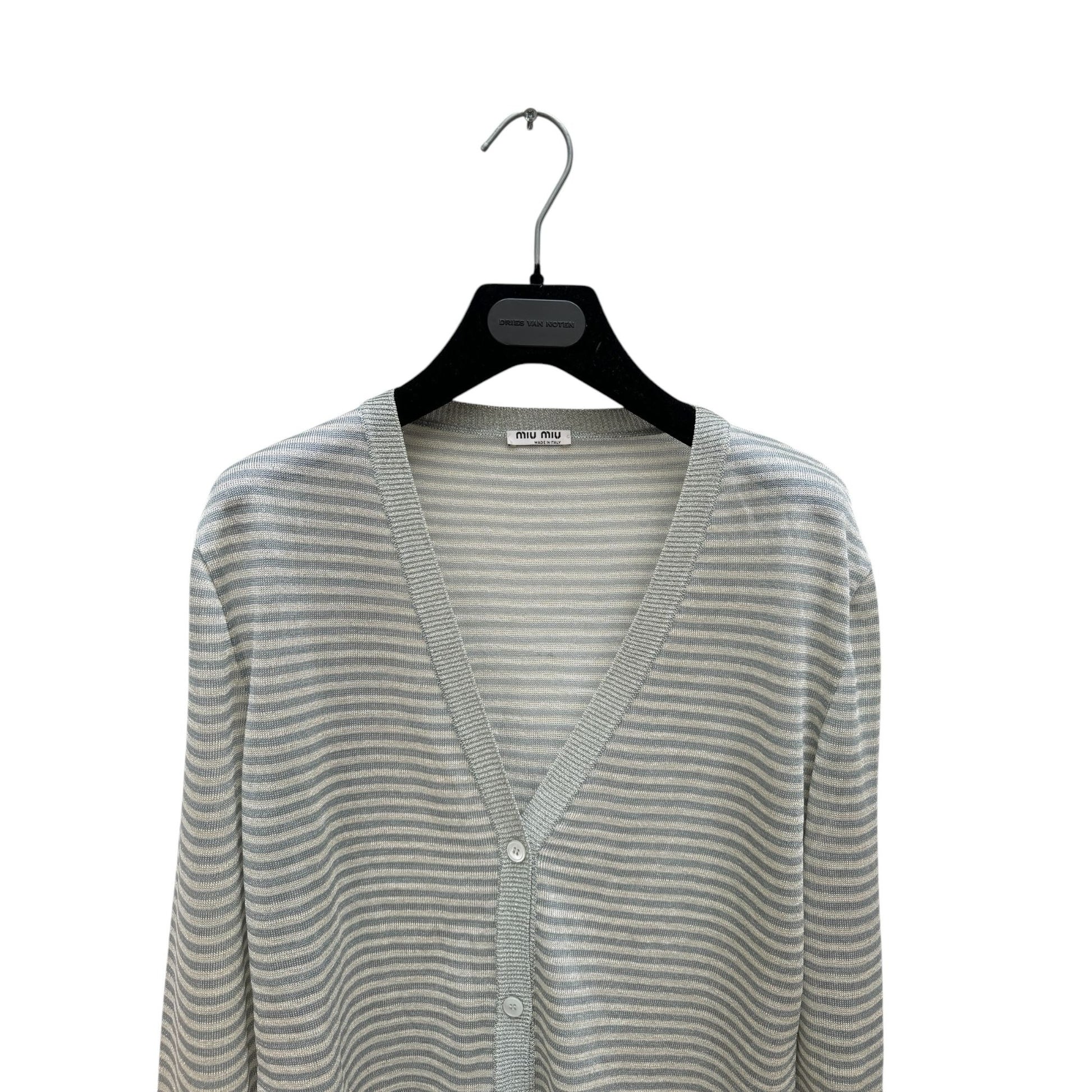 Grey Striped Shiny Cardigan