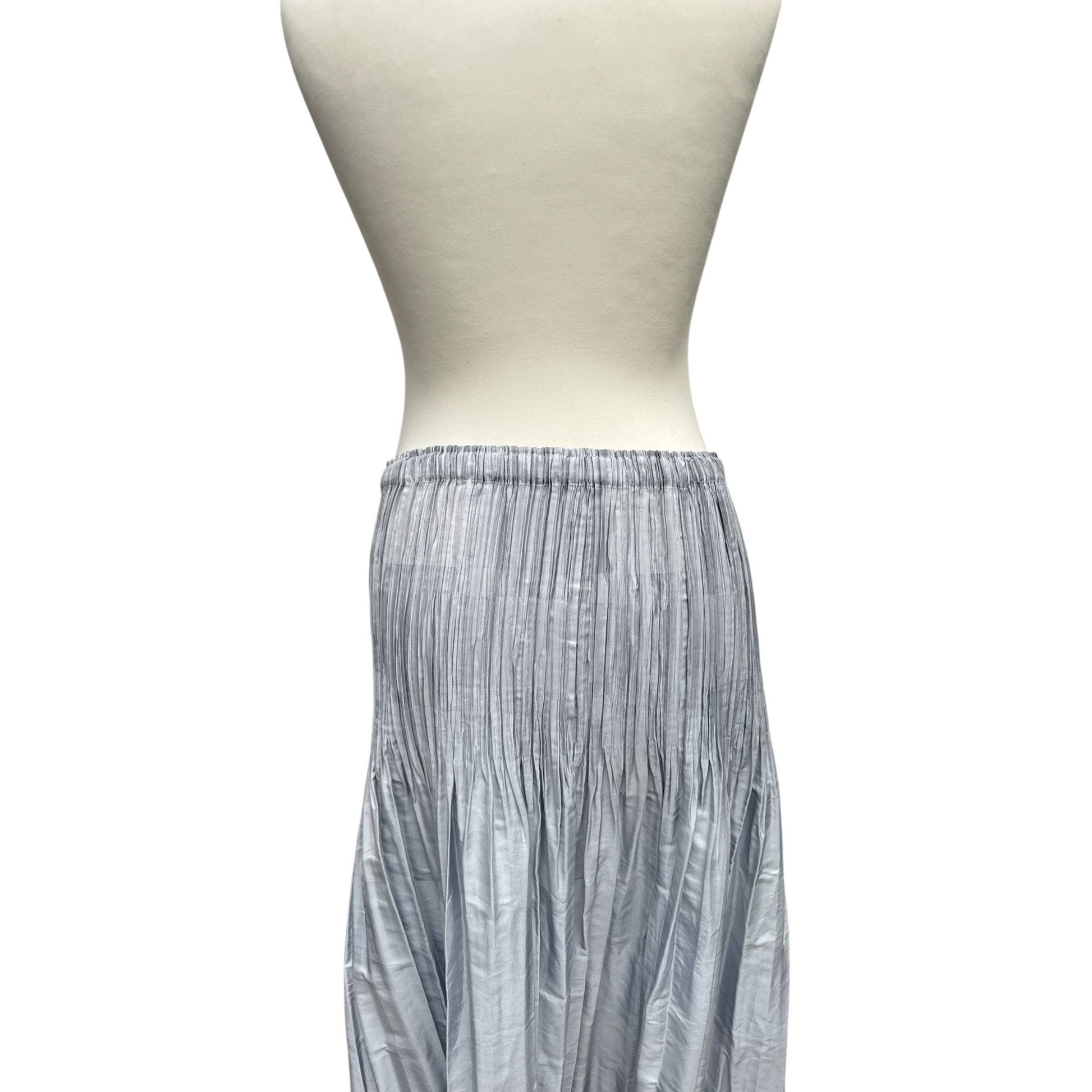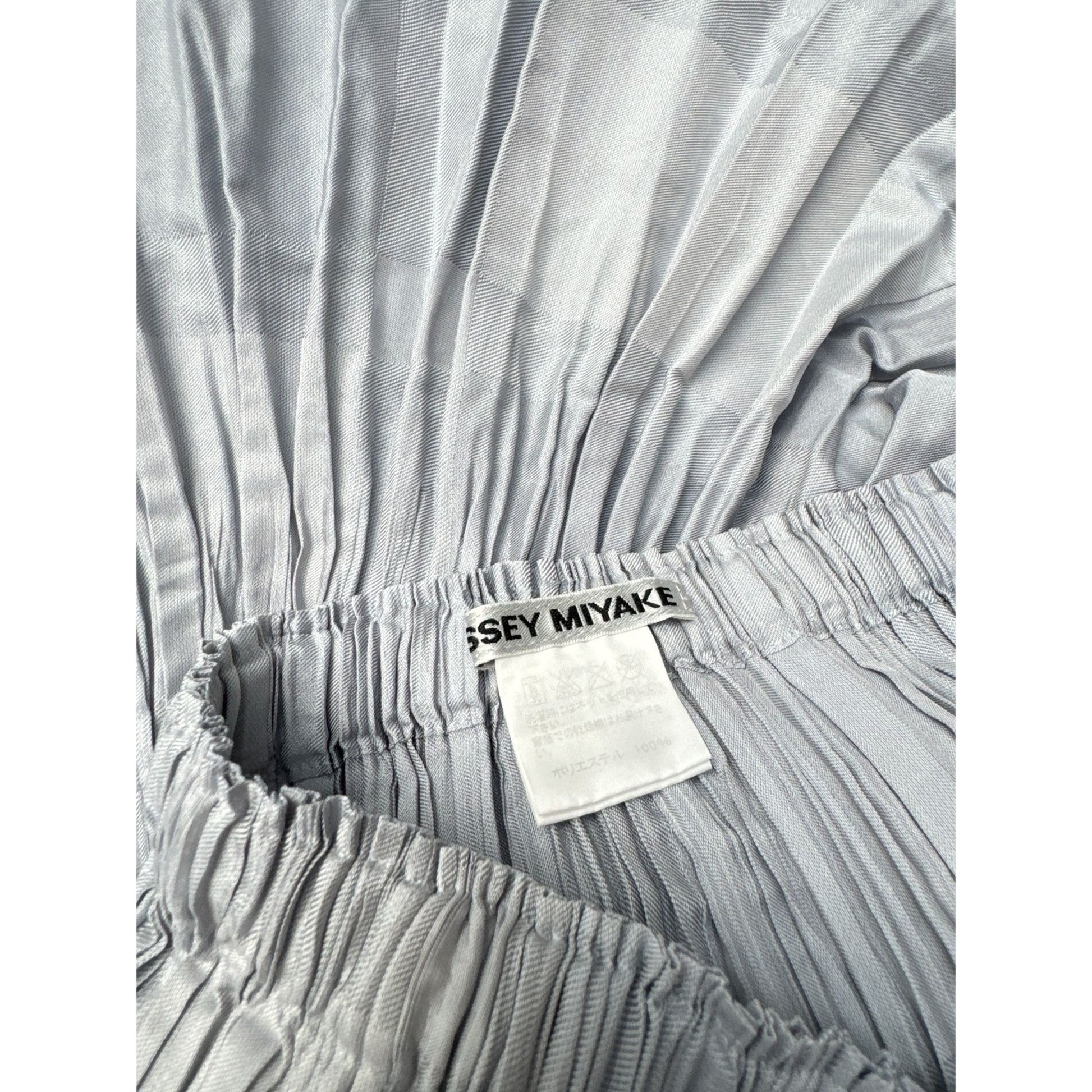 Crafted in a refined grey hue, the piece features the brand’s iconic heat-set pleating, creating a dynamic texture that moves gracefully with the wearer.