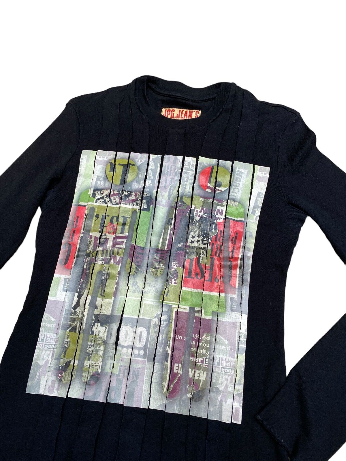 Anarchy Print Vintage Lacerated Black Longsleeves Size M Unis