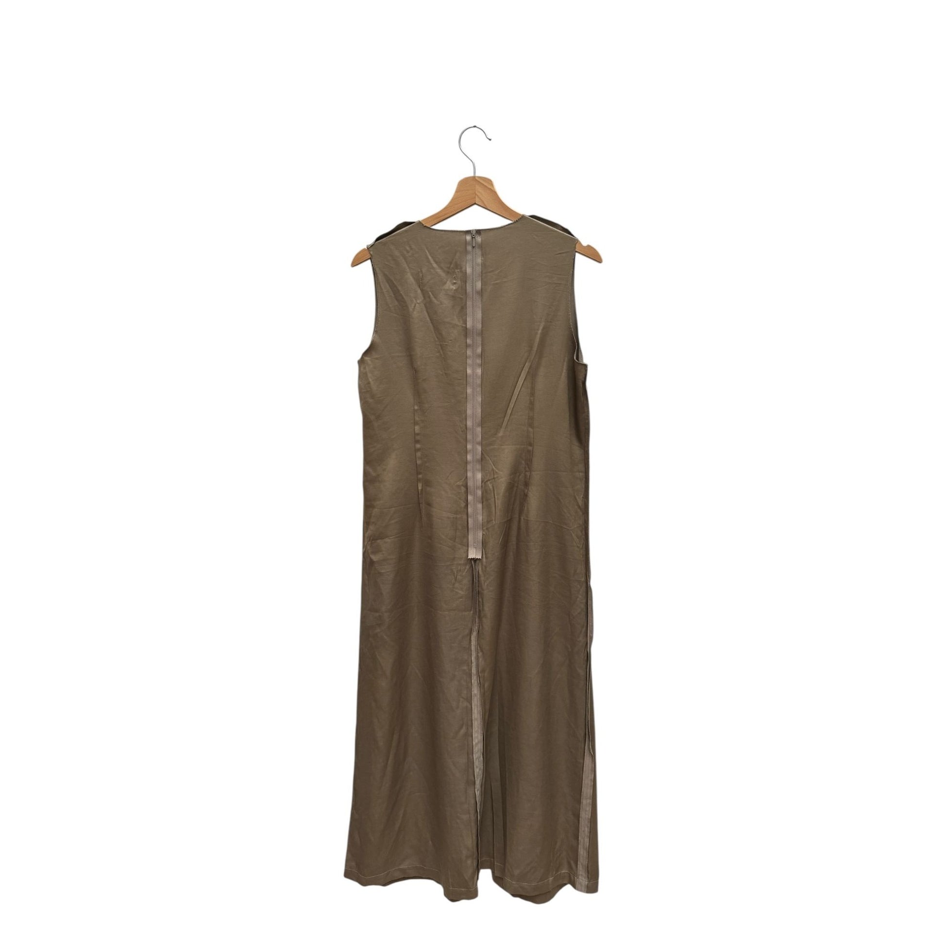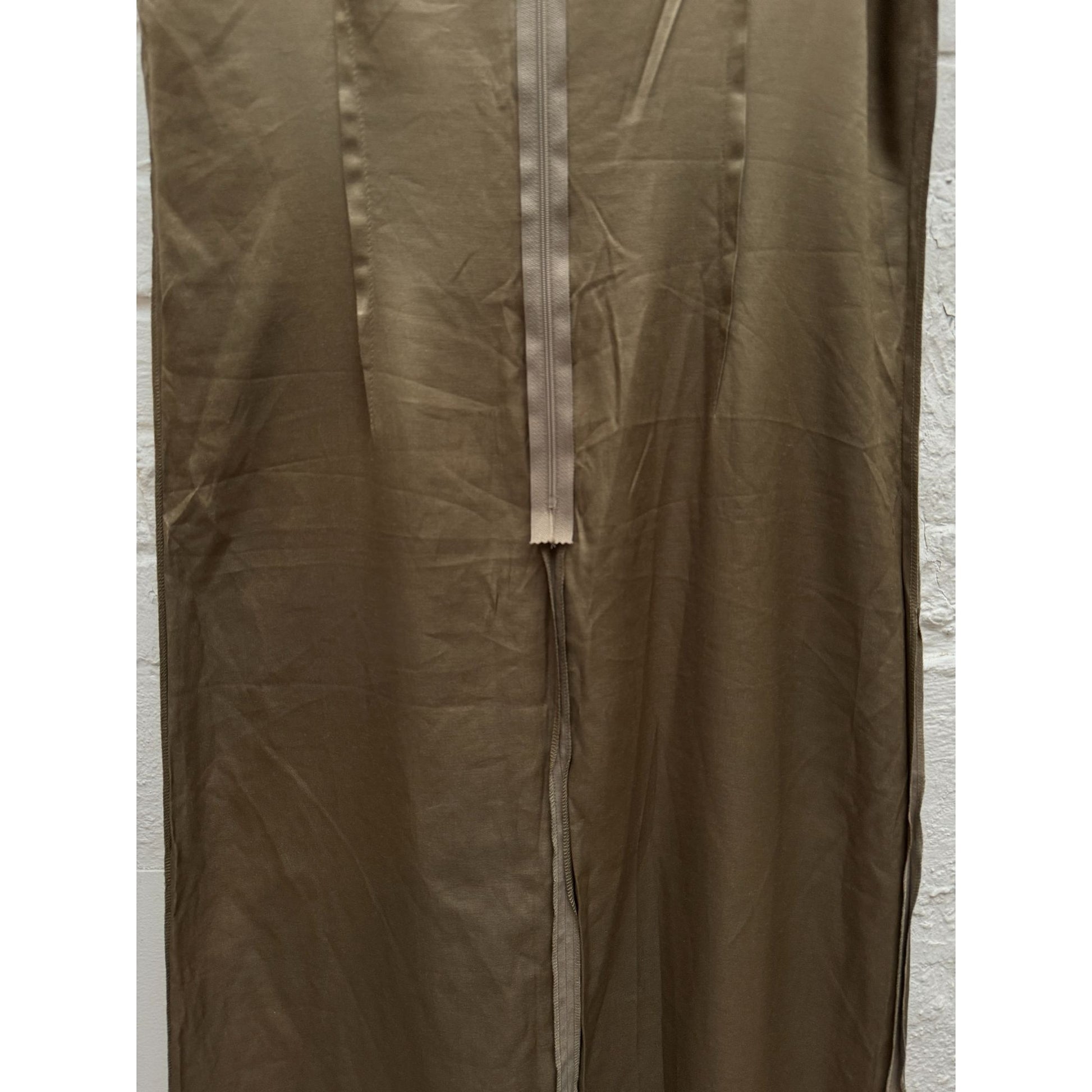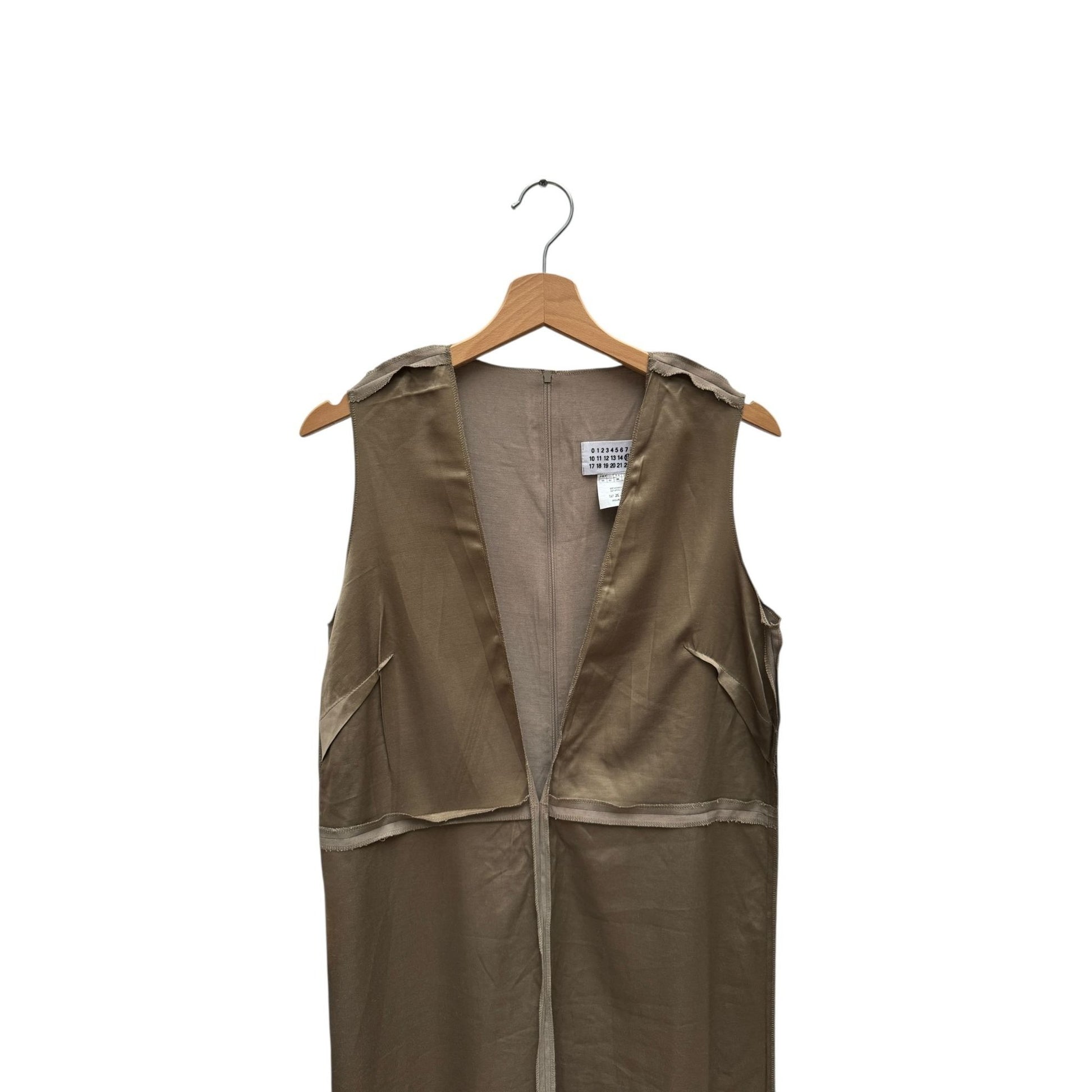 Crafted in a shimmering bronze viscose-blend, the dress features a deep plunging neckline, a straight elongated cut, and a zip closure at the back. Its minimalist silhouette is elevated by the conceptual design, making it an extremely rare archival piece, produced in very limited quantities and available exclusively in France, Switzerland, and Luxembourg at the time.