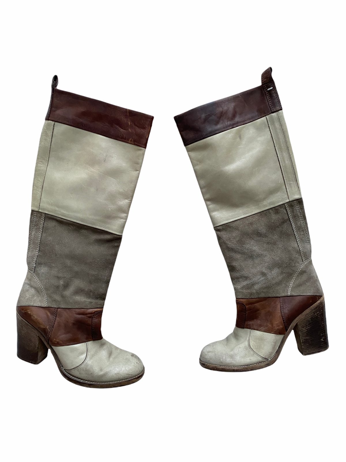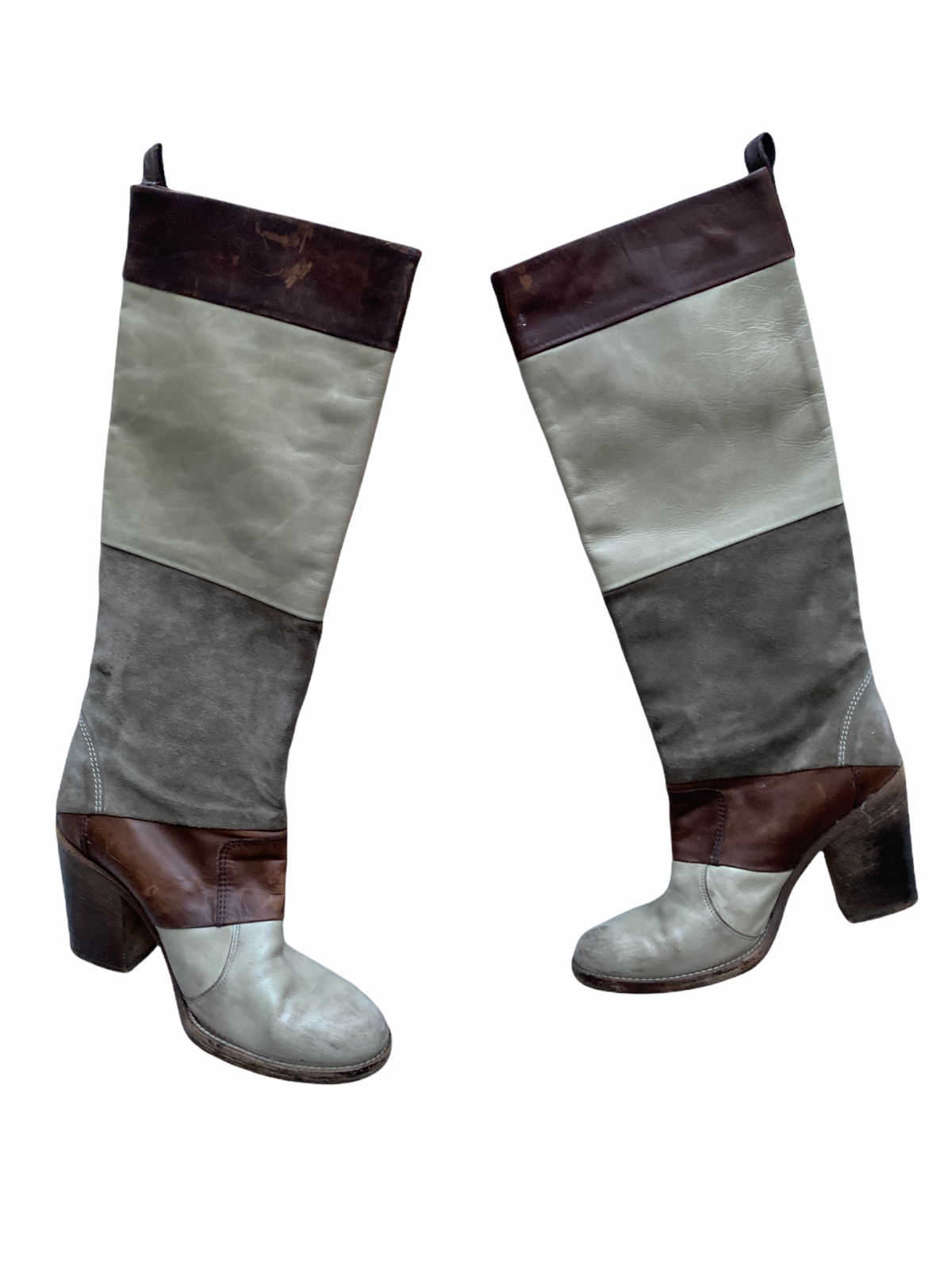 Patchwork Leather & Suede High Boots Size 37,5