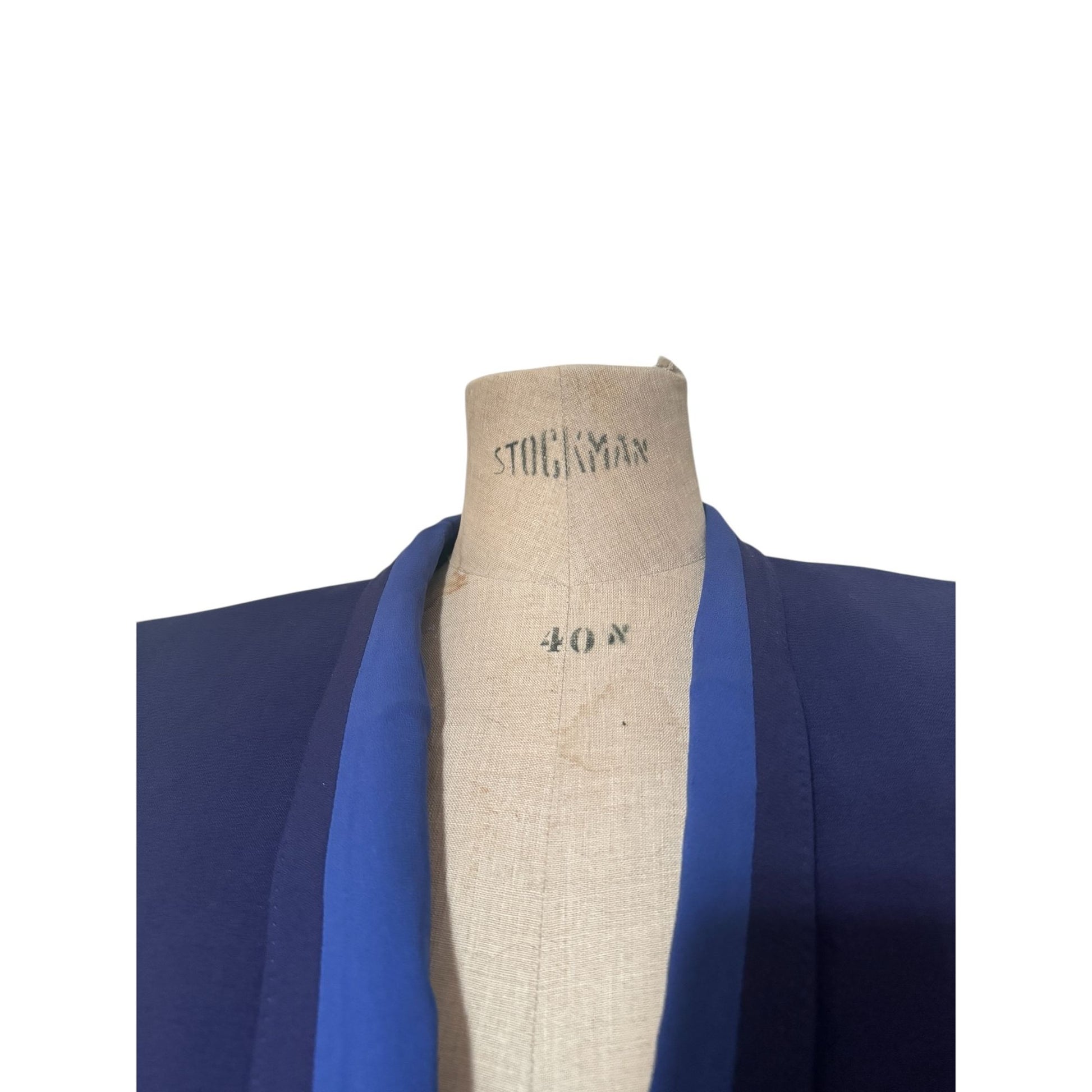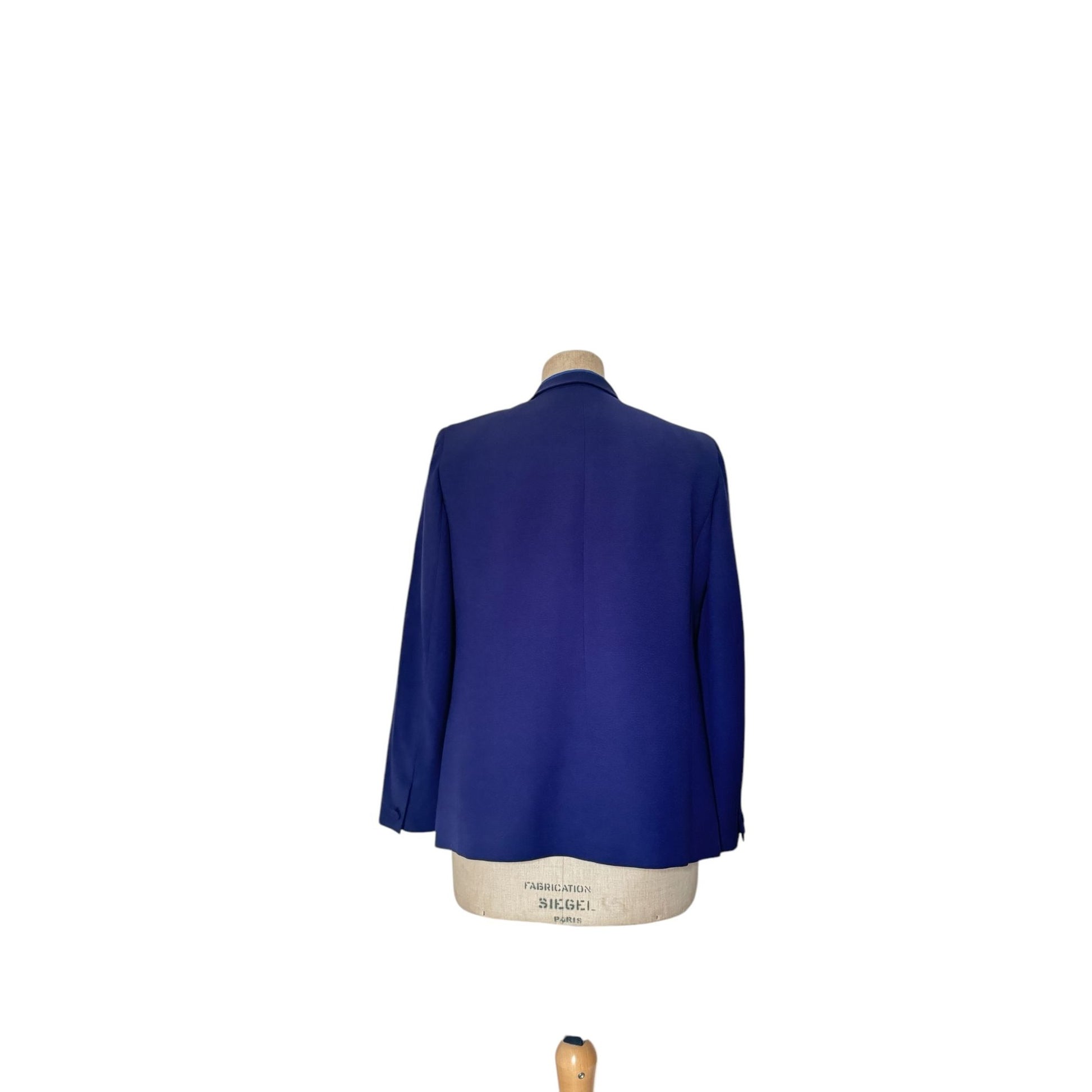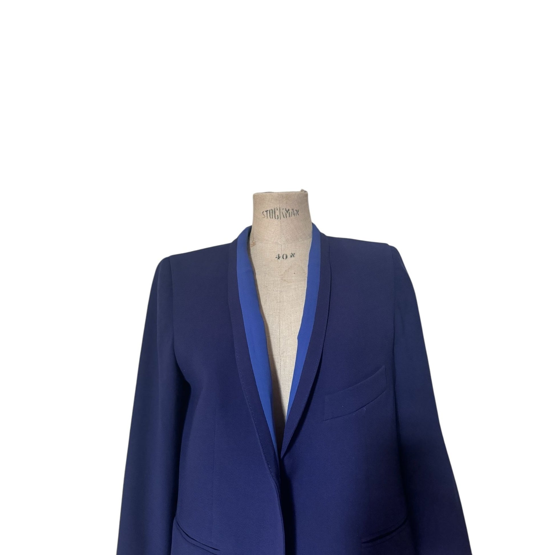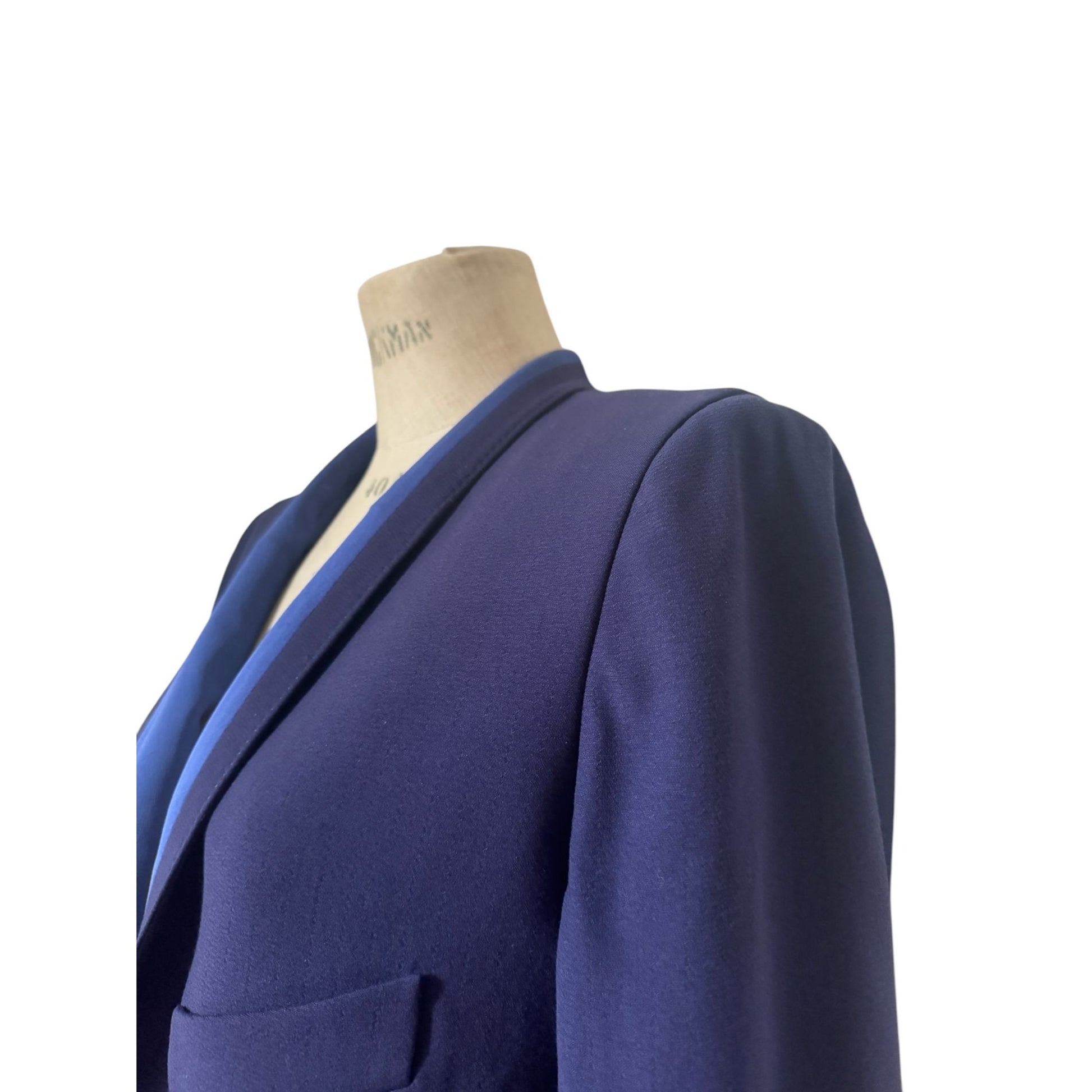 A testament to the timeless elegance and savoir-faire of Hermès, this navy blazer embodies the house’s commitment to impeccable tailoring and refined craftsmanship. Made from 100% luxurious wool, it features a clean, structured silhouette enhanced by a subtle contrast lapel in a lighter blue tone — a discreet detail that speaks volumes of understated sophistication.