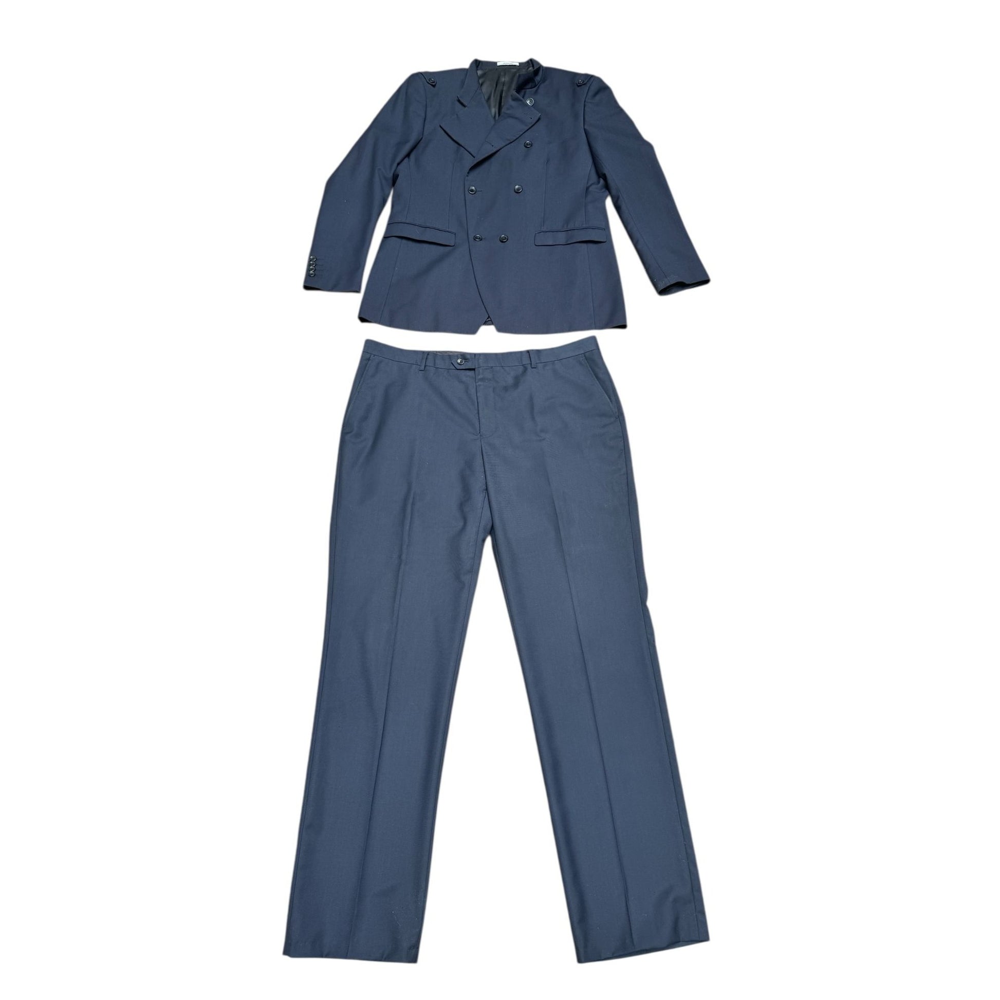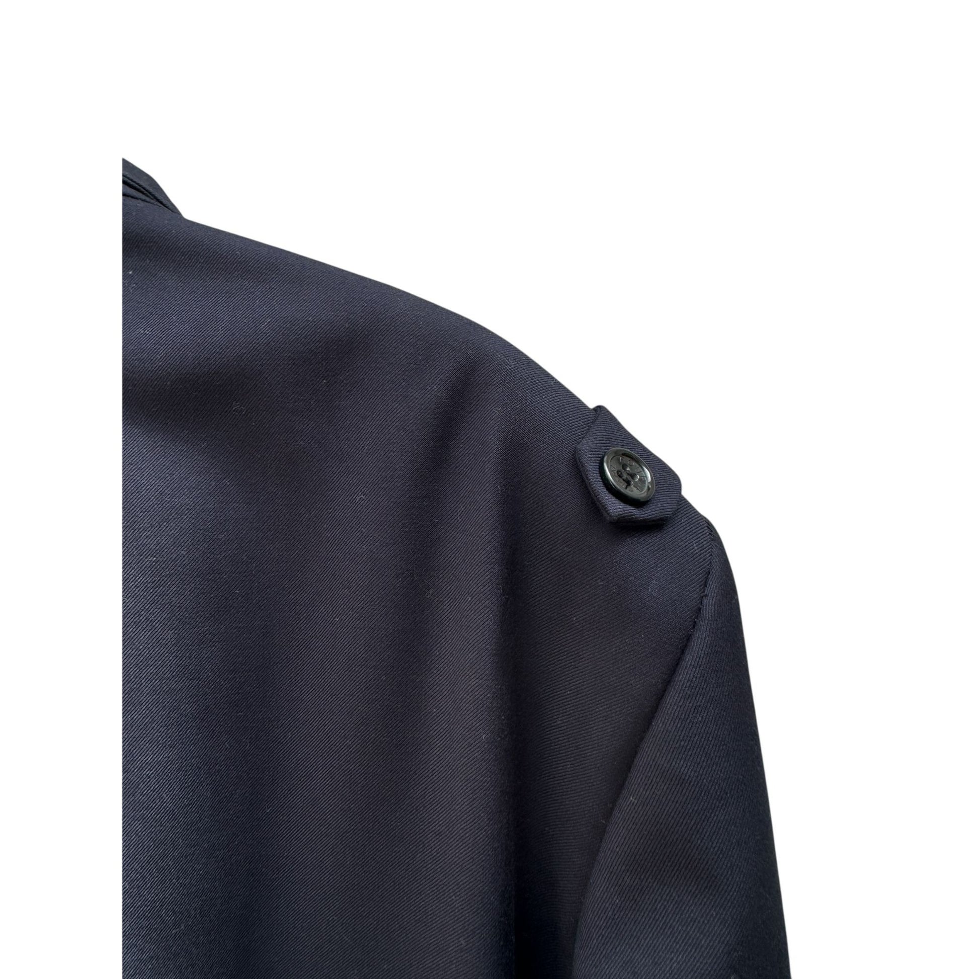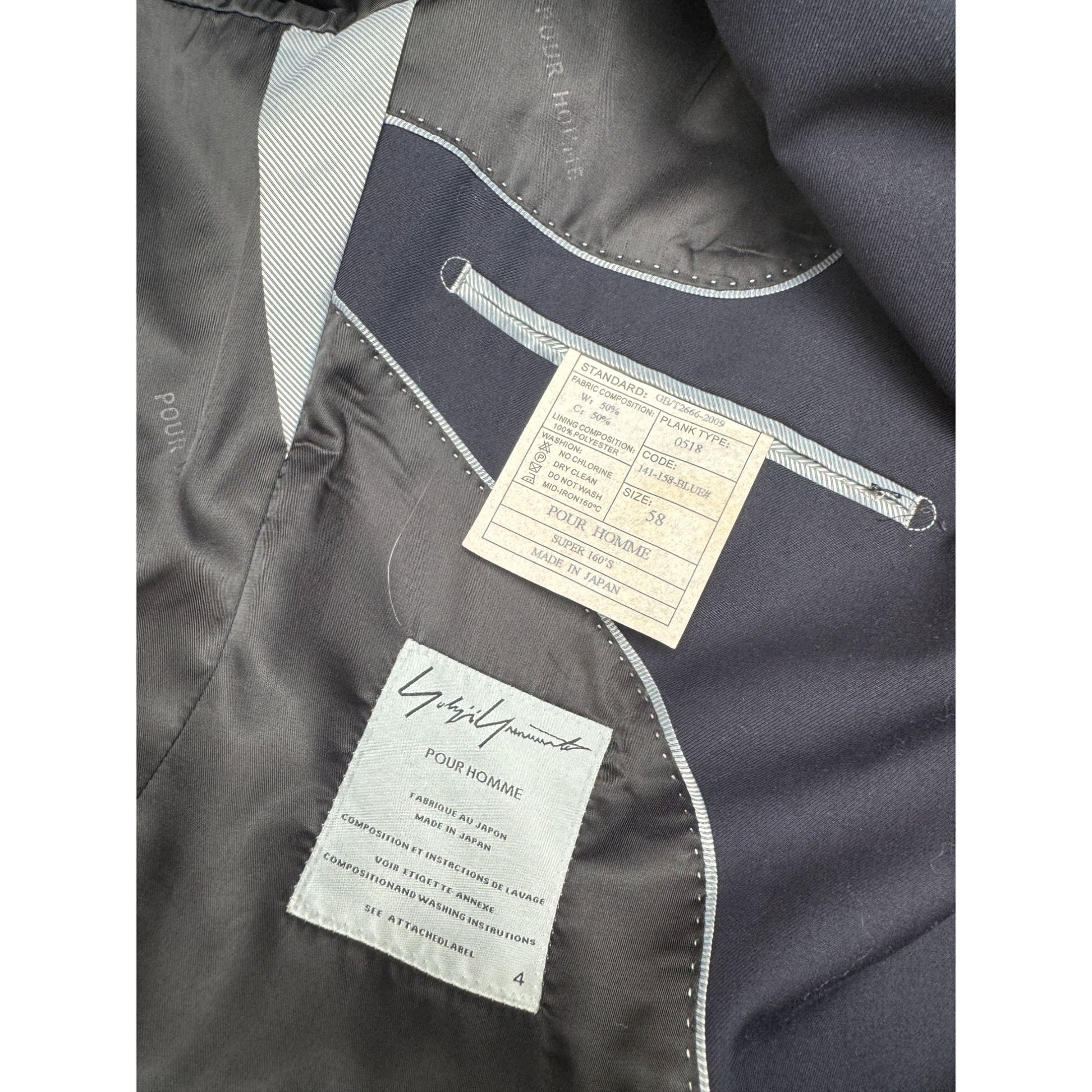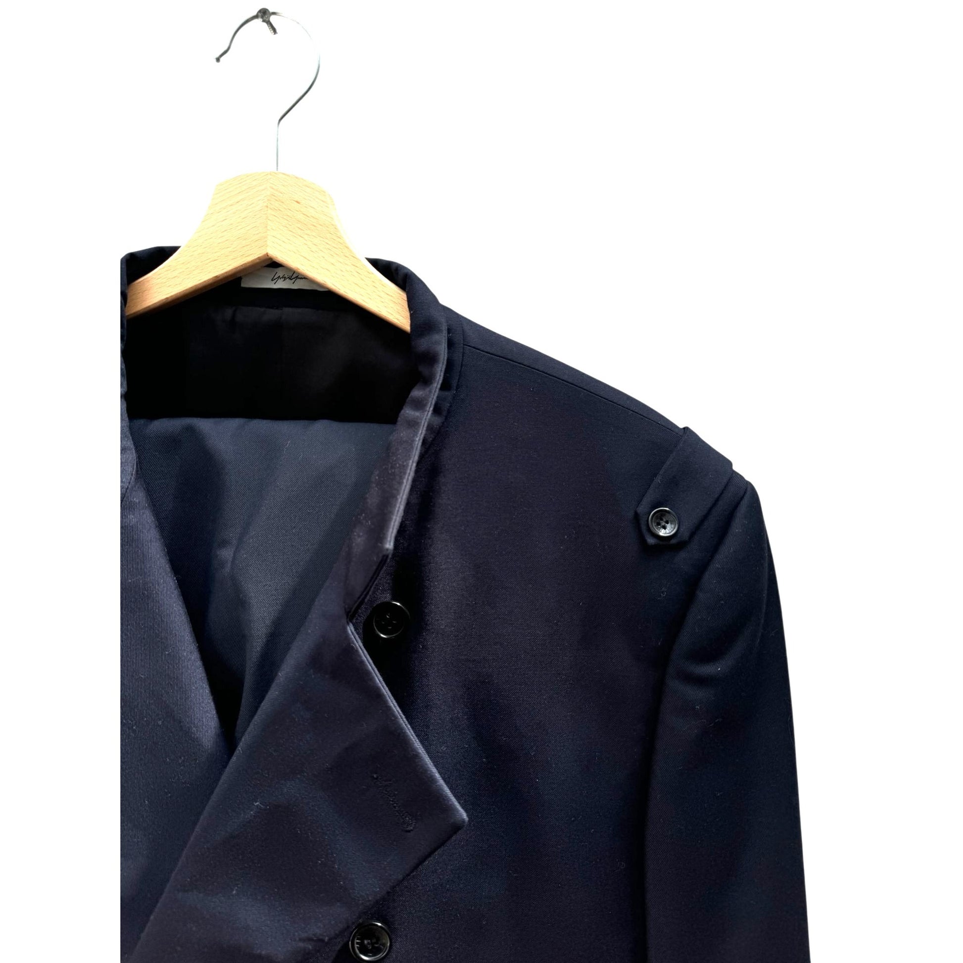 Striking Yohji Yamamoto military-inspired suit in a deep navy tone.