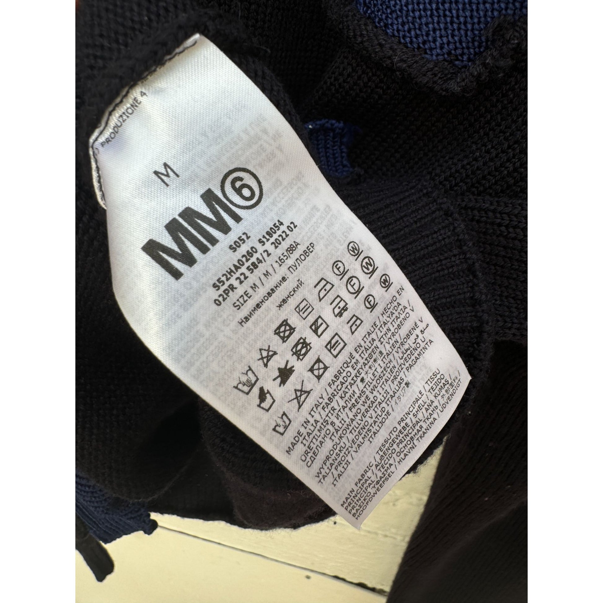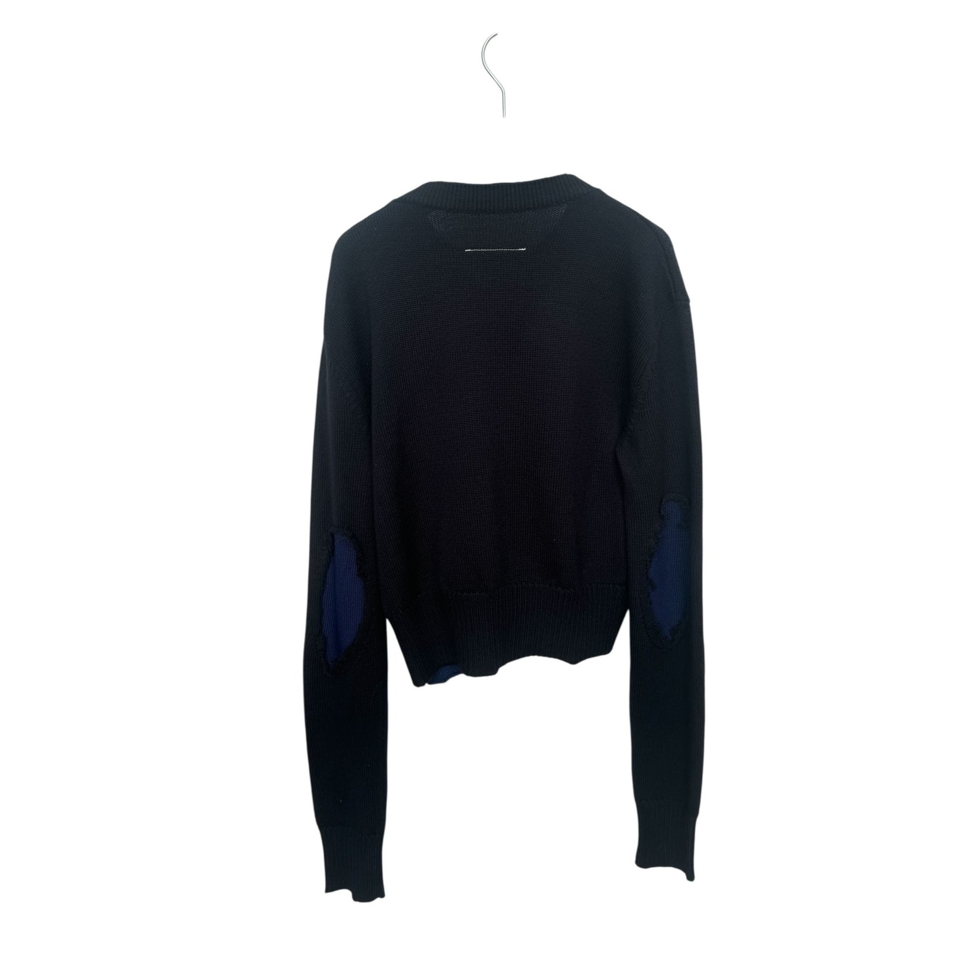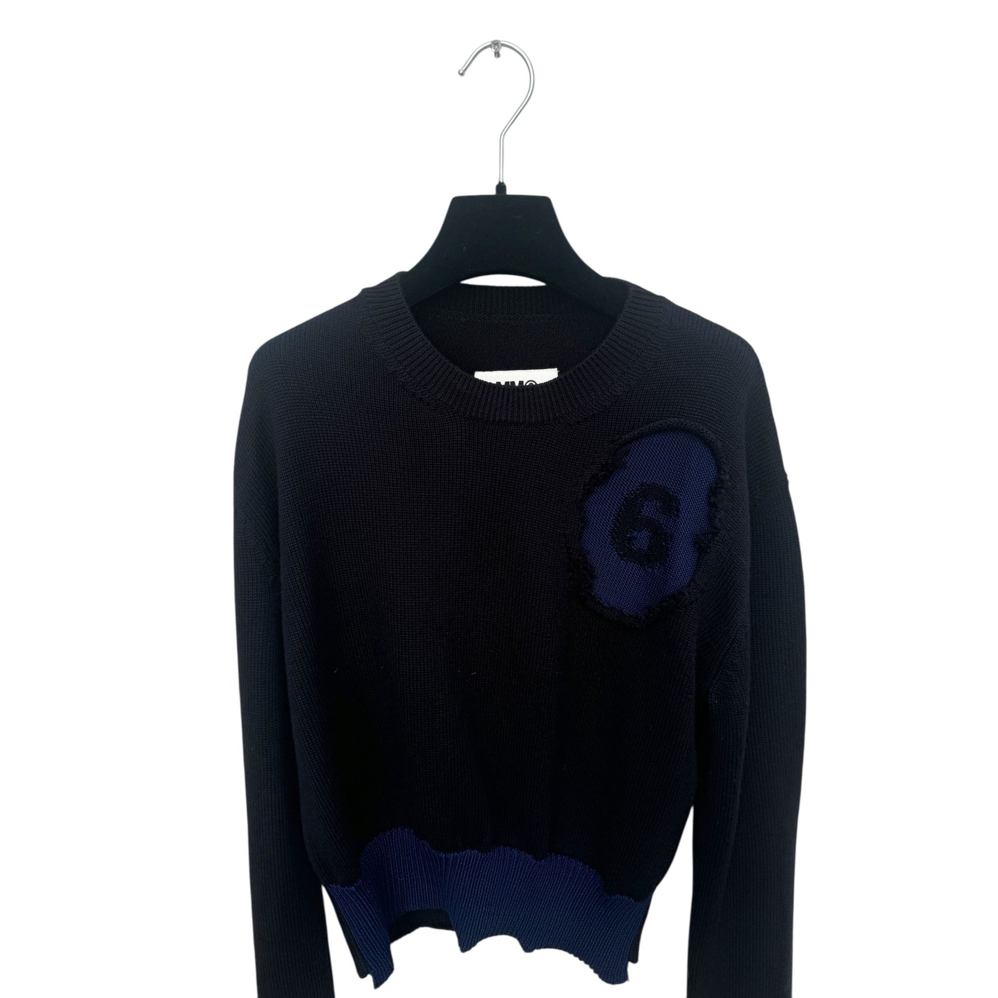 A contemporary piece from MM6 Maison Margiela, this navy sweater plays with deconstruction through raw-edged cut-outs revealing a contrasting blue layer beneath. Crafted in Italy from soft virgin wool with a hint of nylon, it delivers warmth with an avant-garde edge.