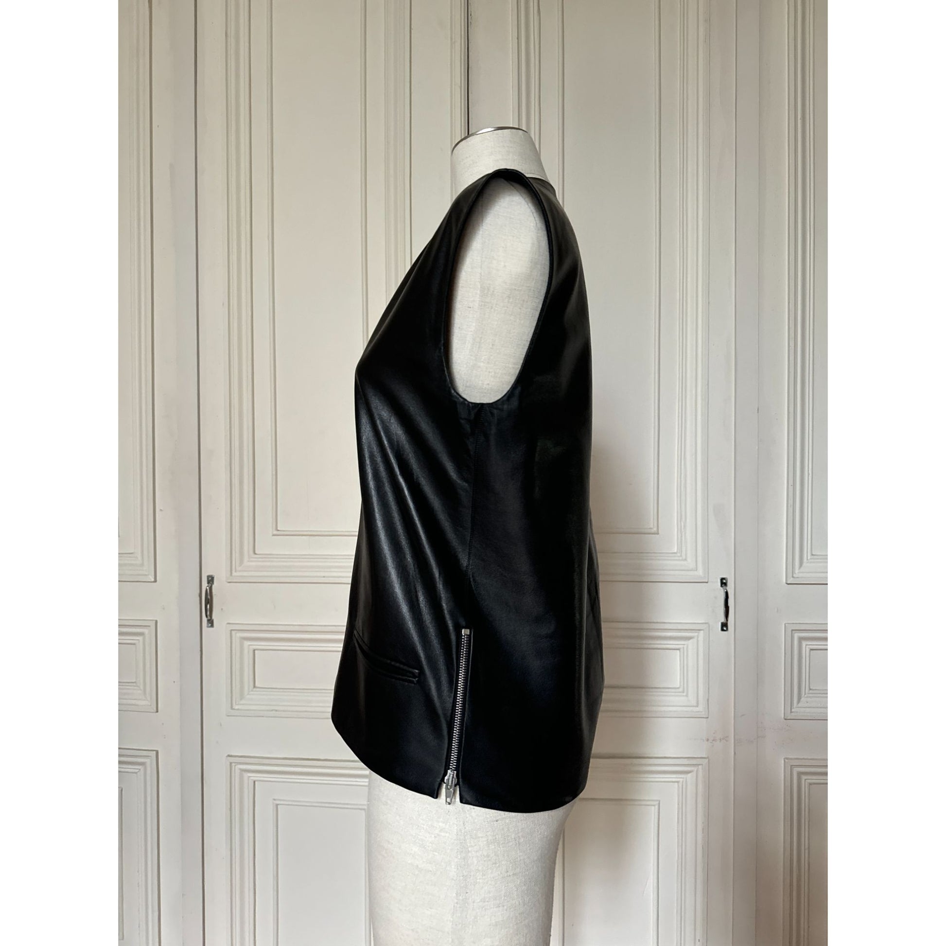 Refined Céline leather vest designed under Phoebe Philo, crafted in smooth black lambskin with a fluid, architectural drape.