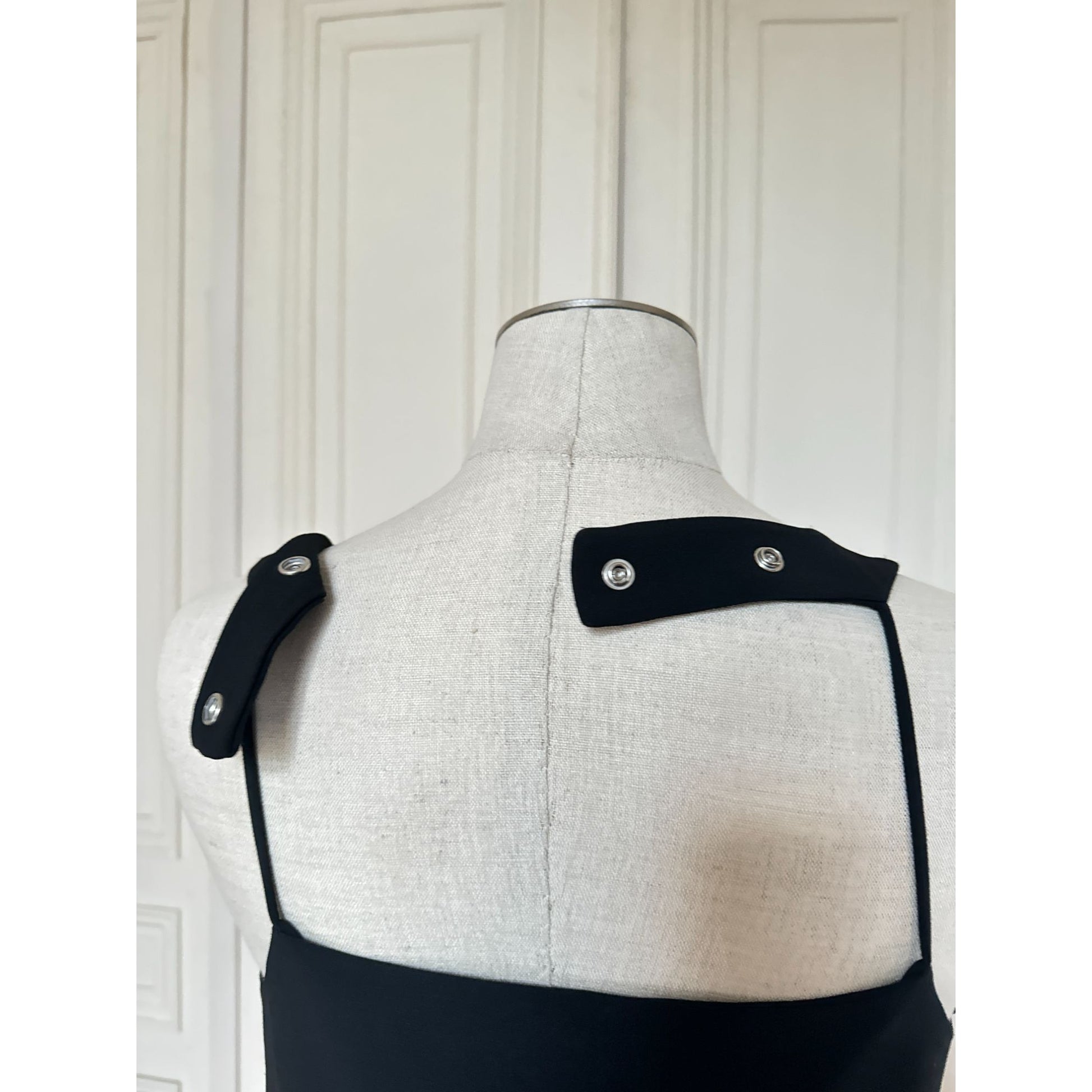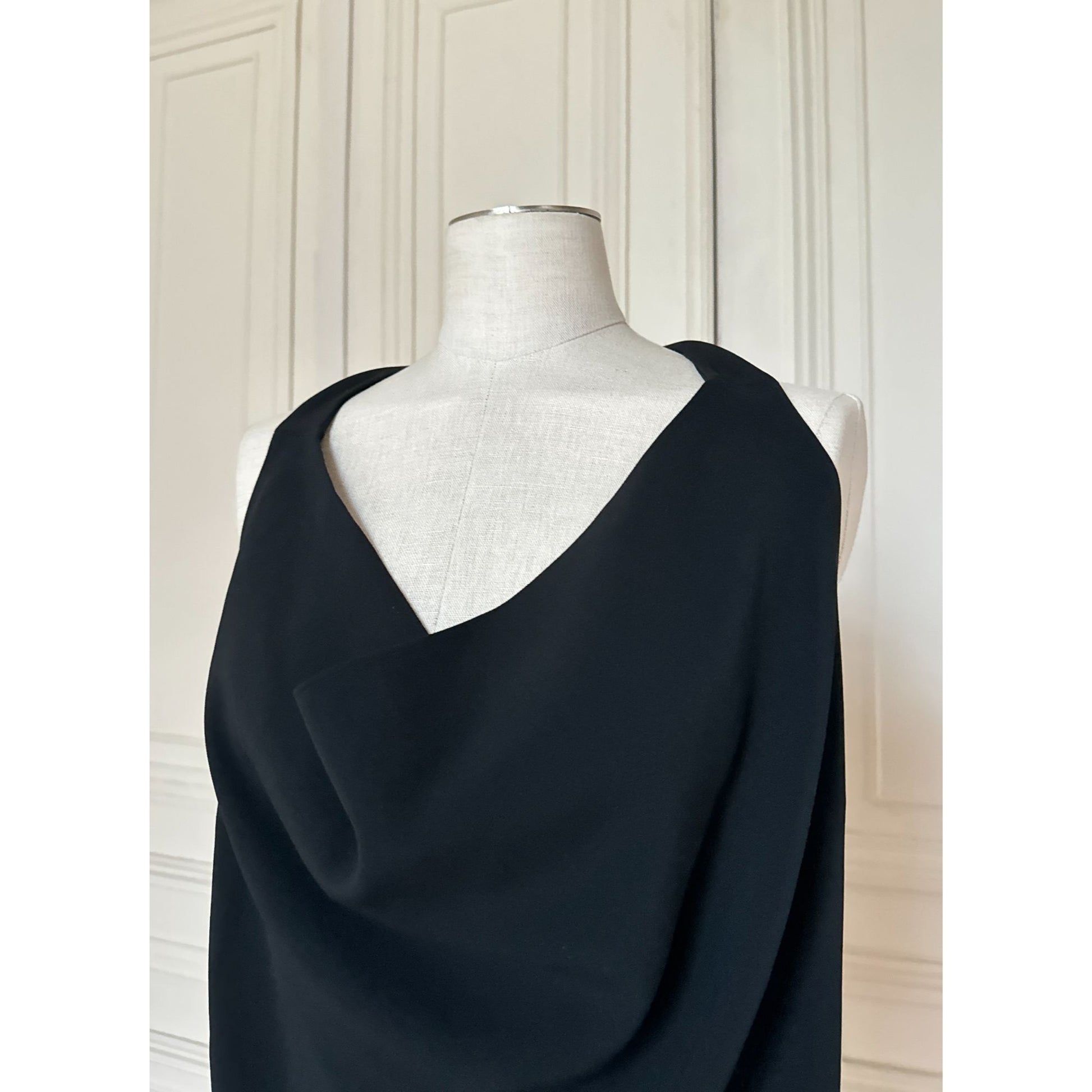 Crafted in a fluid black fabric, this piece features a softly draped V-neckline at the front, creating an elegant, sculptural fall that flatters the body without excess.