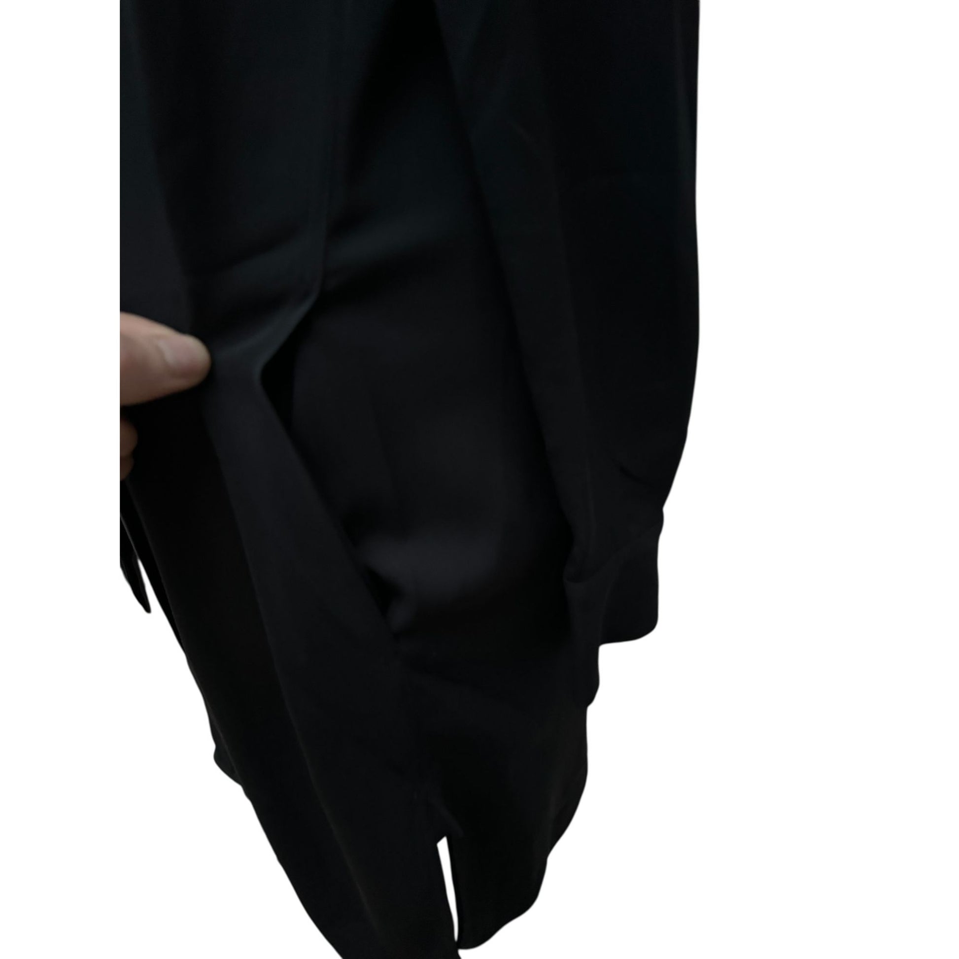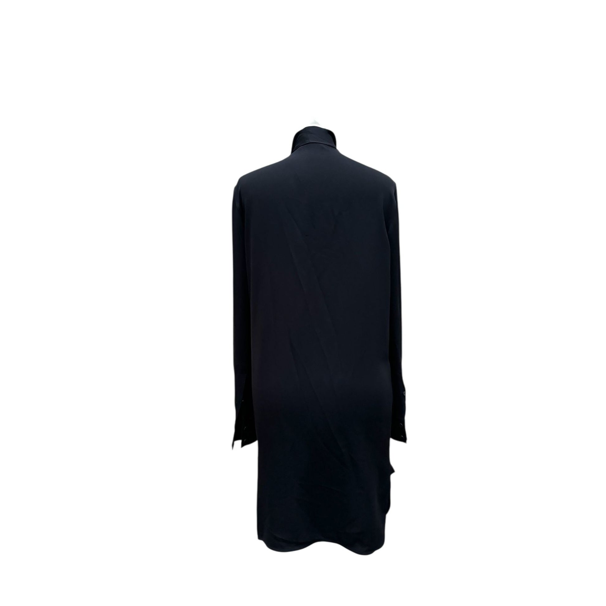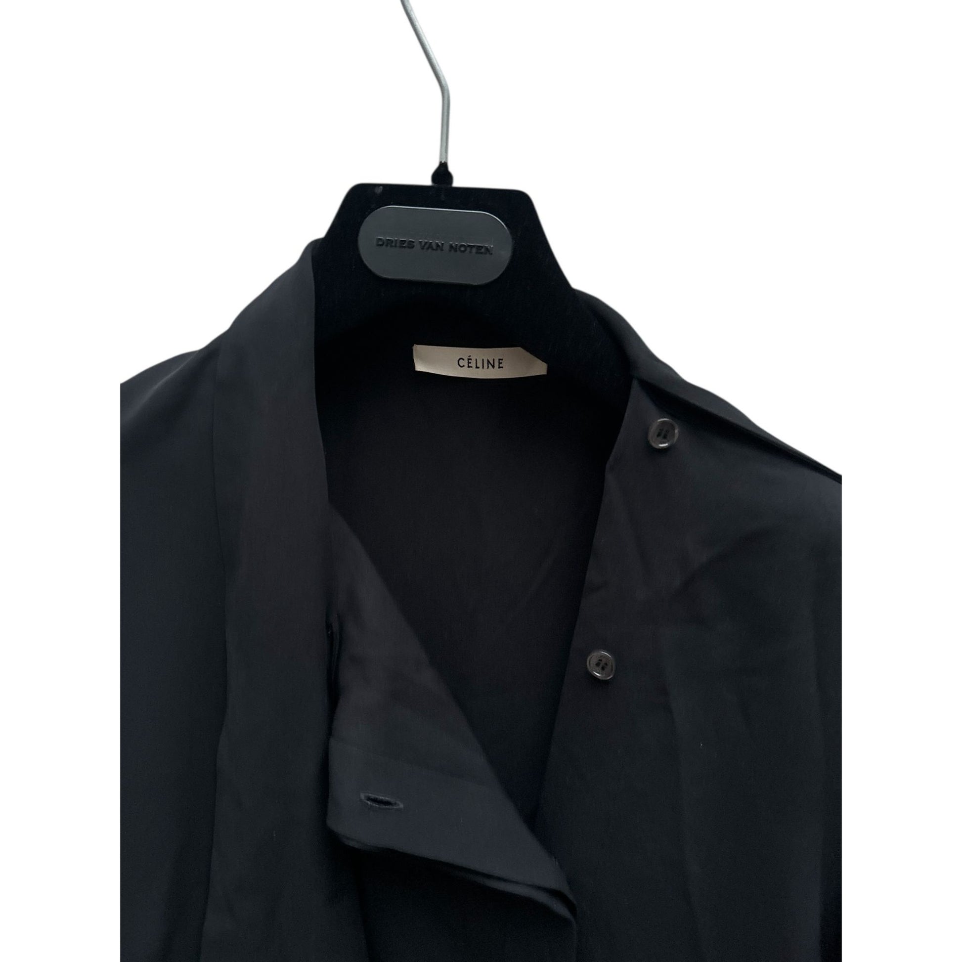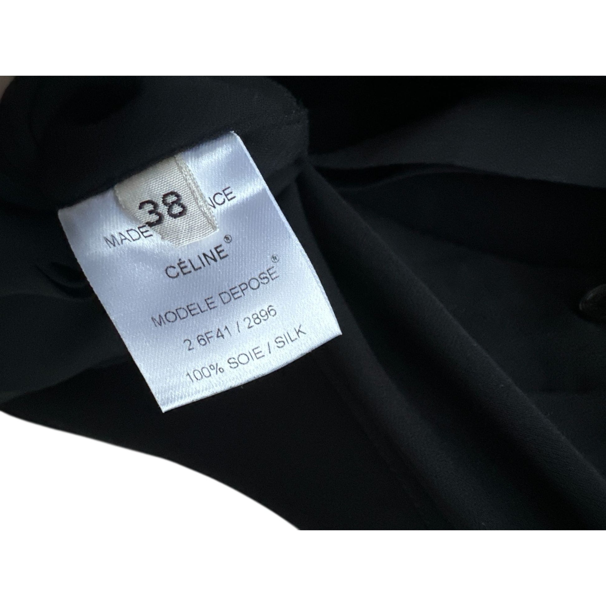 An iconic minimalist piece from Phoebe Philo’s revered tenure at Céline, this black silk dress embodies refined elegance. Crafted in France from fluid 100% silk, it features a built-in scarf neckline and an asymmetric front button closure that nods subtly to architectural tailoring. A modern classic that moves effortlessly from day to evening.