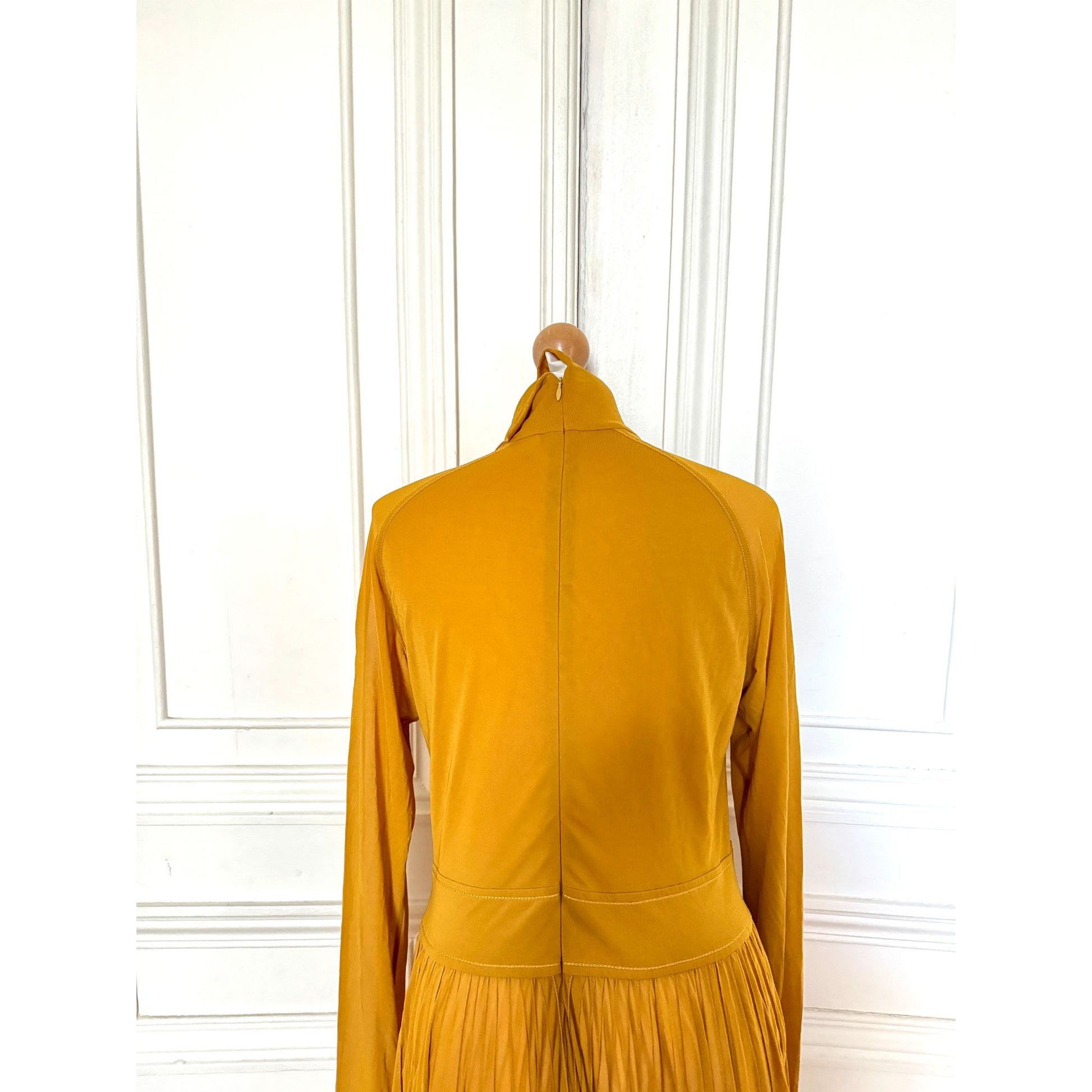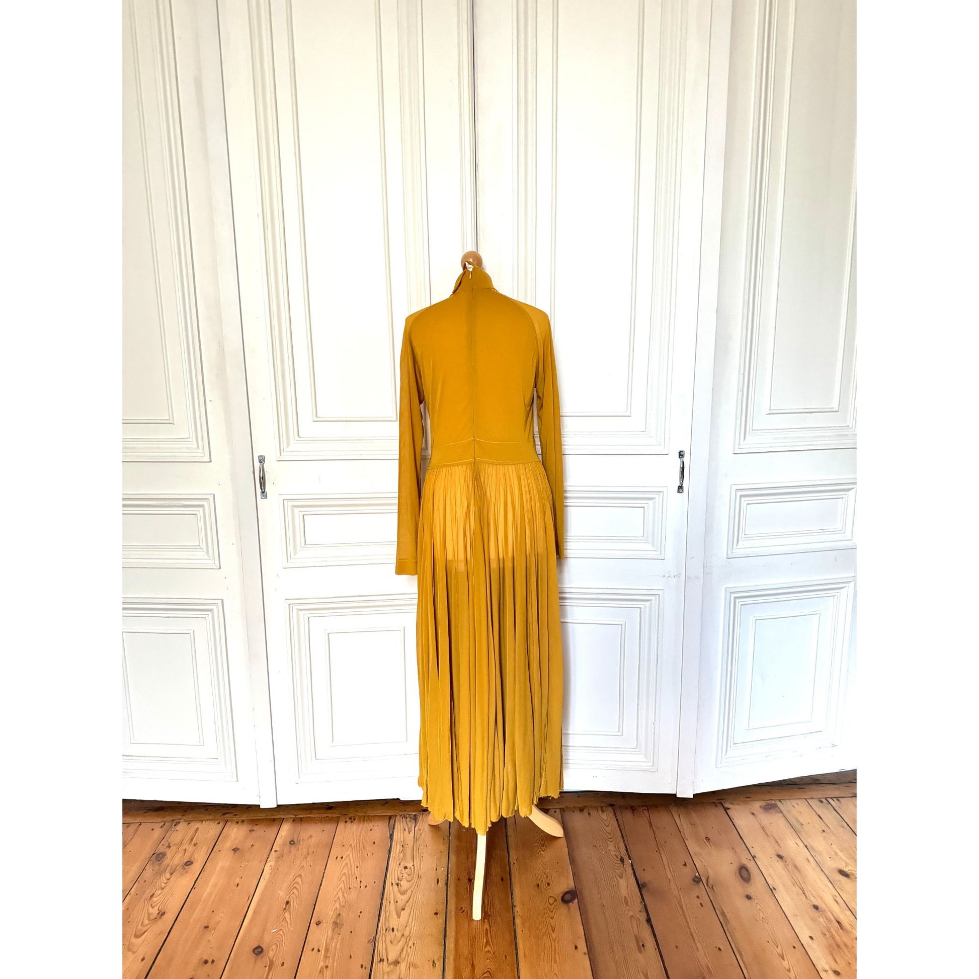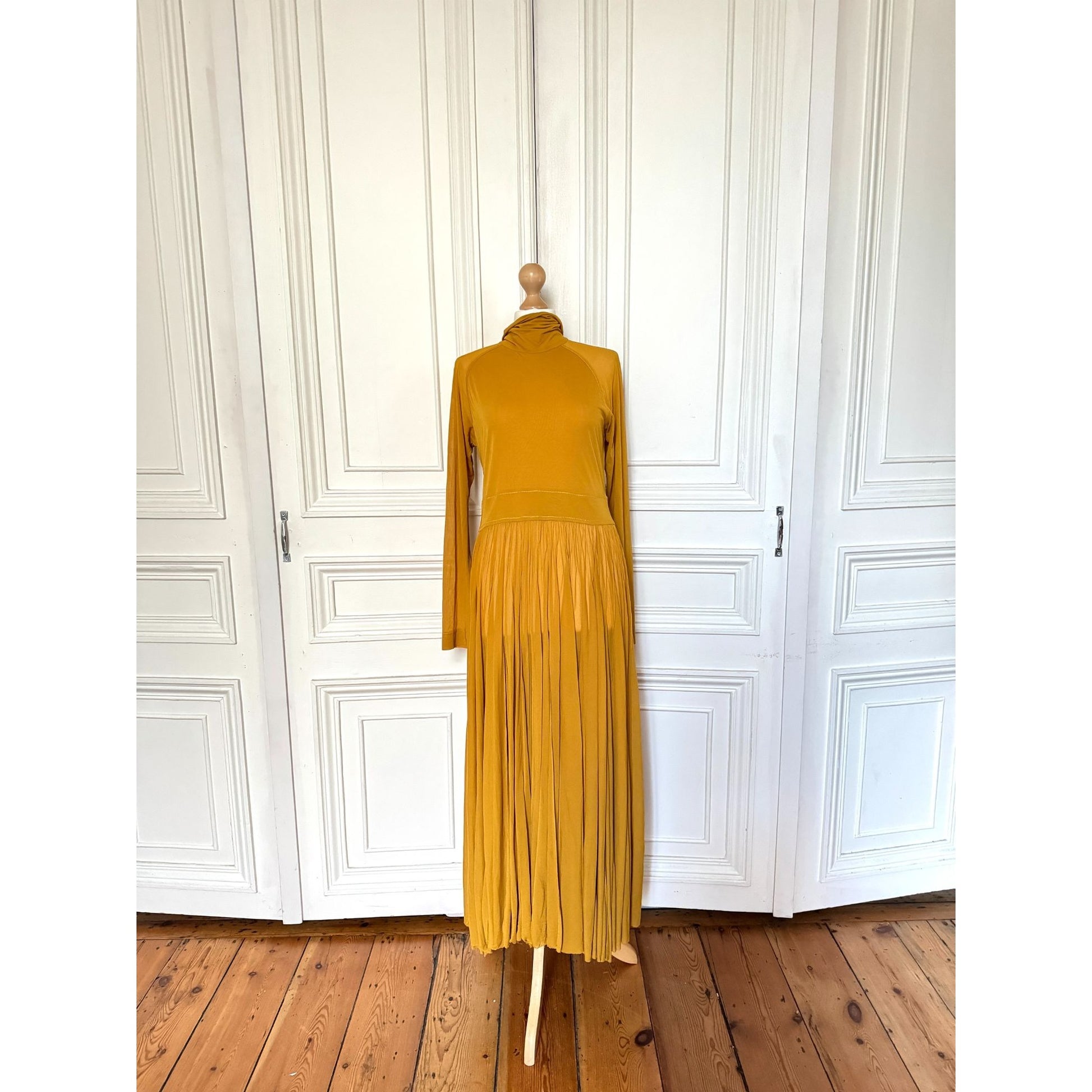 Phoebe Philo Yellow High-Neck Pleated Maxi Dress
