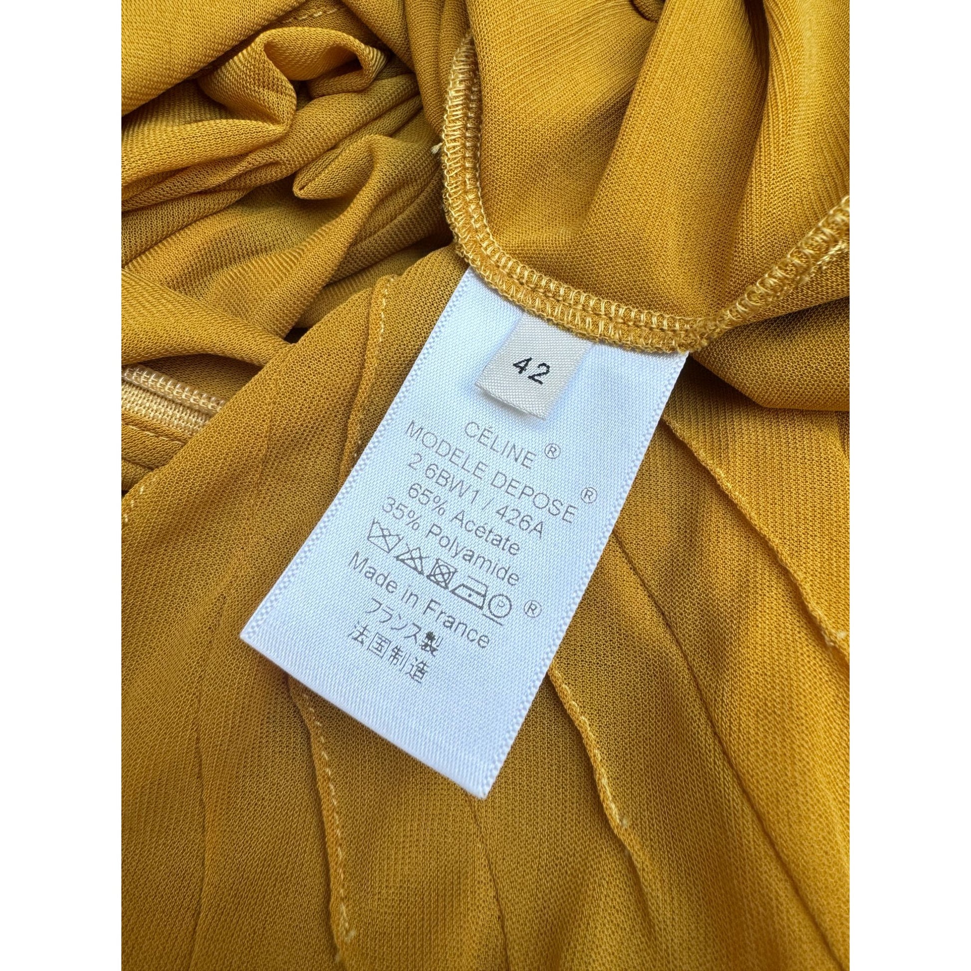 A rare piece from Phoebe Philo’s era at Céline, this striking yellow dress is a true collector’s item. Designed in a radiant mustard-yellow tone, the dress features a soft stretch fabric blend of 65% acetate and 35% nylon, offering both structure and comfort.