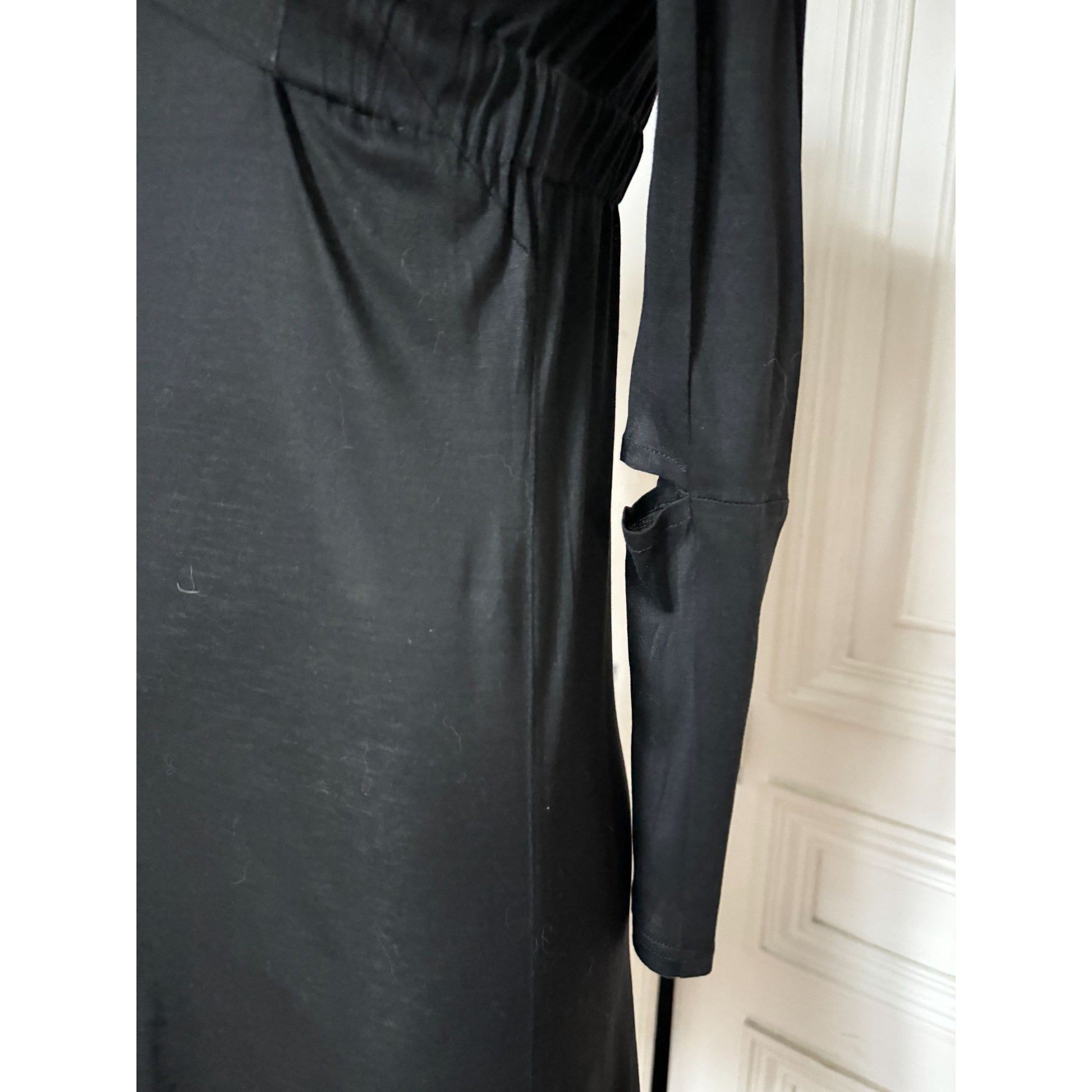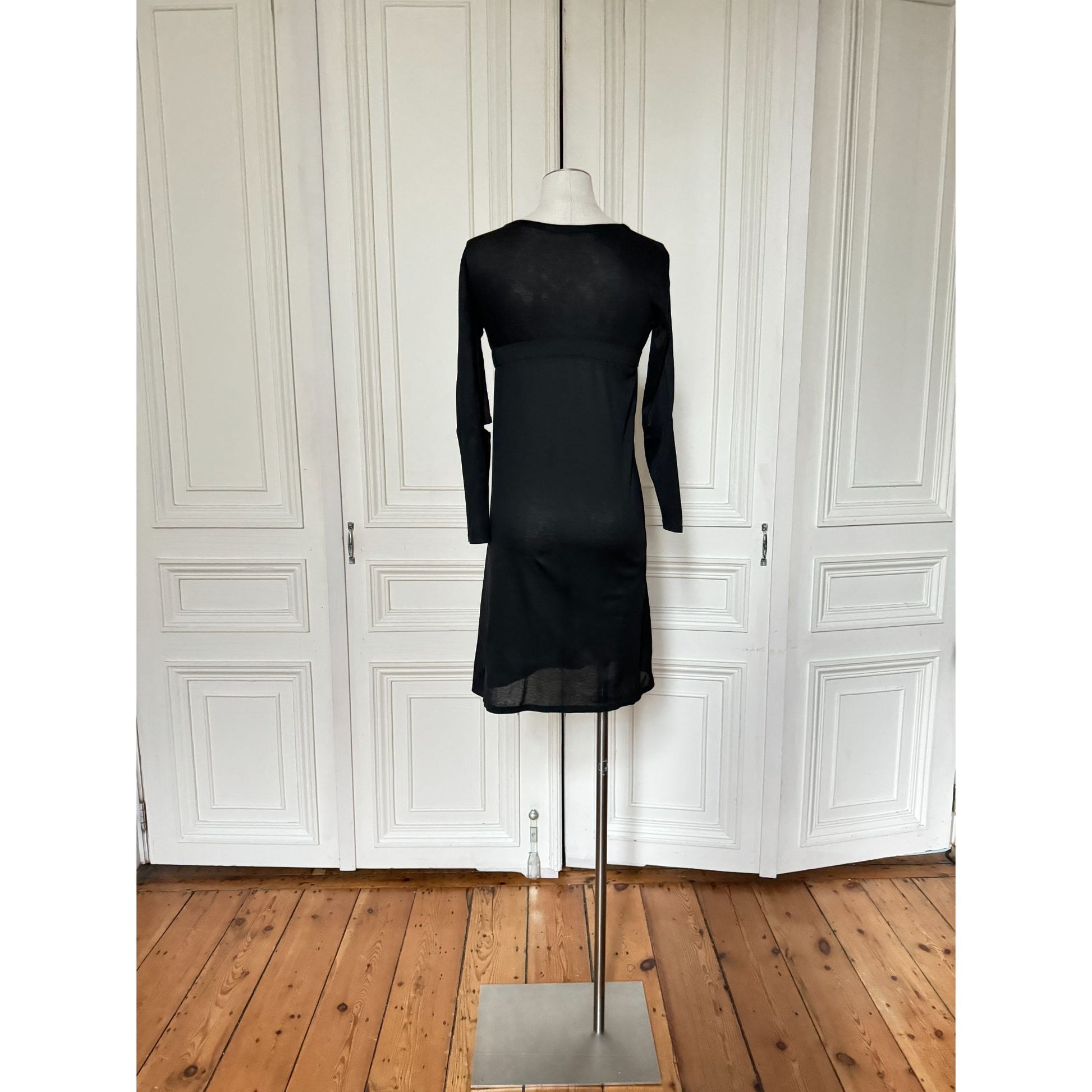 Long sleeves with open cut-out detailing reinforce the architectural character of the piece, introducing an unexpected break in the line and elevating the dress beyond classic minimalism. Both sensual and cerebral, this is a highly collectible example of late-1990s Helmut Lang, where reduction and experimentation meet with exceptional precision.