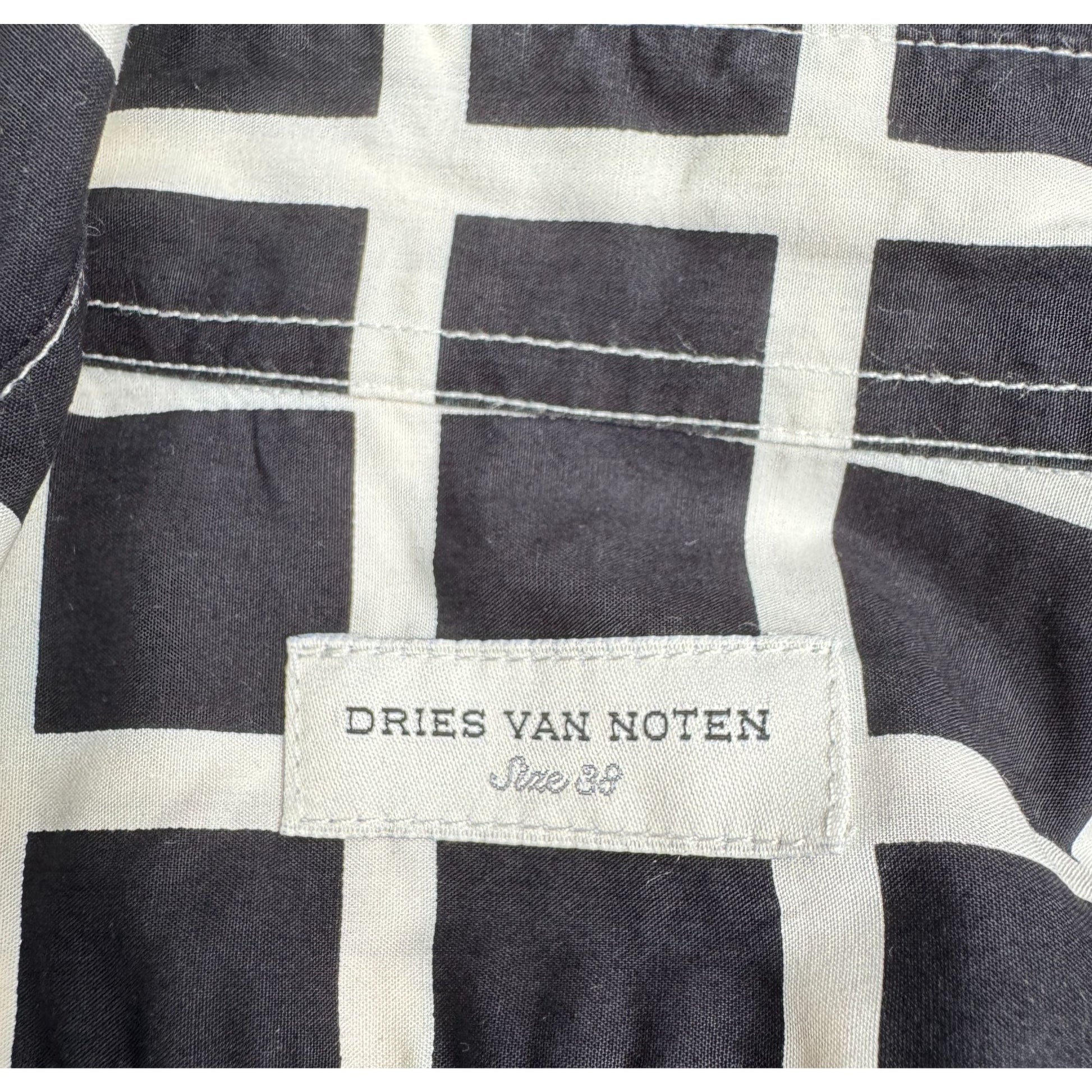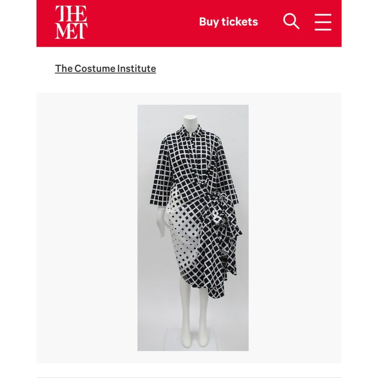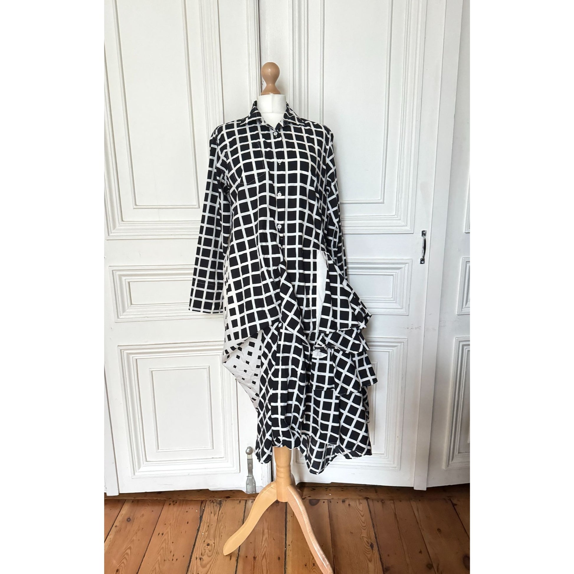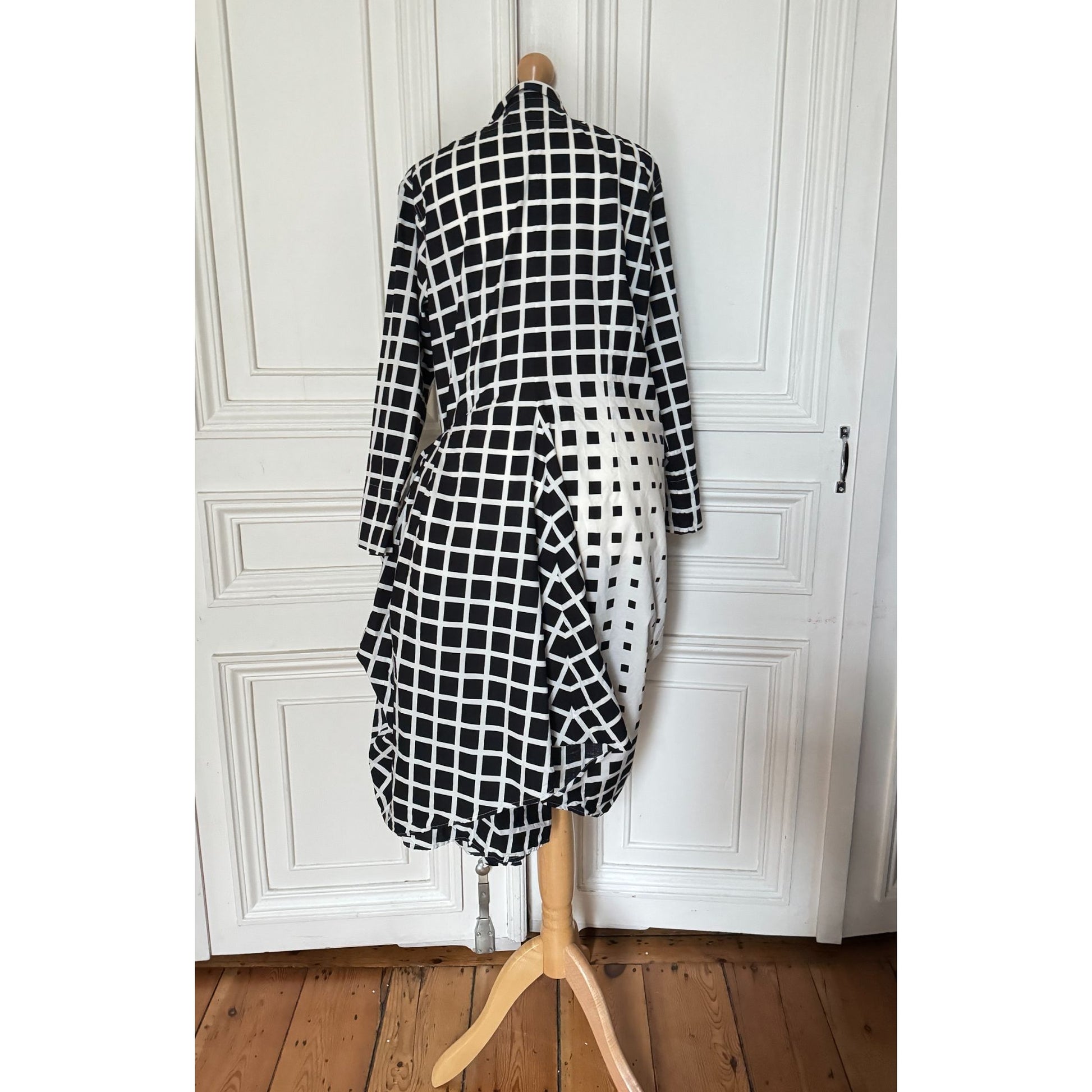 A rare archival piece from Dries Van Noten’s acclaimed spring summer 2009 collection, this dress is a masterclass in architectural draping and print manipulation. Crafted from a crisp black-and-white cotton poplin, the garment features a dynamic grid motif that plays with visual depth and proportion. The sharp geometric print contrasts beautifully with the fluid, asymmetrical silhouette.