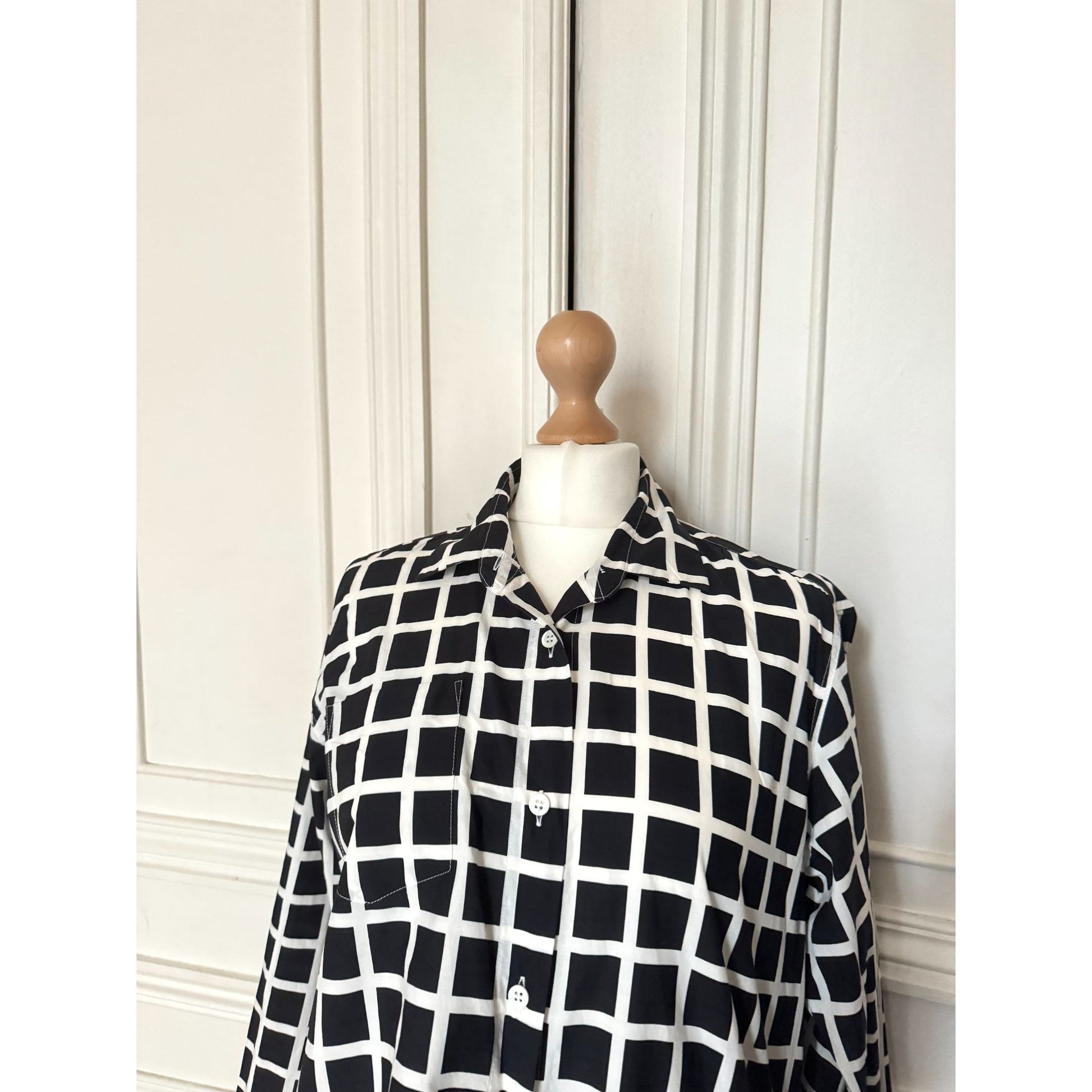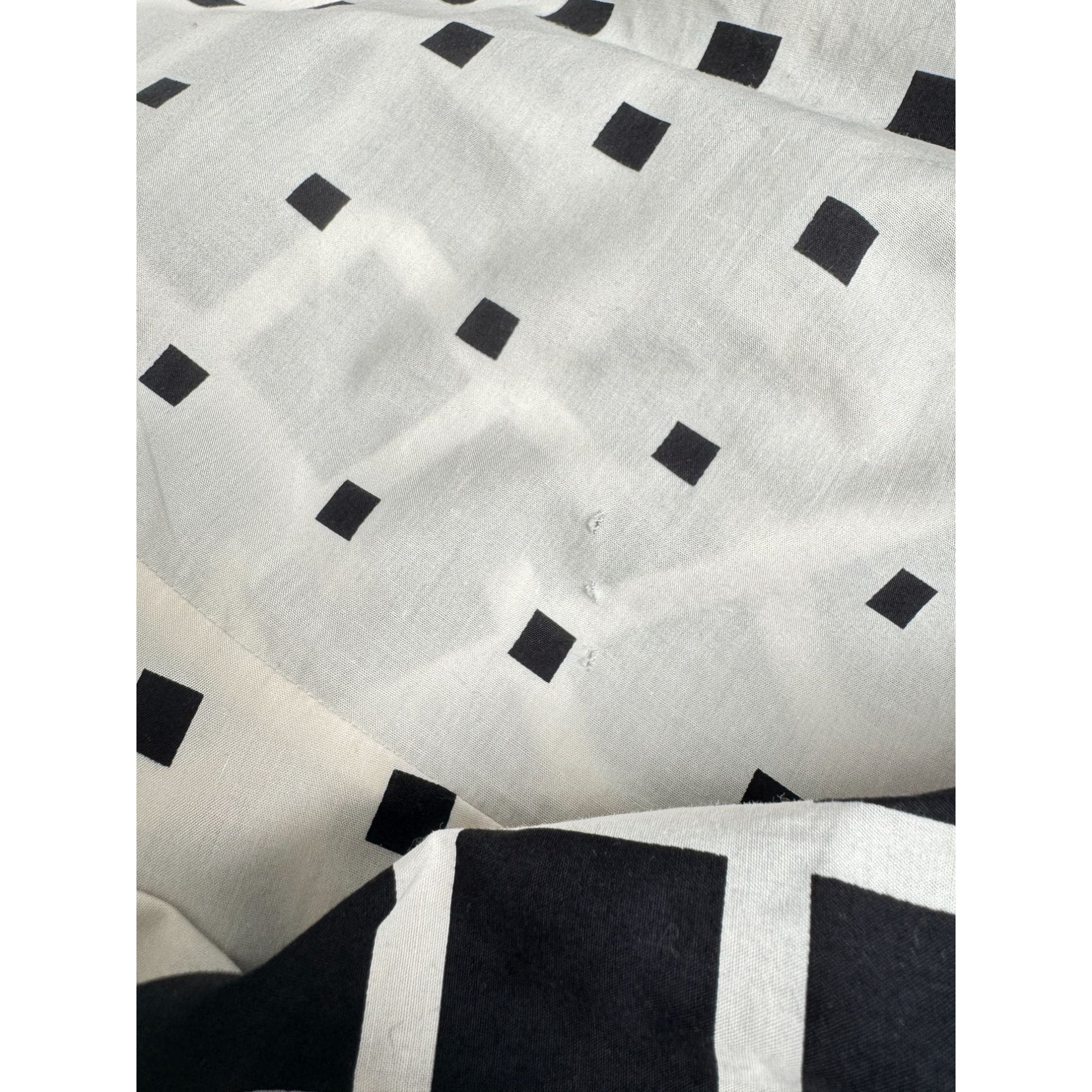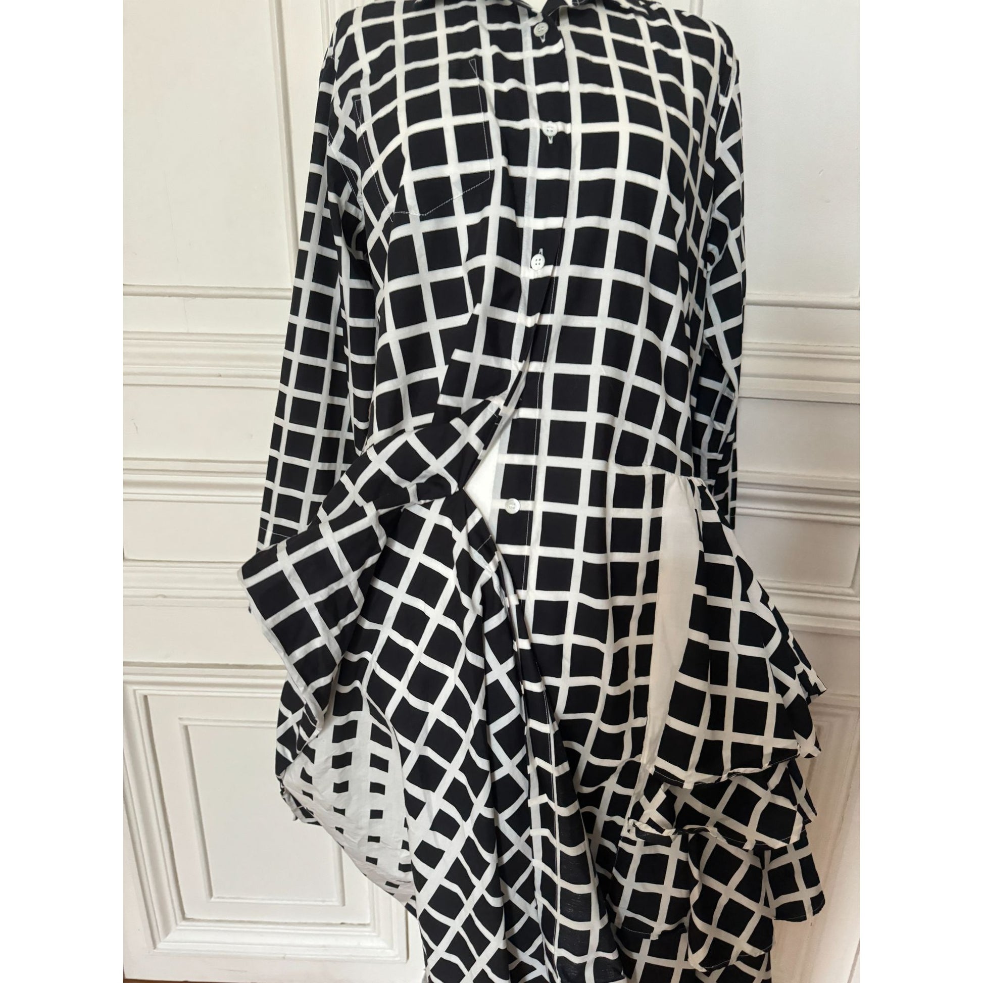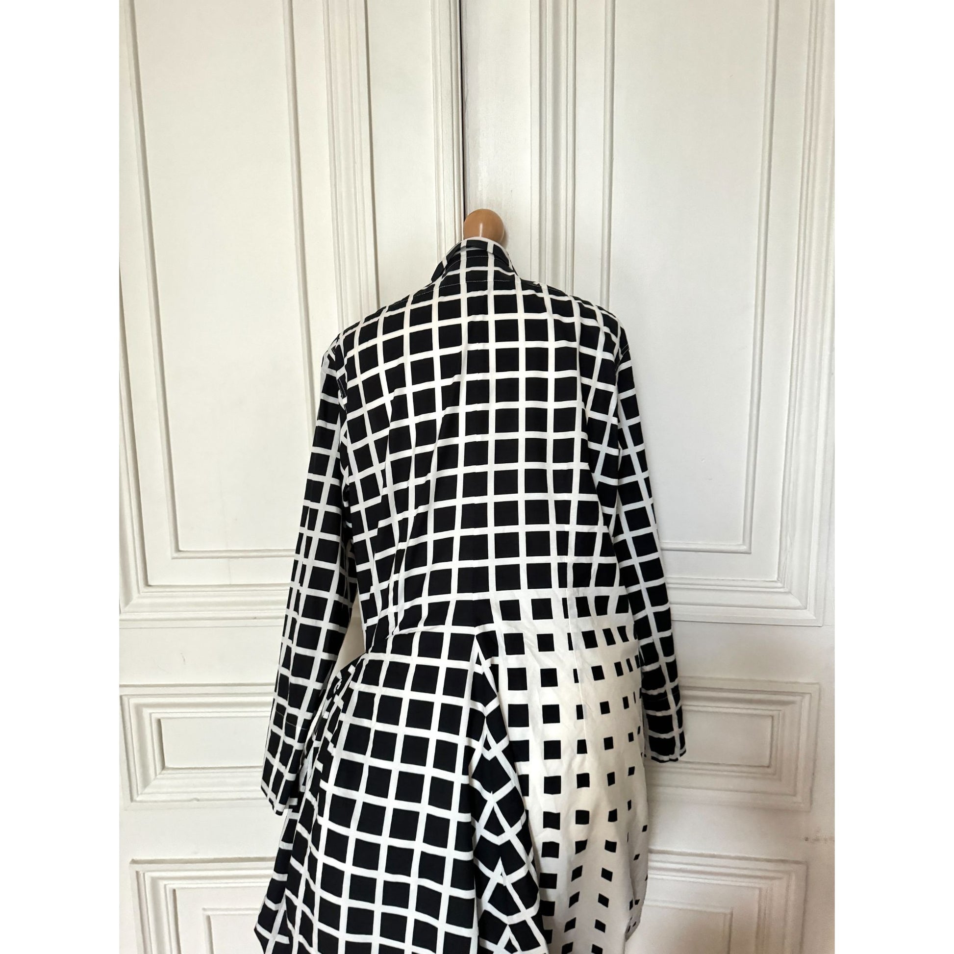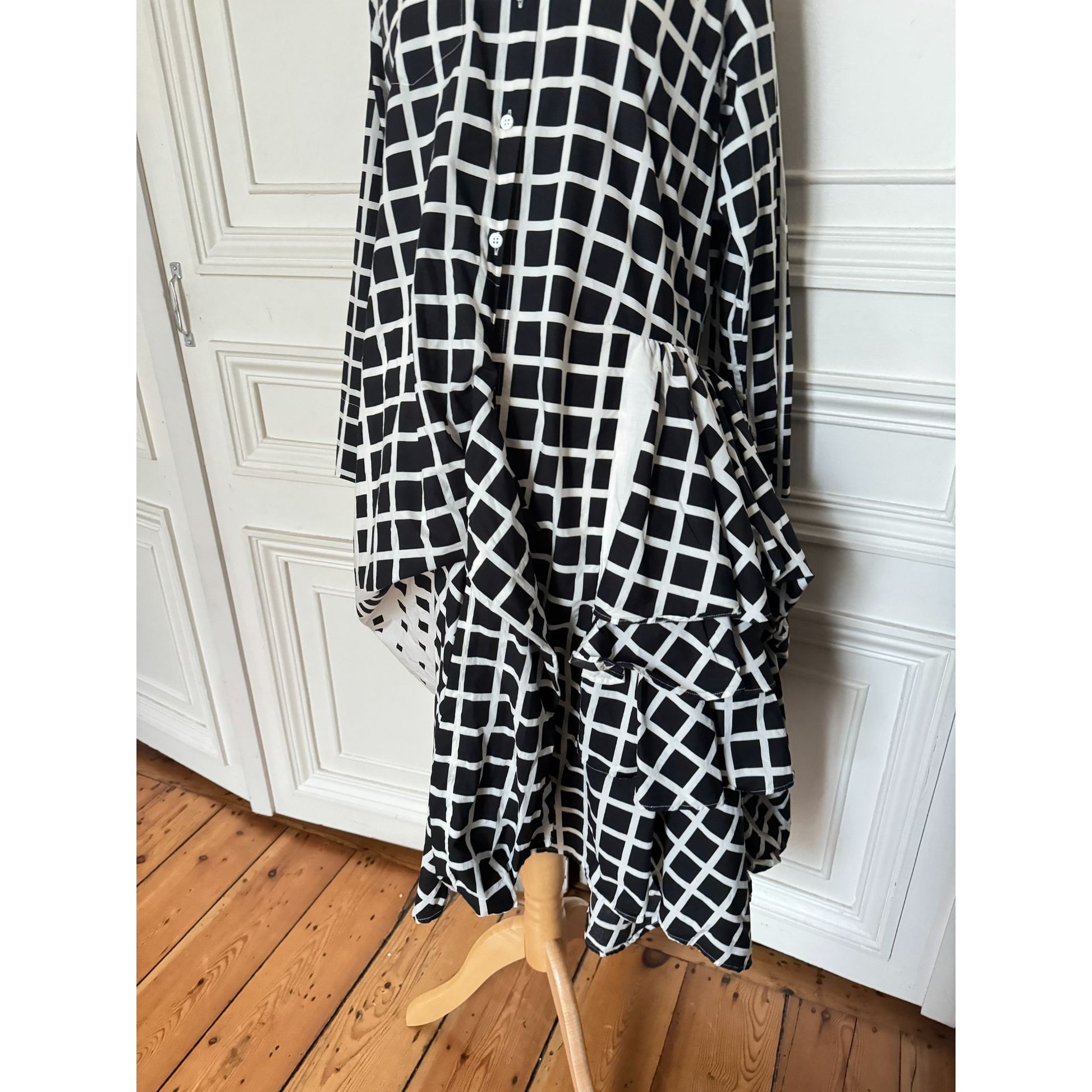 A rare archival piece from Dries Van Noten’s acclaimed spring summer 2009 collection, this dress is a masterclass in architectural draping and print manipulation. Crafted from a crisp black-and-white cotton poplin, the garment features a dynamic grid motif that plays with visual depth and proportion. The sharp geometric print contrasts beautifully with the fluid, asymmetrical silhouette.