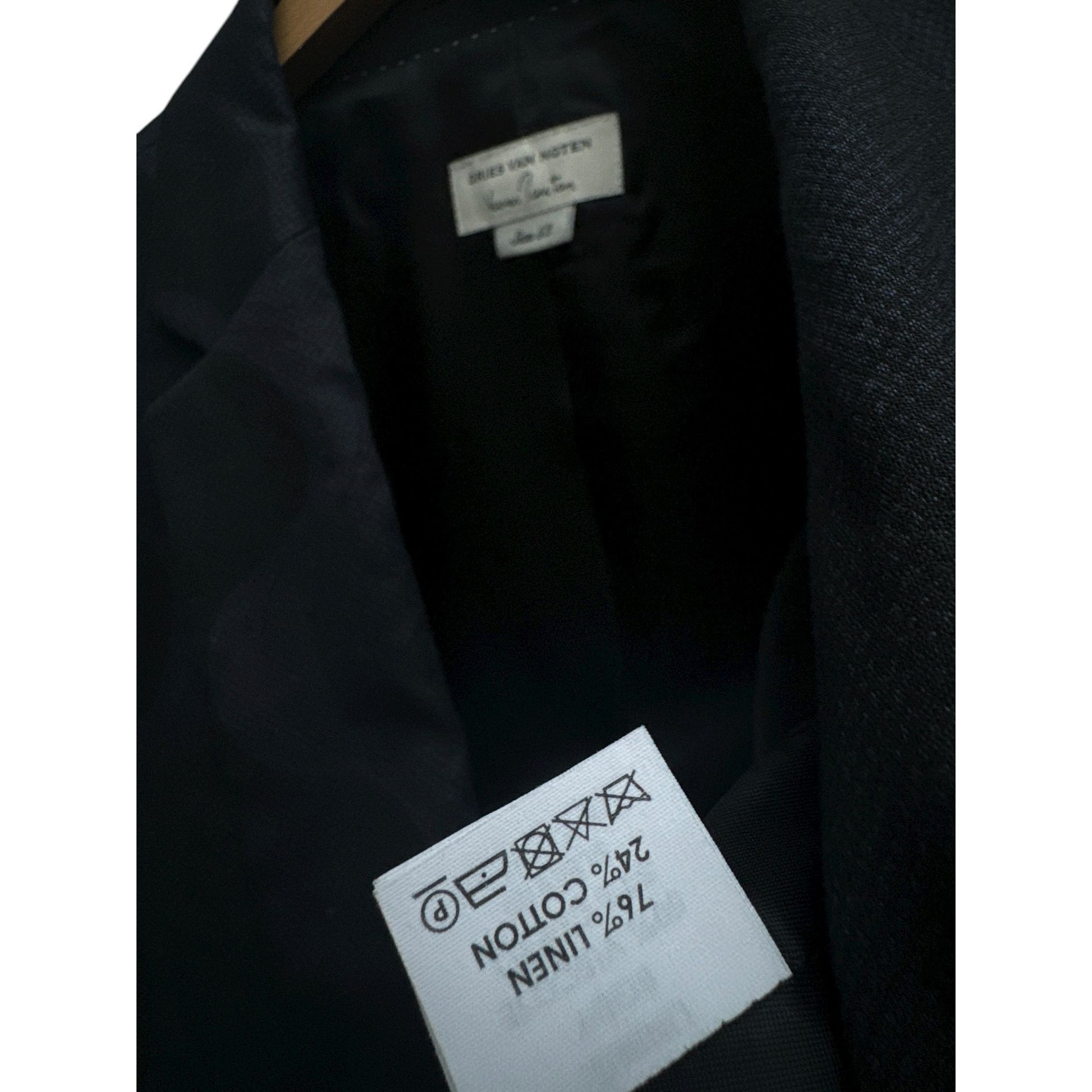This blazer features Panton’s iconic “Waves” motif, woven in deep navy tones that shift subtly under light, blending DVN’s refined tailoring with Panton’s bold graphic language. It is cut from a linen-cotton blend (76% linen, 24% cotton), making it both lightweight and breathable — ideal for spring and summer wear.