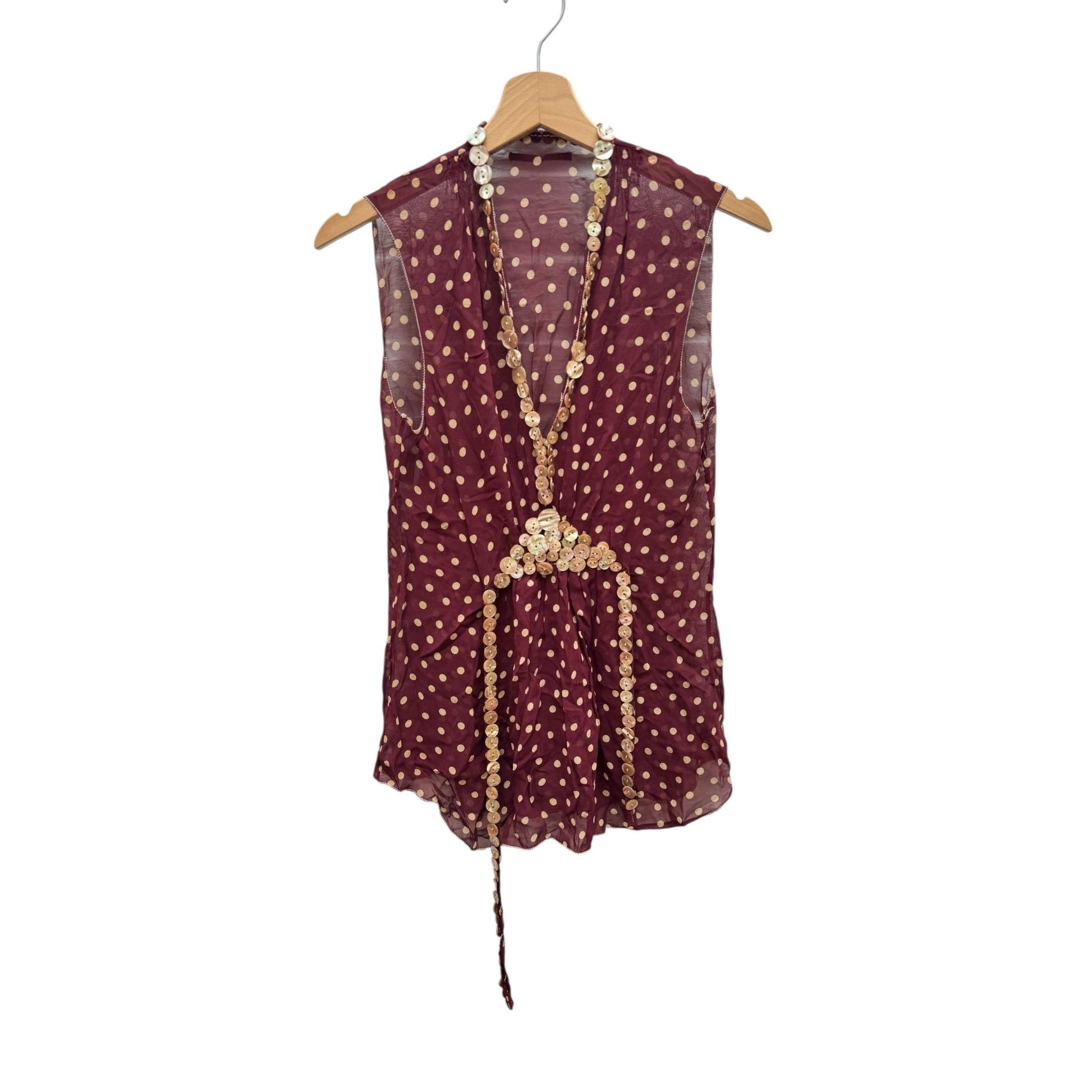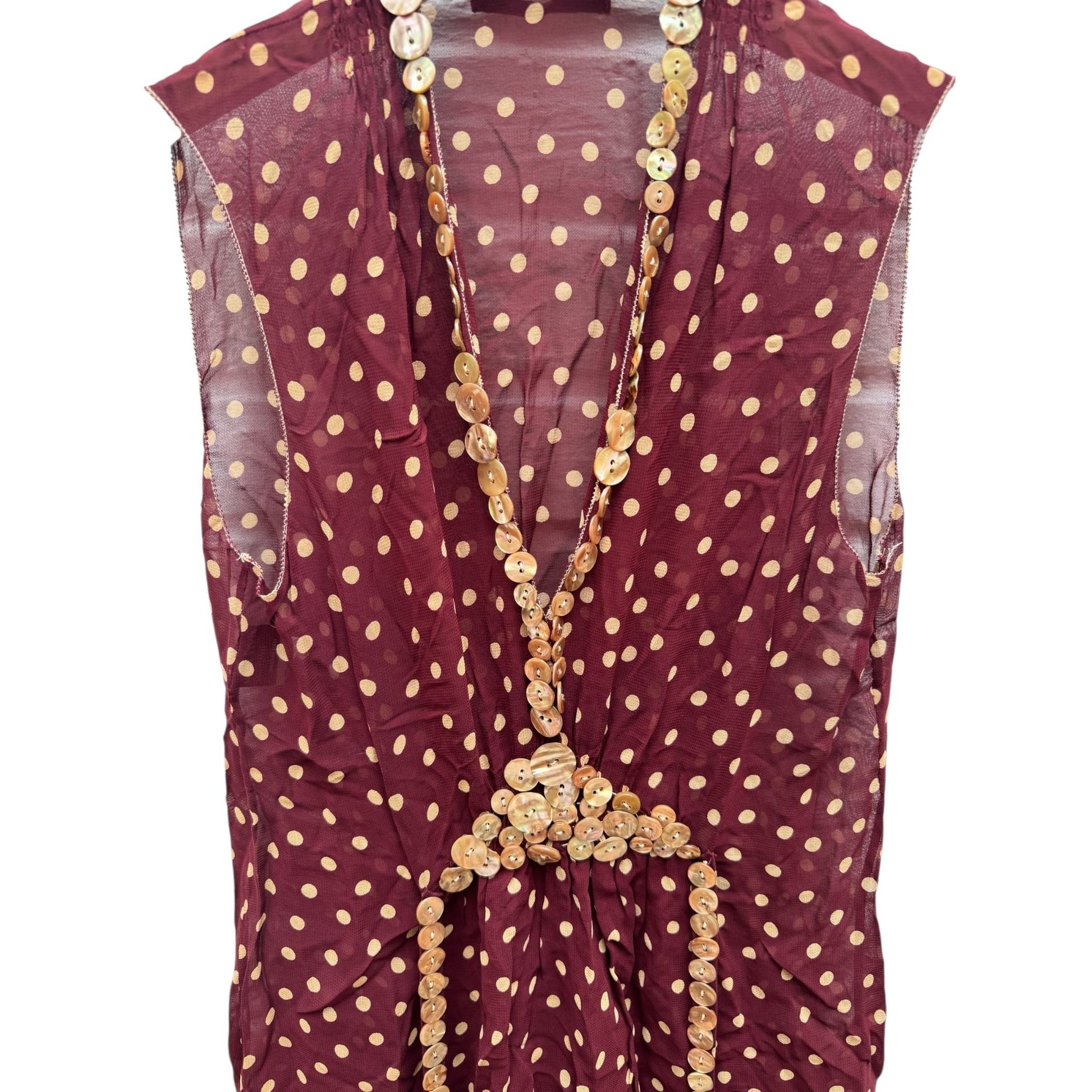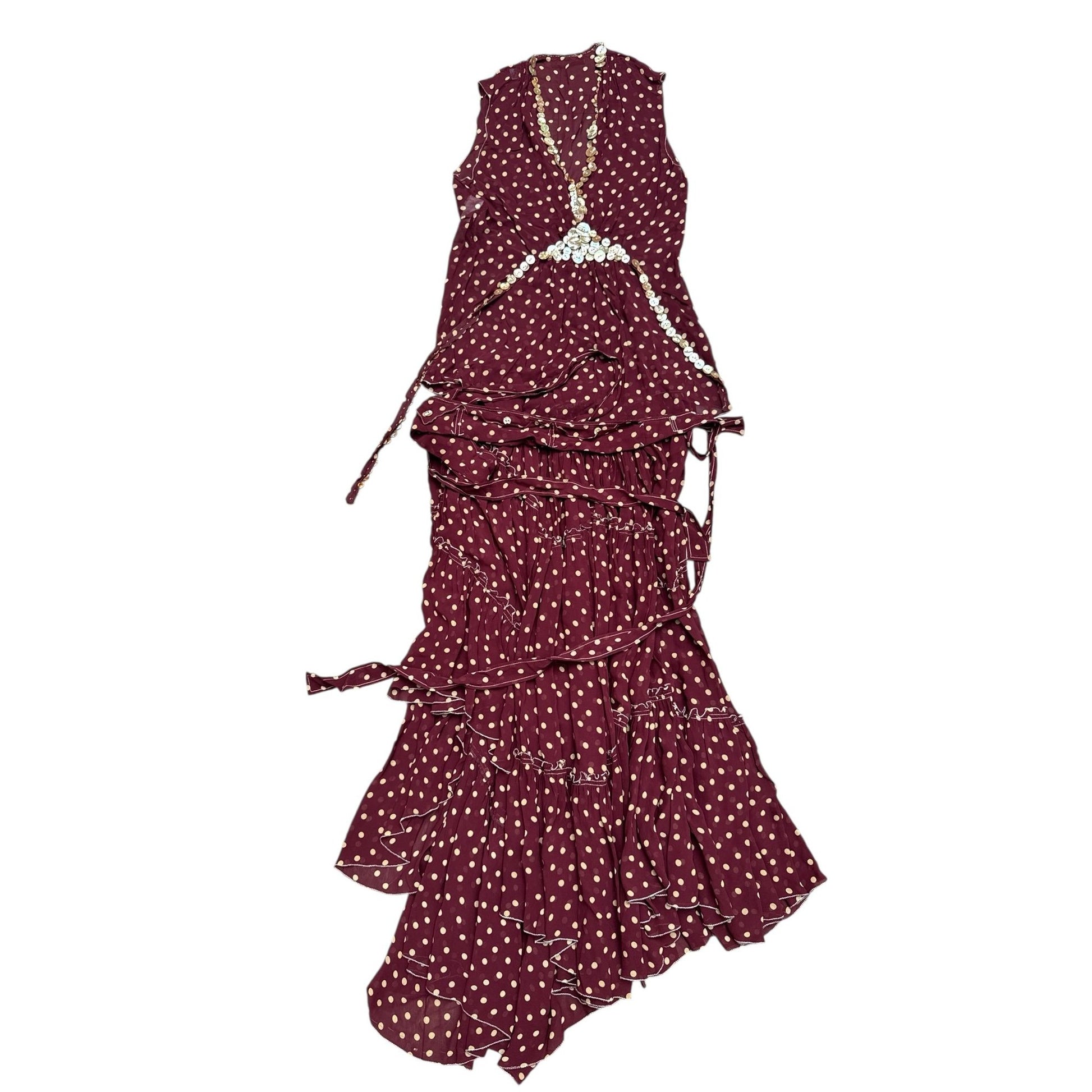 SS 2003 Burgundy Polka Dot Three-Piece Set with Button Detailing