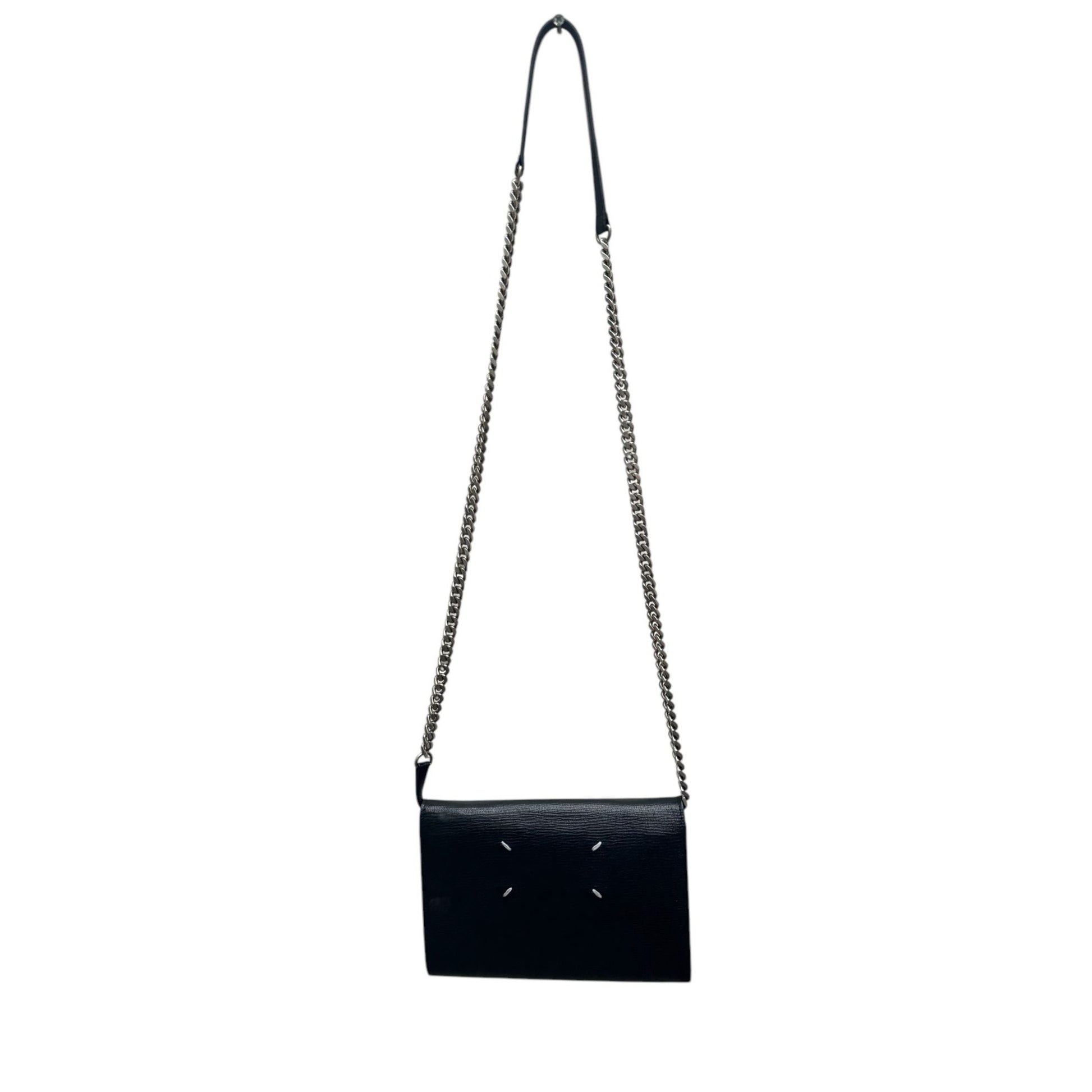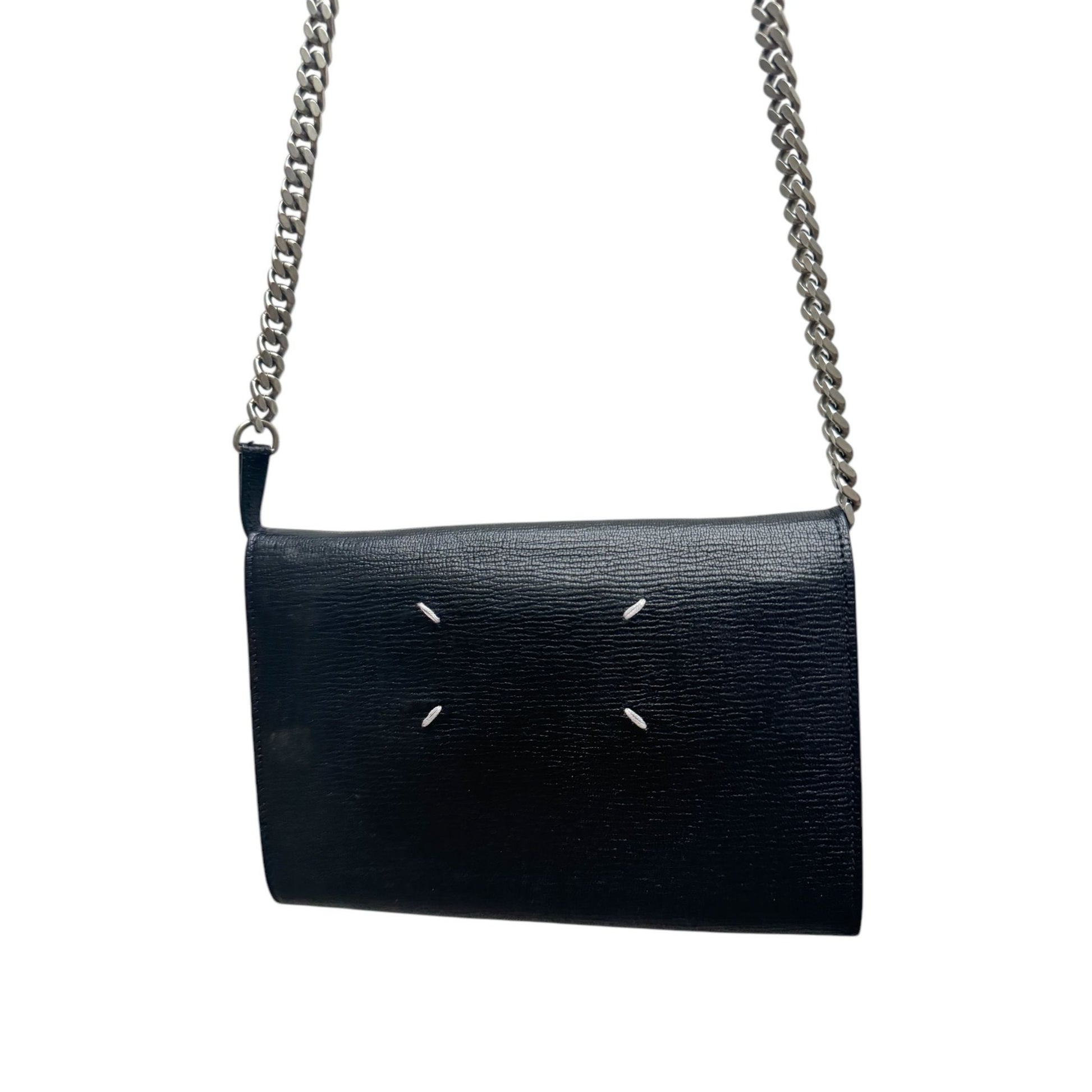 From Spring/Summer 2017, this Maison Margiela bag is crafted from textured black leather and features the house’s iconic four white stitches on the back. A modern, architectural silhouette meets smart functionality with multiple compartments and sleek detailing.