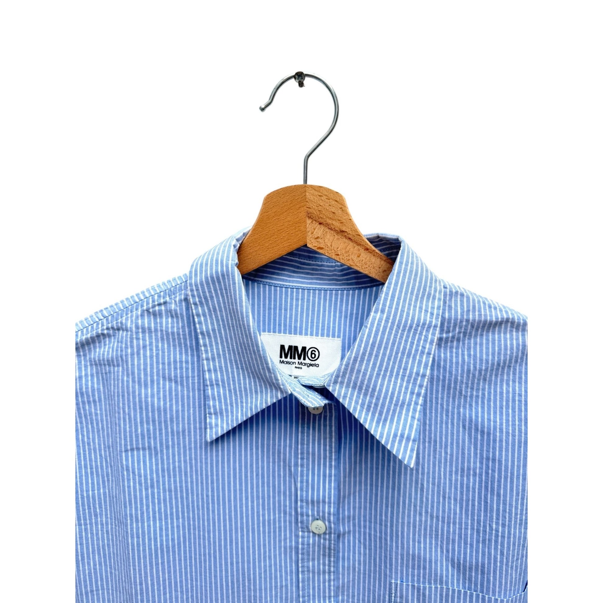 A standout piece from Maison Margiela’s Spring/Summer 2019 collection, this sculptural blue and white striped shirt transforms a wardrobe staple into wearable art. The bold circular silhouette makes this top a true conversation piece, offering a play on proportions and the illusion of volume.