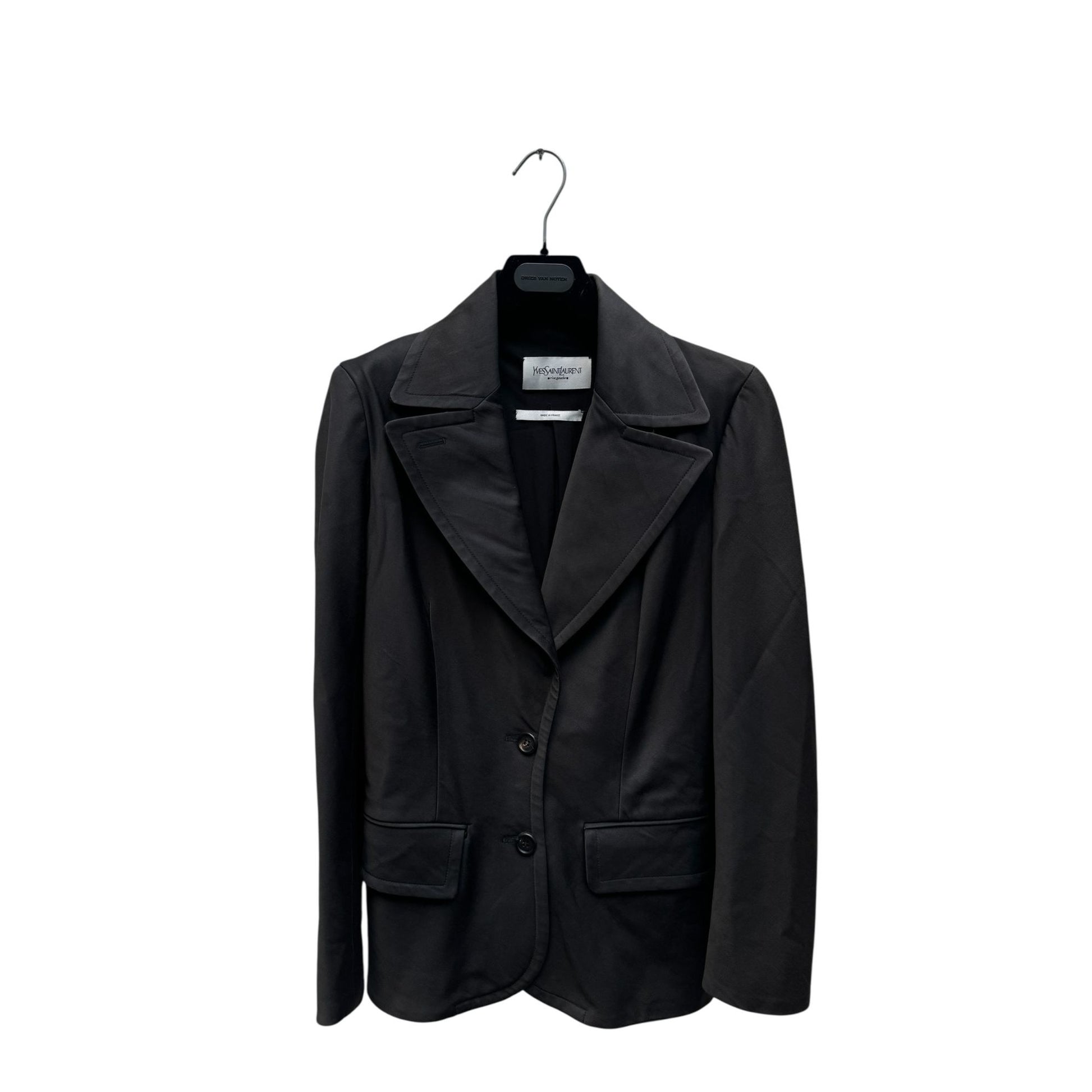 The sleeves have been shortened by a previous owner, though they can be let out up to 5cm if desired. The blazer is fully lined and finished with an elegant tonal YSL monogram embroidery on the interior, a discreet signature of the maison’s enduring prestige.