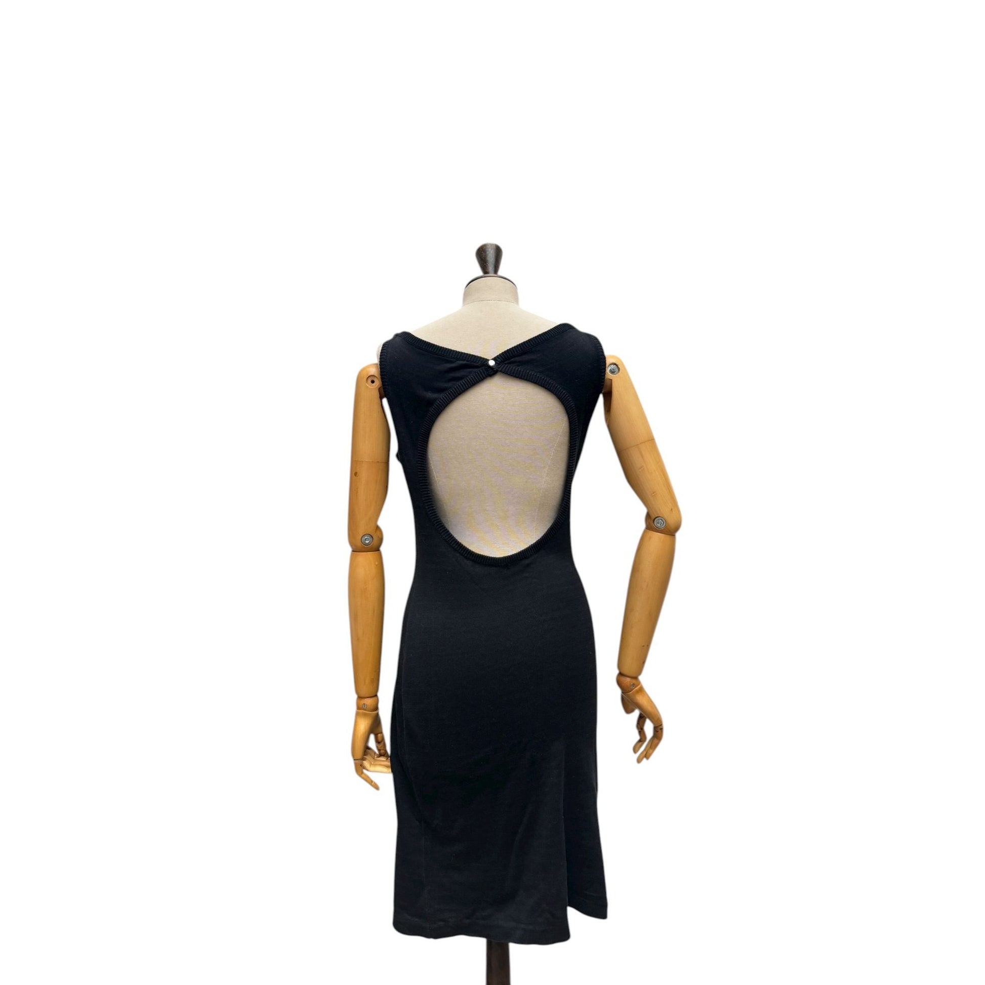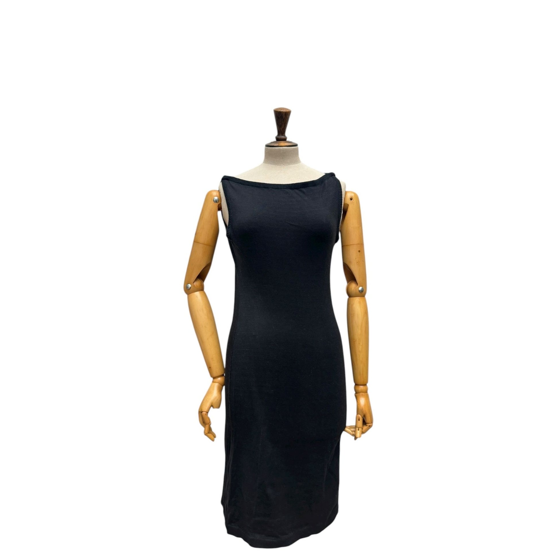 A quintessential Azzedine Alaïa creation, this sleek black knit dress embodies the designer’s mastery of sculptural femininity and form. Crafted in France from a stretch cotton-elastane blend, it molds naturally to the body, celebrating movement and silhouette — hallmarks of Alaïa’s enduring design language.