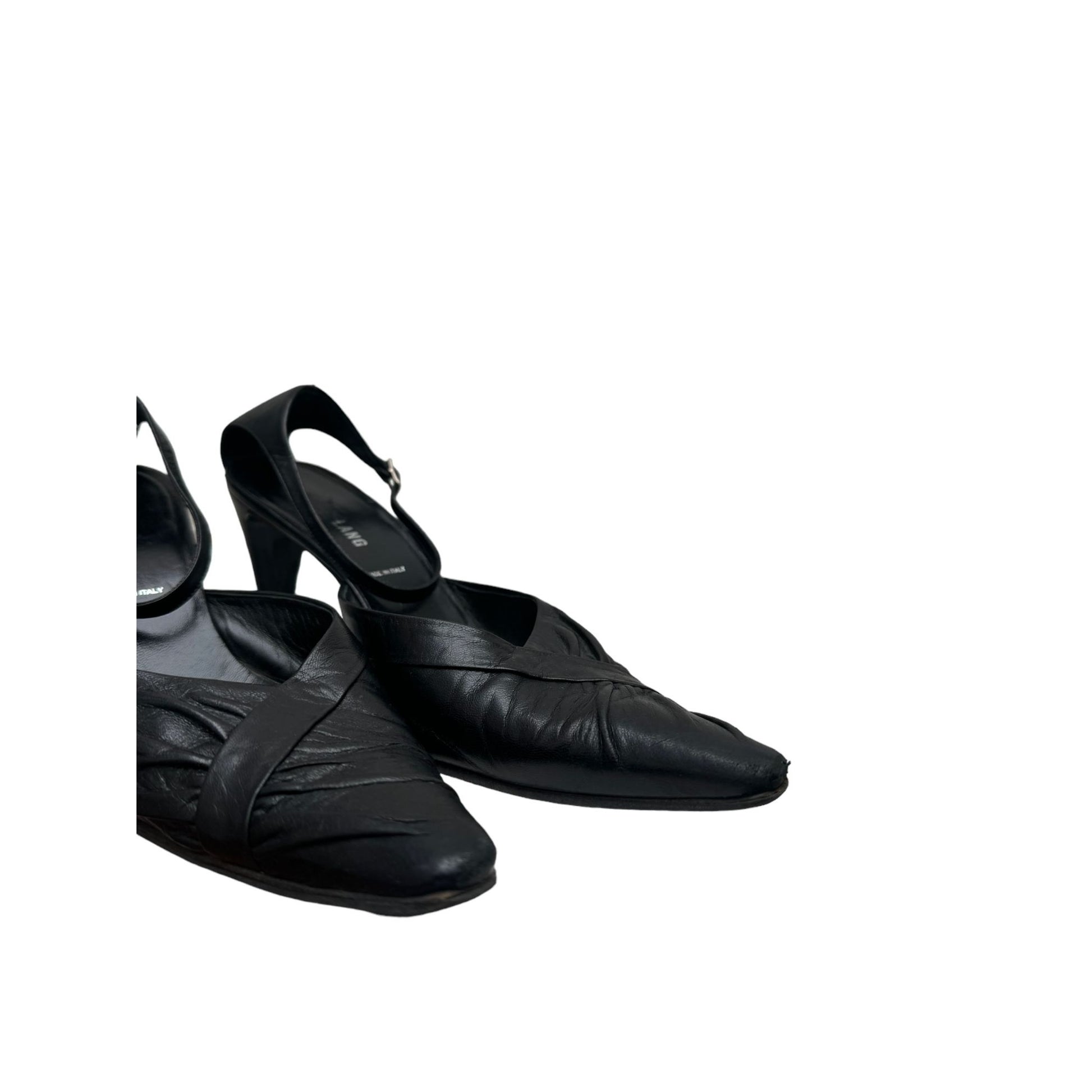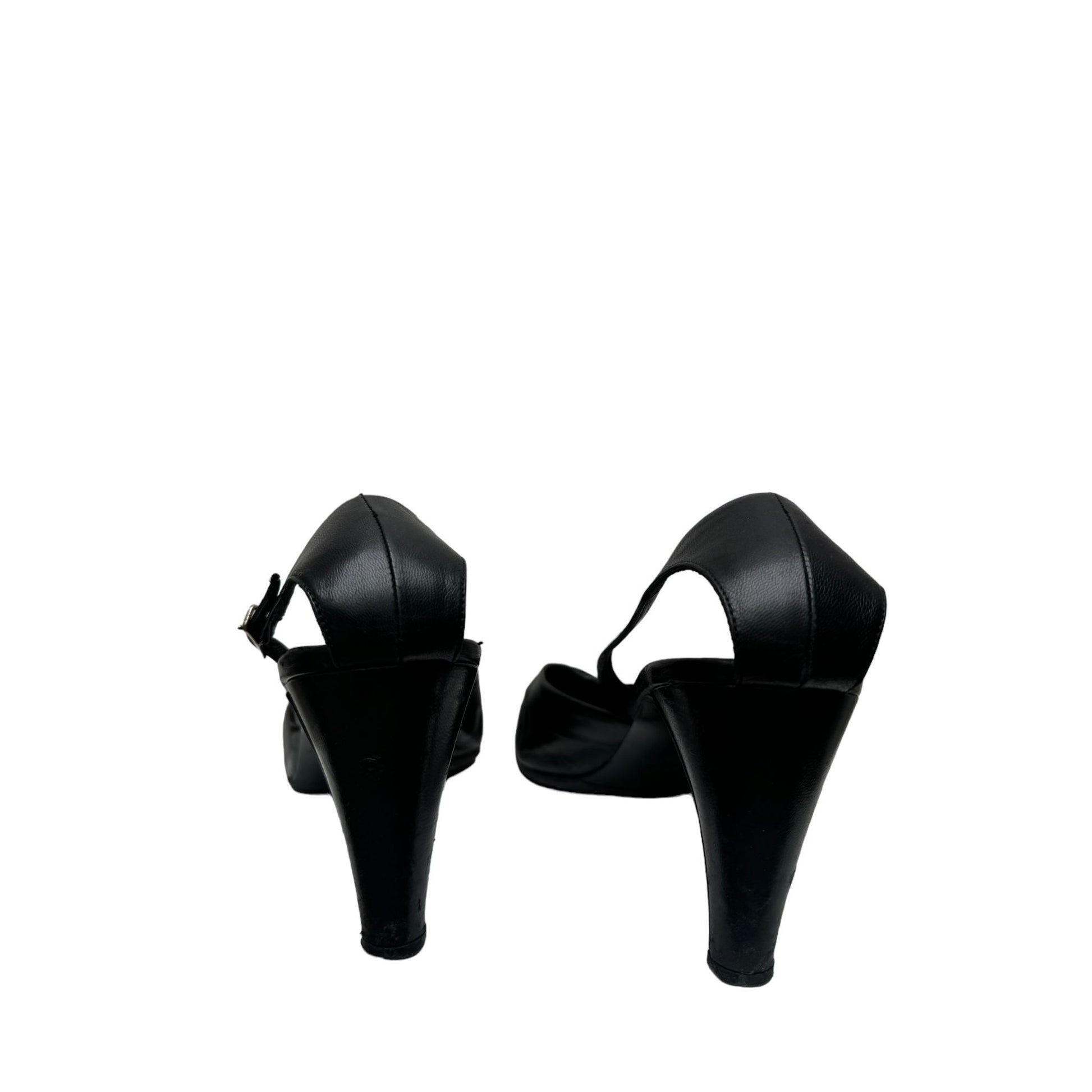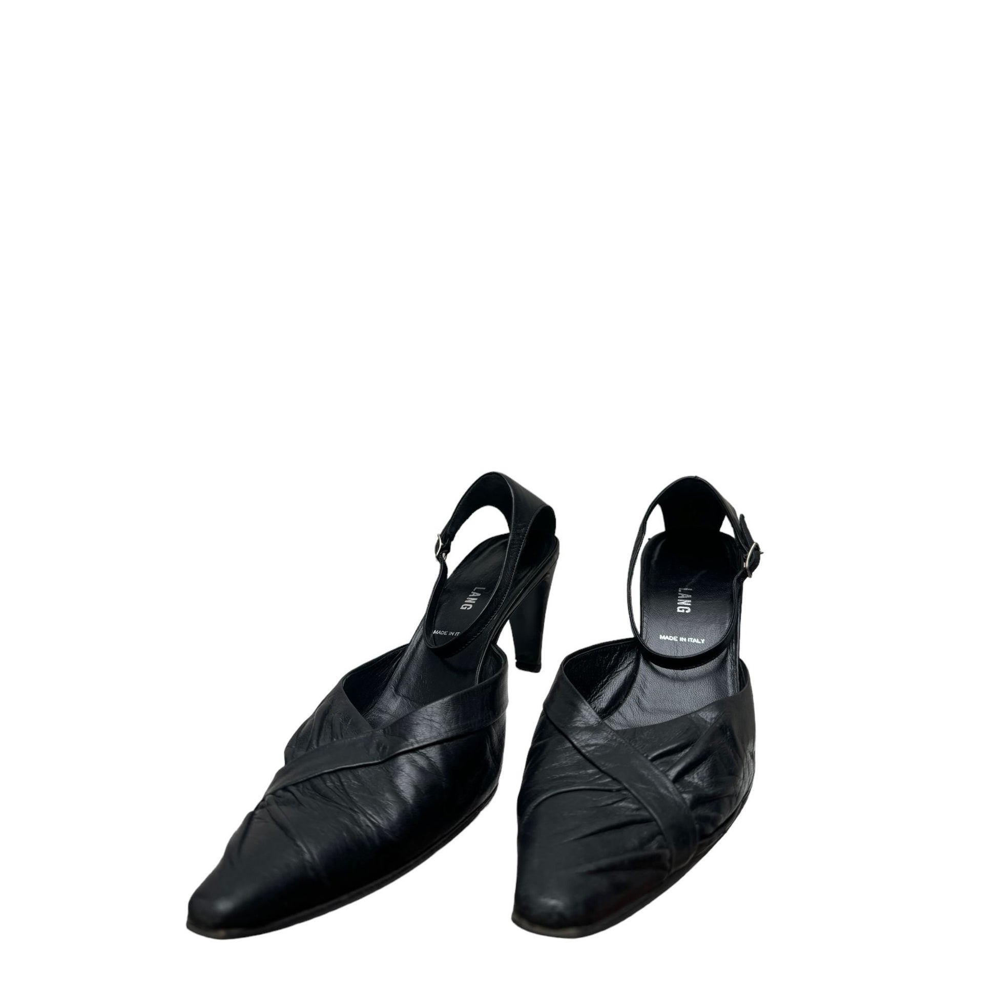 Vintage Black Leather Slingback
